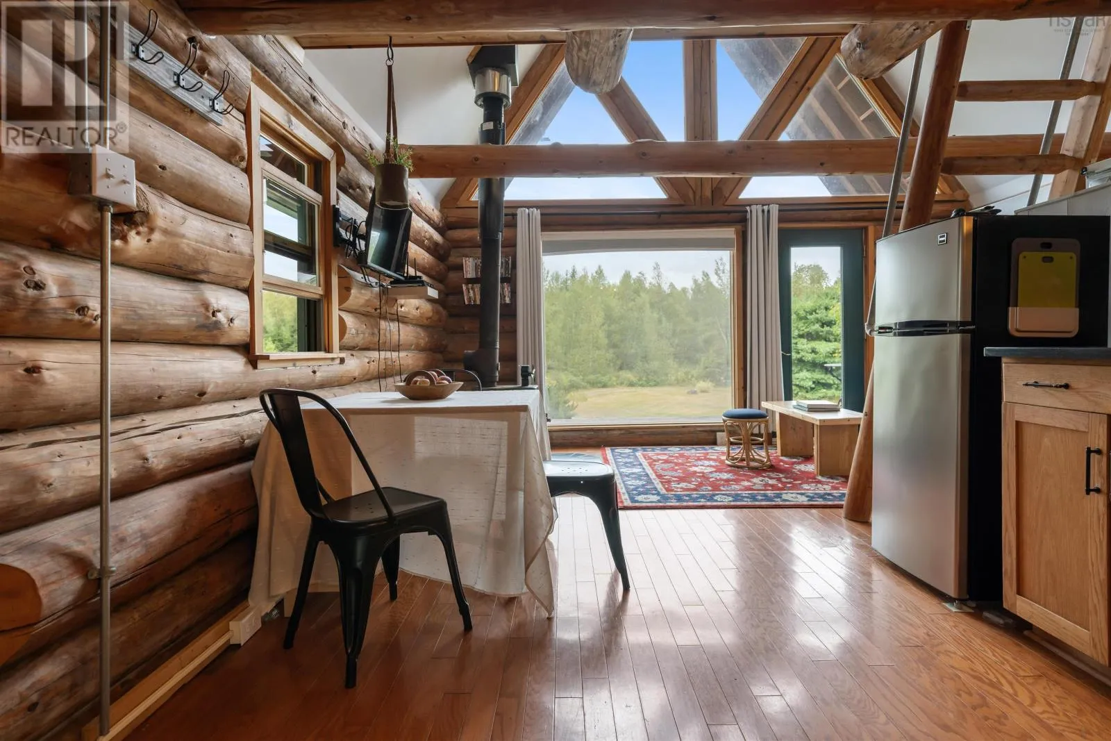 Follow Highway 311 to civic 8208/8268 Just 5 minutes from Tatamagouche and 20 minutes to Ski Wentworth is Hideaway Cabin a custom built log cabin that sits on 8 acres abutting the Waughs River. Stop at the Earltown General store on the way over to grab some fresh bread and delicious treats. Once there follow the long winding driveway through the woods and watch the property unfold. The cabin sits proud welcoming you on arrival. Inside the kitchen is fully equipped and features modern appliances. The dining area is customisable to suit depending on the number of guests. Put on the wood stove and get cozy in the living room (which also doubles as another bed space with a pull-out sofa). A full bathroom completes the ground floor. Up the stairs you will find the primary bedroom with half bath and a covered screened porch with views out to the river. Back outside there is a wrap around deck leading from the front to the back of the property where you will find a camp fire set-up for roasting marshmallows under the starry night sky. There is a swimming hole (or skating rink!) and a cut path through long grass leading to the river. Fruit trees and berry bushes are aplenty. If you are looking for a great cottage or short term rental opportunity on the North Shore this might just be it. This property is four seasons and turn-key. Book in your viewing today! (id:27476)
