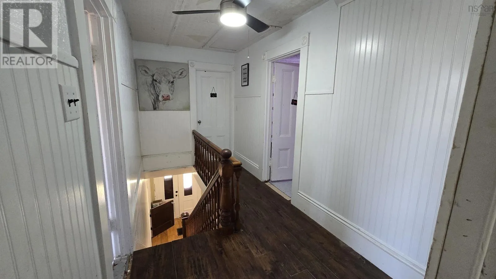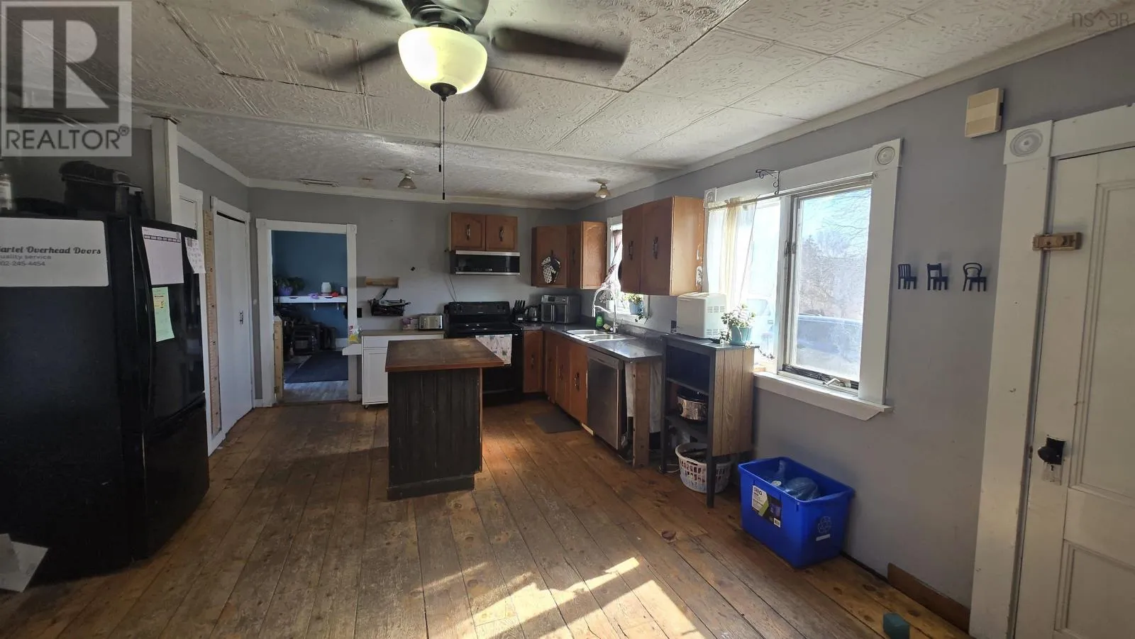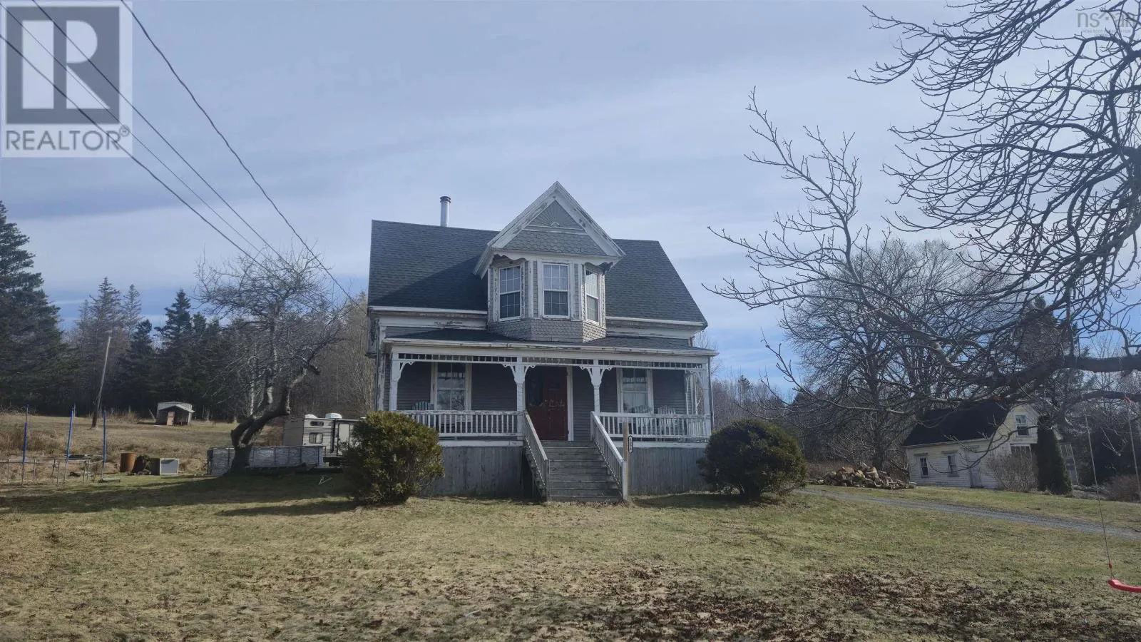 Follow 101 West towards Yarmouth, house on the left in Barton 8094 Highway 101 offers space, character, and plenty of potential in a setting that takes full advantage of its ocean view. This 2,037 sq ft two-storey home sits on a stone foundation and has seen important updates since its last listing, including a new roof on the house in September 2025 and updated fixtures in both the full bath and half bath. A cozy wood stove in the kitchen and dining area adds warmth and charm, while beautiful hardwood floors run through the main level. Some cosmetic updates are still left to be done, giving the next owner the opportunity to fully bring out the homes character. The main floor offers a practical and spacious layout with a mudroom/laundry area, large kitchen, dining room, generous living room, office and convenient half bath. Upstairs, you will find four bedrooms, a full bath, and a flexible bonus space leading into the primary bedroom, ideal for a sitting area, dressing space, or home office. The front upstairs bedroom enjoys a particularly nice ocean view. Set on approximately 1.4 acres, the property includes a small creek, pig pen, chicken coop, and above ground pool, making it well suited for hobby farming or simply enjoying more outdoor space. There is also a generator pass-through set up to power six kitchen plugs, adding a practical feature for peace of mind. (id:27476)