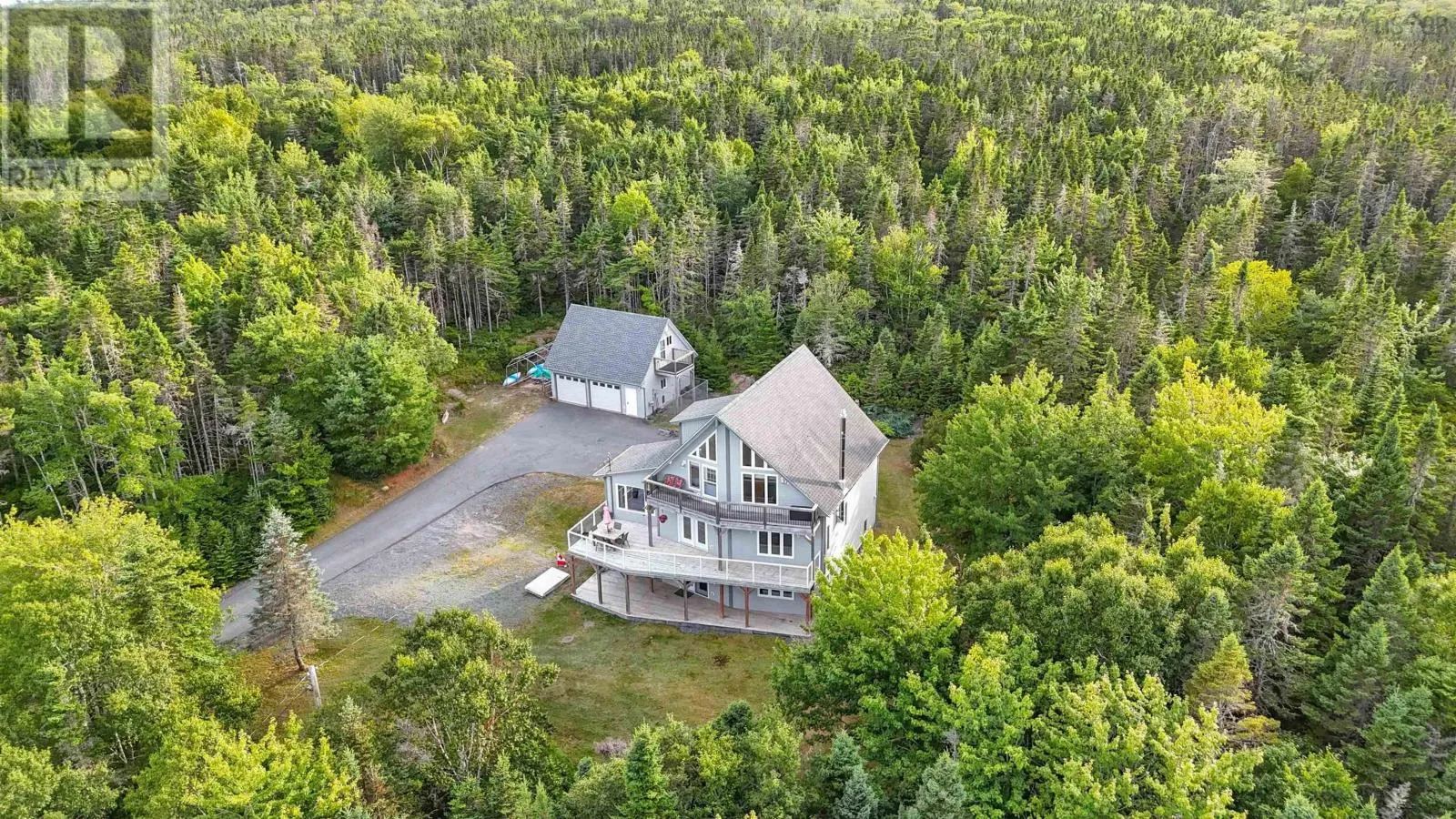 Prospect Rd. to Faders Rd Privacy, Space & Elegance and Soon to Be Featured on HGTV! Perched atop a serene, private hill and surrounded by over three acres of mature forest, this exceptional property offers the perfect blend of peaceful living and prime location. Just 25 minutes from downtown Halifax and steps from Granite Springs Golf Course, youll enjoy unmatched privacy without sacrificing convenience. Adding to its distinction, this remarkable home is soon to be featured on an upcoming HGTV television show hosted by a very popular design duo. Step inside to a bright, open-concept main floor ideal for both relaxed living and effortless entertaining. The kitchen boasts rich cabinetry, granite countertops, propane cooking, stainless steel appliances, a spacious island, and a peninsula with seating. It flows seamlessly into expansive dining and living areas, where a cozy wood stove with stone surround adds warmth and charm. Multiple outdoor spaces invite you to connect with nature, including generous front and back decks and a sunroom off the main living area a peaceful retreat for morning coffee or reading. Upstairs, the private primary bedroom features soaring cathedral ceilings, a walk-in closet, and its own balcony with breathtaking sunrise views over the bay. A second large bedroom with its own balcony and a full bath with double sinks completes the upper level. The walk-out lower level is perfect for guests or multi-generational living, offering two additional bedrooms, a full bath, and a spacious family room with wet bar and double patio doors leading to the lower deck. An oversized detached two-car garage includes a fully finished, heated, and insulated loft with its own balcony ideal for a home office, studio, or guest suite. With modern amenities, abundant space, exceptional privacy this move-in-ready hilltop retreat is truly one of a kind. Be sure to explore the 3D tour and video to fully appreciate all this property has to offer. Schedule your private showing today. (id:27476)