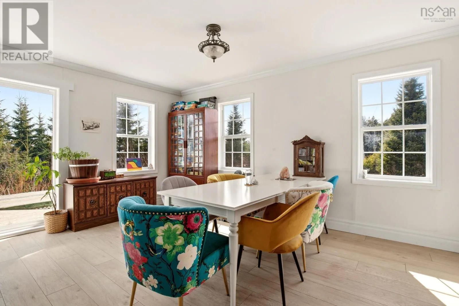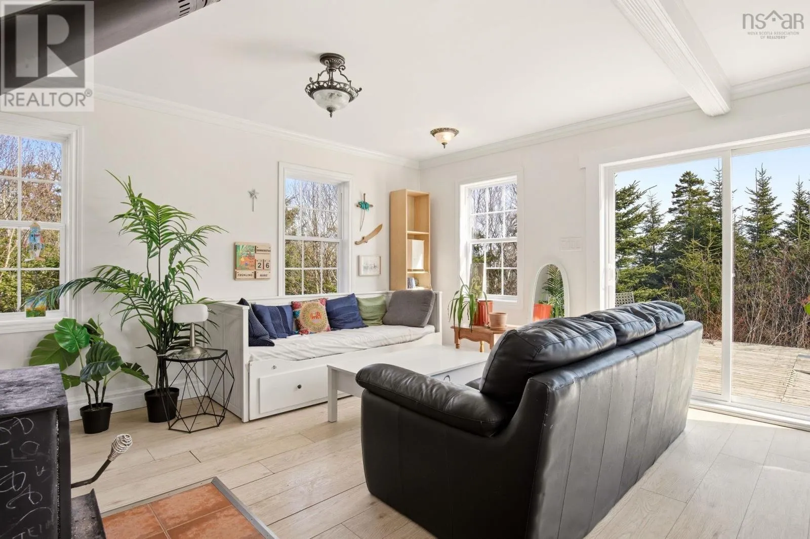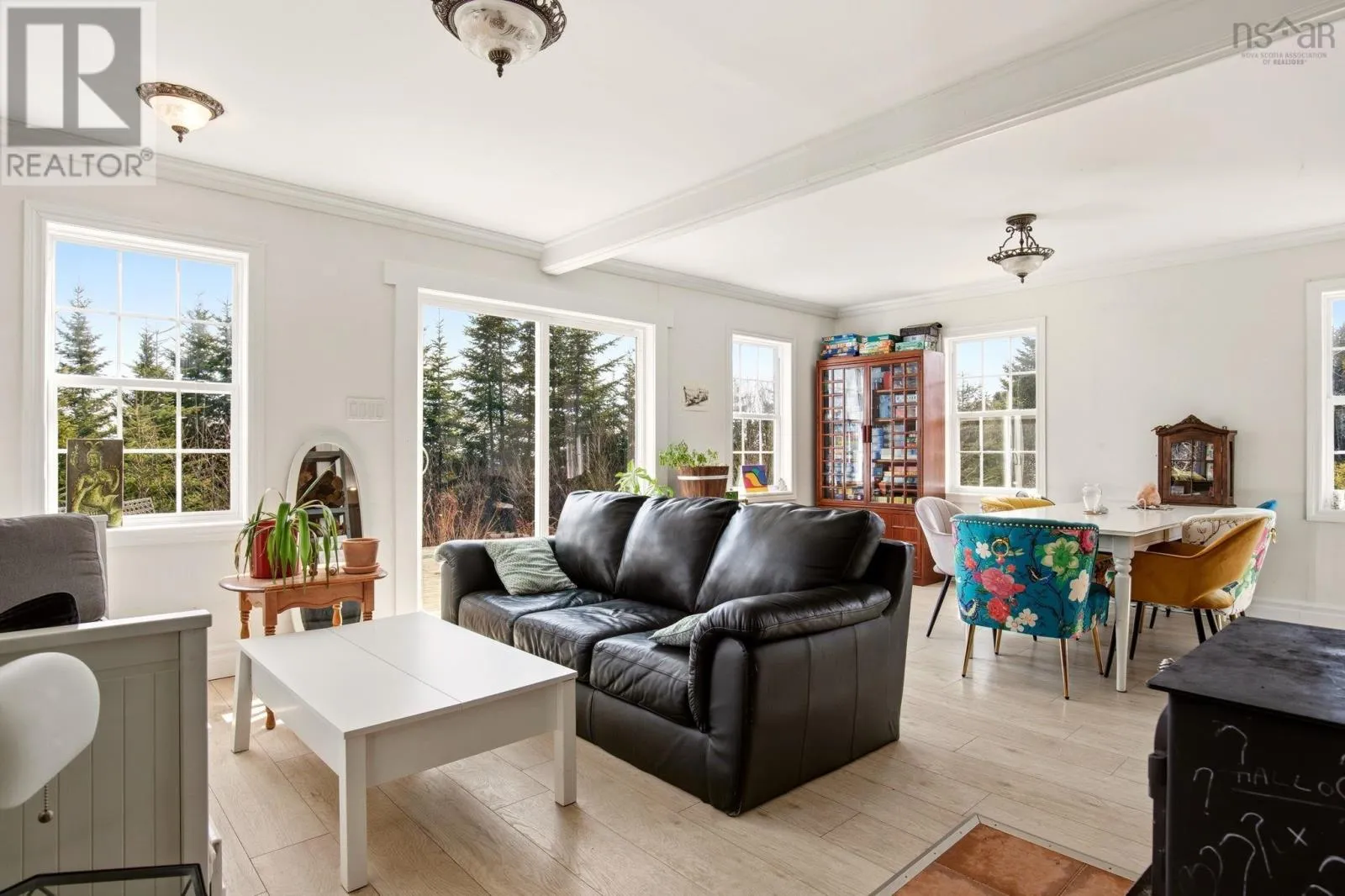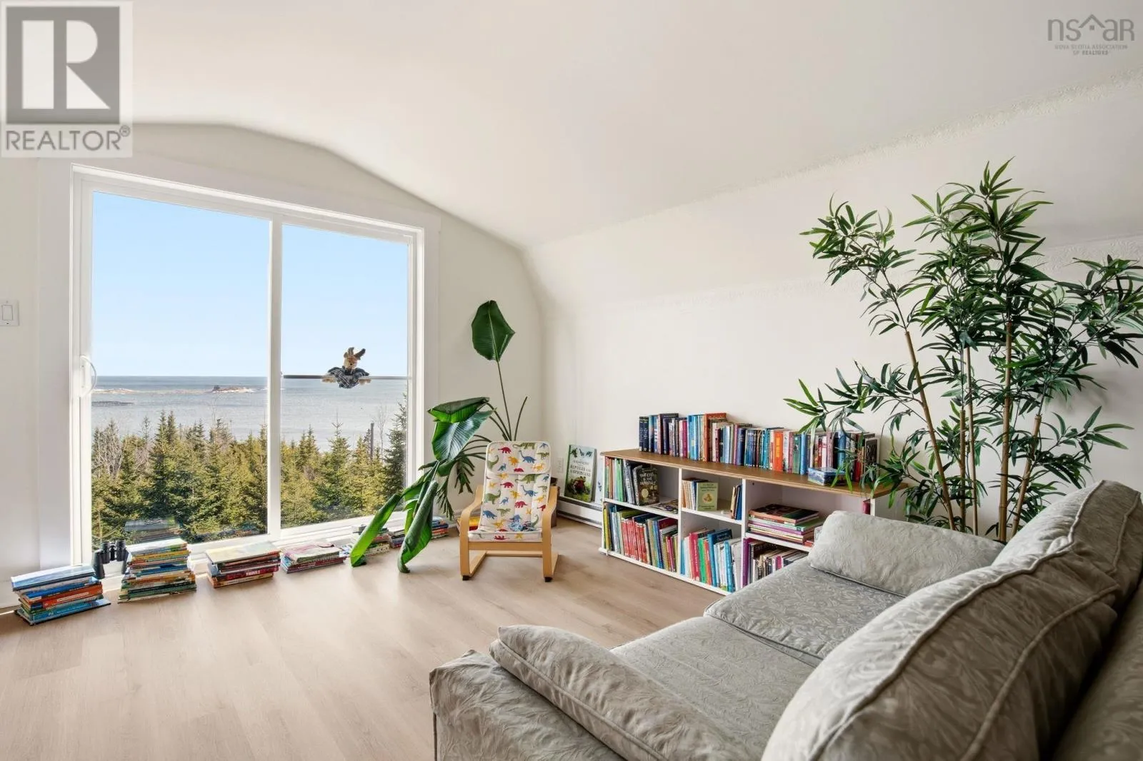 Hwy 103 to Exit 6 to Saddle Island Road Located in Bayswater Bluff, just minutes to Bayswater Beach, Ocean Swells Community Centre & East River Marina and within easy reach of Hubbards, Chester & Halifax this property offers panoramic ocean views & deeded oceanfront access on just over an acre. The main level features an eat-in kitchen with custom hardwood cabinetry, walk-in pantry & a bright living room with wood stove with walkout to the deck. A full bath & laundry complete this level. The 2nd level offers four bedrooms & a full bath. The third level showcases stunning ocean views along with a wet bar and half bathideal for a future primary suite or as a fun flex space. This home also has a 794 sqft dry basement that is currently used as a year-round root cellar. Recent upgrades include water treatment system (2021) with acid neutralizer, water softener & UV sterilization; a Drolet Austral III wood stove (2021); spray foam insulation in the basement (2022); updated siding, flashing, and window frames on both south (2024) and north (2025) walls; new sliding doors on the main and third floors (2025); a new hot water tank (2025); and new laminate flooring on the second and third floors (2026). Situated on a well-maintained road association with a low annual fee ($250/yr) which covers plowing, sanding, and repairs. This property also benefits from all day sun with no obstructions - incredibly rare! This beautiful home won't last long - book your viewing today! (id:27476)