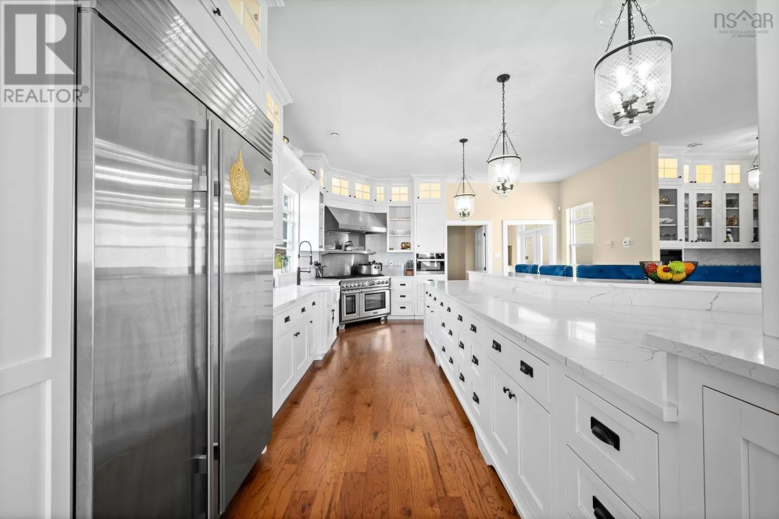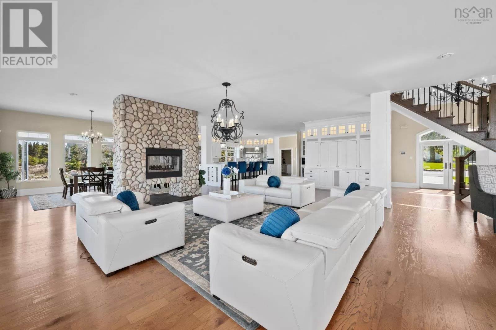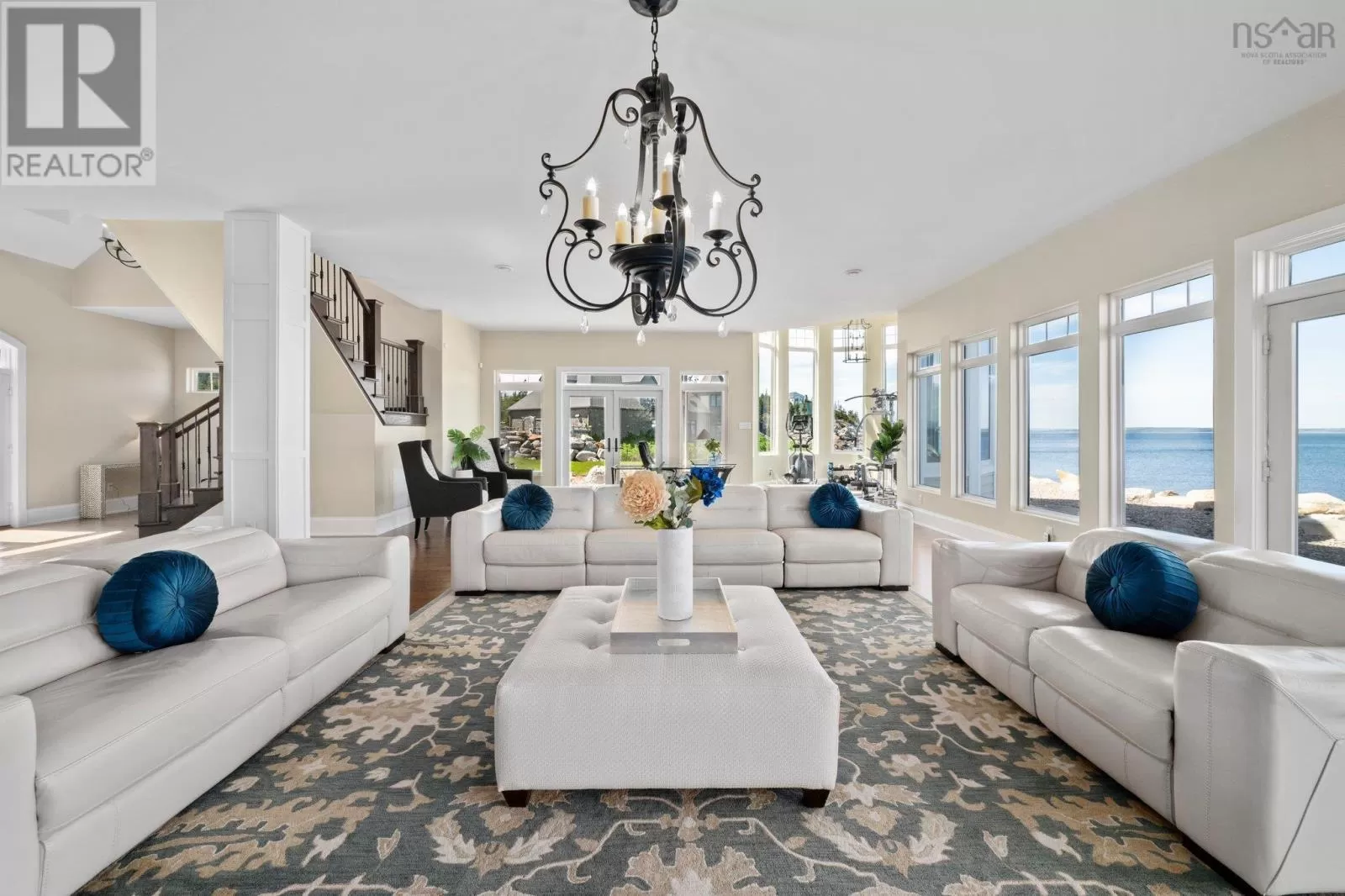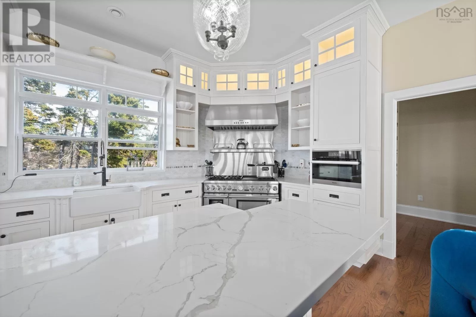 Herring Cove Rd to Ketch Harbour Rd. #446 on left side of road This magnificent 6400 sq ft estate offers an astounding 155 feet of unobstructed ocean frontage with panoramic views. As you enter the property via the private, stone-lined driveway, you'll be captivated by the beautifully landscaped grounds and breathtaking vistas. Inside, the oversized windows in the main living area ensure you're always connected to the stunning Nova Scotia shipping lanes, whether you're entertaining guests or relaxing by the double-sided wood-burning fireplace. The ultimate dream kitchen boasts custom white cabinetry, quartz countertops, a spacious island that comfortably seats six, a farmhouse sink, and high-end appliances. Adding to its appeal are a butler's pantry and a second kitchen. The main level is further complemented by an 8 x 8 ft walk-in fridge, a bonus room/den, a 2-piece bath, a mudroom, a storage room, and an attached garage featuring two separate storage areas. Ascend either the front or back staircase to the second level, where versatile open areas await your personal touch. Double doors lead to the expansive primary suite, which includes a remarkable walk-in closet with laundry, fireplace and a 6-piece ensuite. This suite also features two balconies: one overlooking the ocean and the other with a private hot tub. Three additional generously sized bedrooms, a cozy reading nook, multiple closets, and a 4-piece bath with laundry complete this level. Numerous upgrades have been completed in the last year, including leveling of the front and side retaining walls, sod/lawn replacement, installation of a water storage system with five 1500-gallon cisterns buried outside and two 750-gallon cisterns indoors, increased well flow rate, and an upgraded water filtration system. Additionally, outdoor lighting spanning approximately 750m along the oceanfront has been installed. A comprehensive list of these upgrades is available for your review. Located in the prestigious The Breakers , this exceptional property is only 25 mins form downtown. (id:27476)