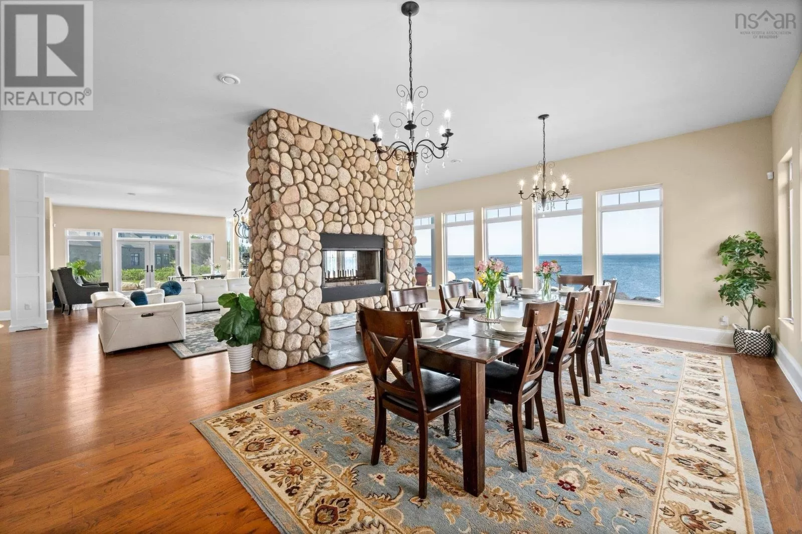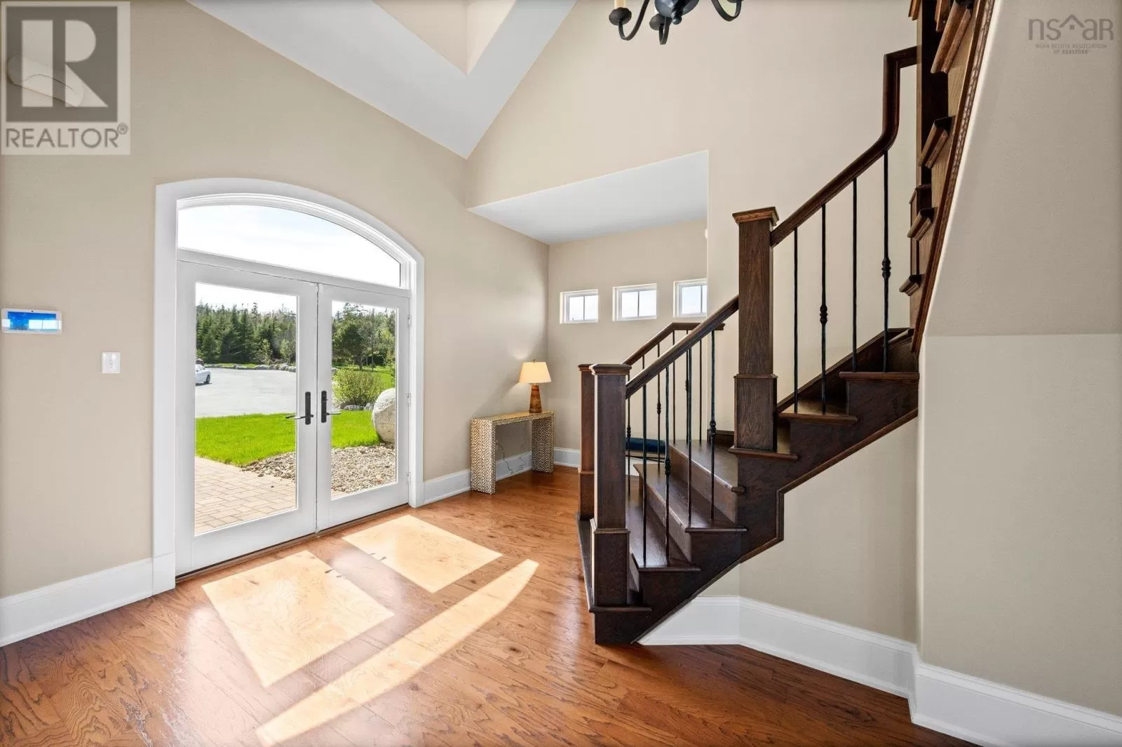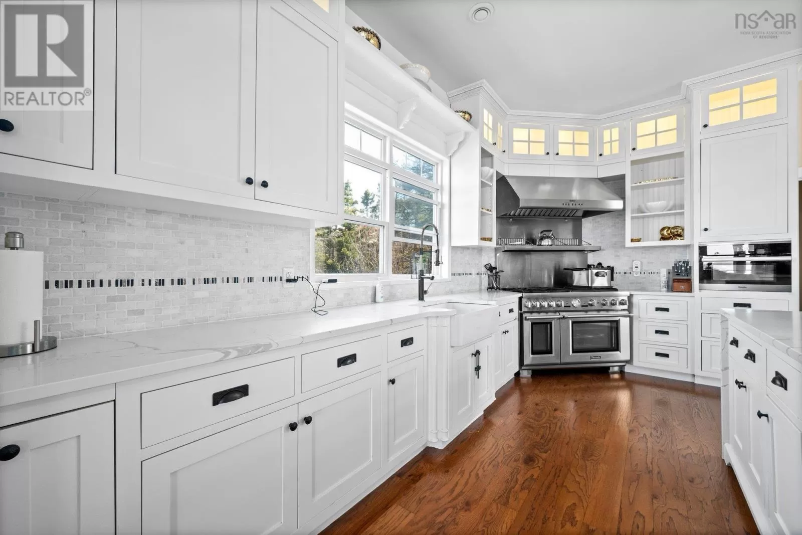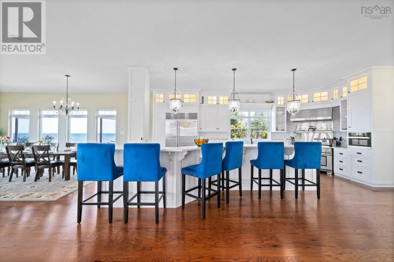 Herring Cove Rd to Ketch Harbour Rd. #446 on left side of road This magnificent 6400 sq ft estate offers an astounding 155 feet of unobstructed ocean frontage with panoramic views. As you enter the property via the private, stone-lined driveway, you'll be captivated by the beautifully landscaped grounds and breathtaking vistas. Inside, the oversized windows in the main living area ensure you're always connected to the stunning Nova Scotia shipping lanes, whether you're entertaining guests or relaxing by the double-sided wood-burning fireplace. The ultimate dream kitchen boasts custom white cabinetry, quartz countertops, a spacious island that comfortably seats six, a farmhouse sink, and high-end appliances. Adding to its appeal are a butler's pantry and a second kitchen. The main level is further complemented by an 8 x 8 ft walk-in fridge, a bonus room/den, a 2-piece bath, a mudroom, a storage room, and an attached garage featuring two separate storage areas. Ascend either the front or back staircase to the second level, where versatile open areas await your personal touch. Double doors lead to the expansive primary suite, which includes a remarkable walk-in closet with laundry, fireplace and a 6-piece ensuite. This suite also features two balconies: one overlooking the ocean and the other with a private hot tub. Three additional generously sized bedrooms, a cozy reading nook, multiple closets, and a 4-piece bath with laundry complete this level. Numerous upgrades have been completed in the last year, including leveling of the front and side retaining walls, sod/lawn replacement, installation of a water storage system with five 1500-gallon cisterns buried outside and two 750-gallon cisterns indoors, increased well flow rate, and an upgraded water filtration system. Additionally, outdoor lighting spanning approximately 750m along the oceanfront has been installed. A comprehensive list of these upgrades is available for your review. Located in the prestigious The Breakers , this exceptional property is only 25 mins form downtown. (id:27476)