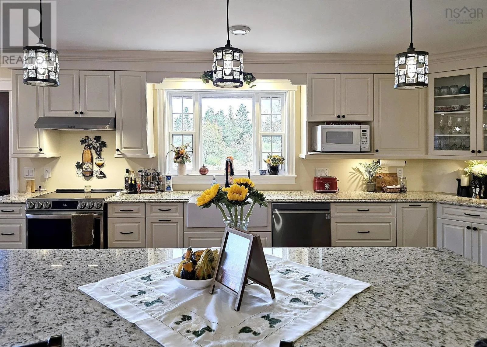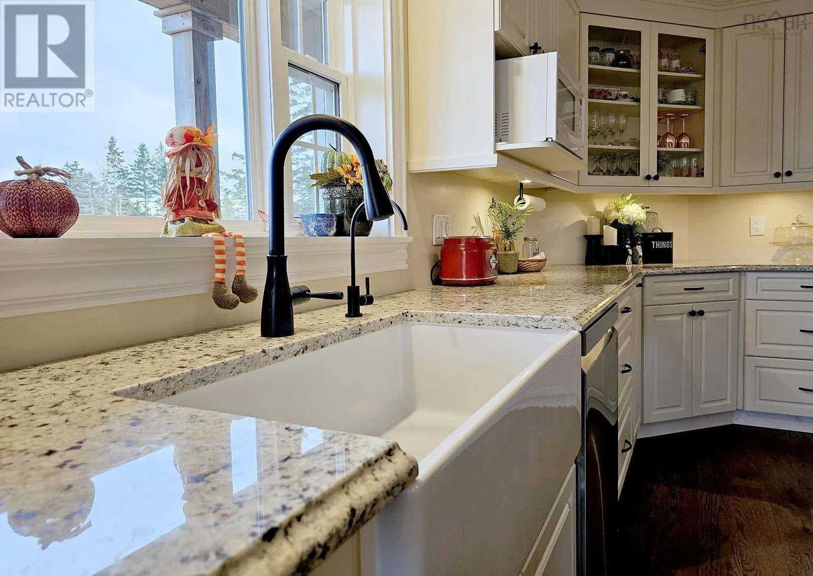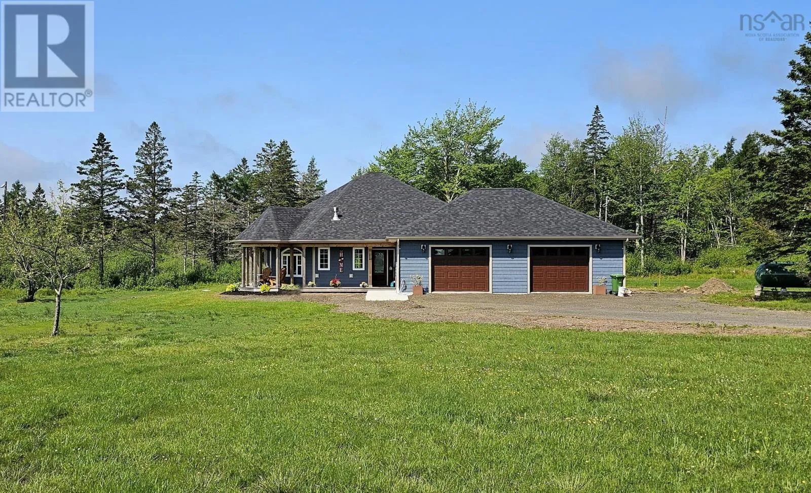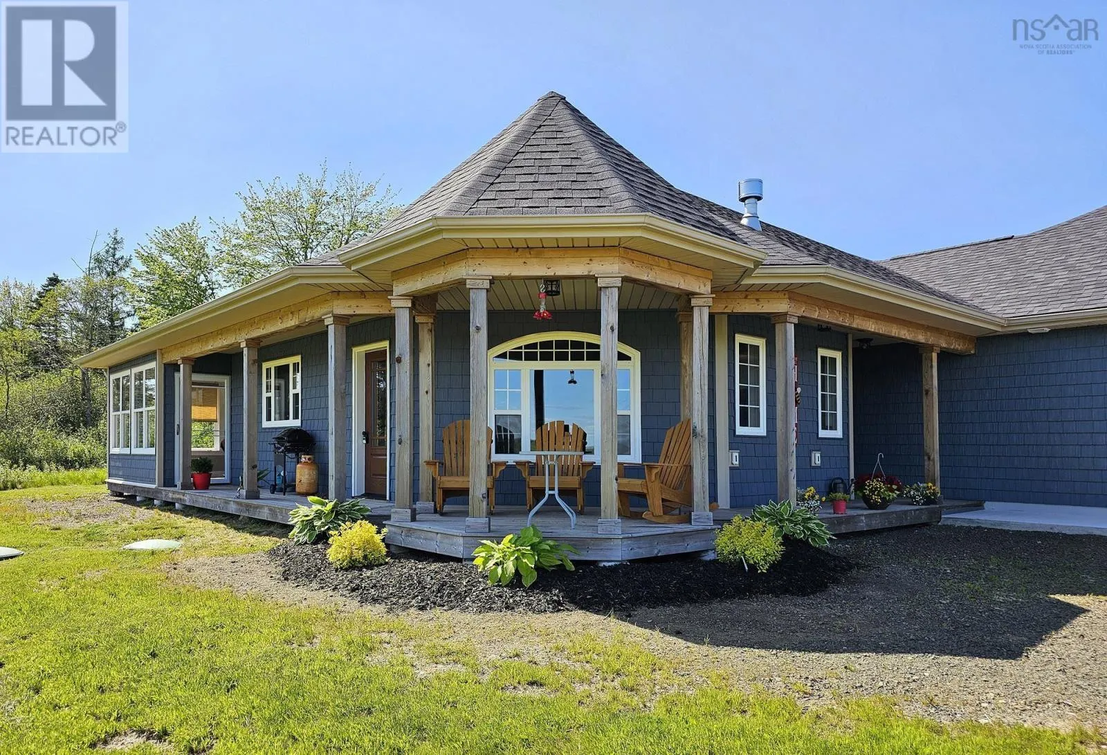 From Digby take Exit 25 to Bear River, Back Road to Lansdowne Road. Just built in 2023! This beautiful home on just over 5 acres has been designed for maximum energy efficiency, comfort and easy maintenance. Built on slab with attached double garage, wrap-around veranda, and clad with high quality "shake style" vinyl siding, this attractive contemporary design has classic elements that exude the warmth of Home. A high efficiency propane furnace provides in-floor hot water radiant heat, and there is air conditioning for those sultry Summer days. The whole home backup generator system provides instant power during outages. There are many practical reasons to purchase this fabulous home, but the homeowner has also created a beautiful interior with luxurious features that will appeal to your aesthetic side, too. The main living area is open plan, with wide mouldings, attractive lighting, high quality doors, windows and cabinetry. Home chefs will appreciate the beautiful custom kitchen with farmhouse sink, stainless steel appliances and granite counter tops. An oversized island topped with granite, is perfect for entertaining and your Christmas cookie marathon! There is a dining area, and a living area with central propane fireplace flanked by windows, plus an oversized picture window looking out toward the fields, vineyards and hills of Bear River. The generous Primary suite has plenty of space for a king size bed and a seating area around the propane fireplace. The ensuite bathroom with corner shower and soaking tub, also includes a large Corian counter top with built in vanity; plenty of space for daily care and personal spa time! Naturally, this suite also has a walk in closet. Other highlights are: a 2nd bedroom, a 2nd bathroom with marble top vanity, and a laundry room with utility sink and entry foyer to the garage. There is also a sun room off the back of the house, a great breakfast room and lounge area. Located minutes from amenities in Digby and the village of Bear River. (id:27476)