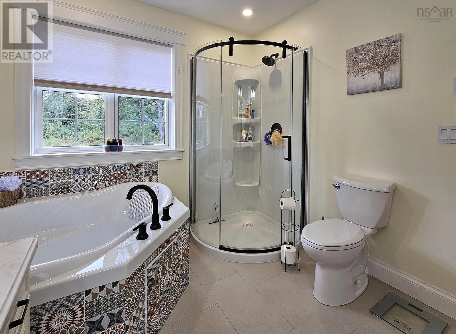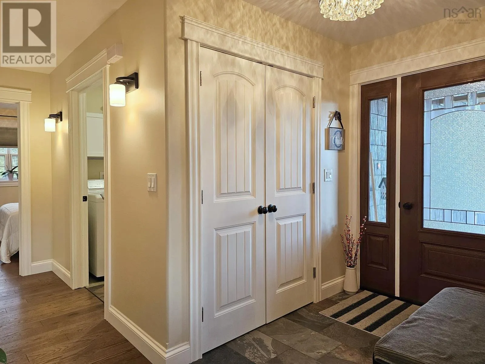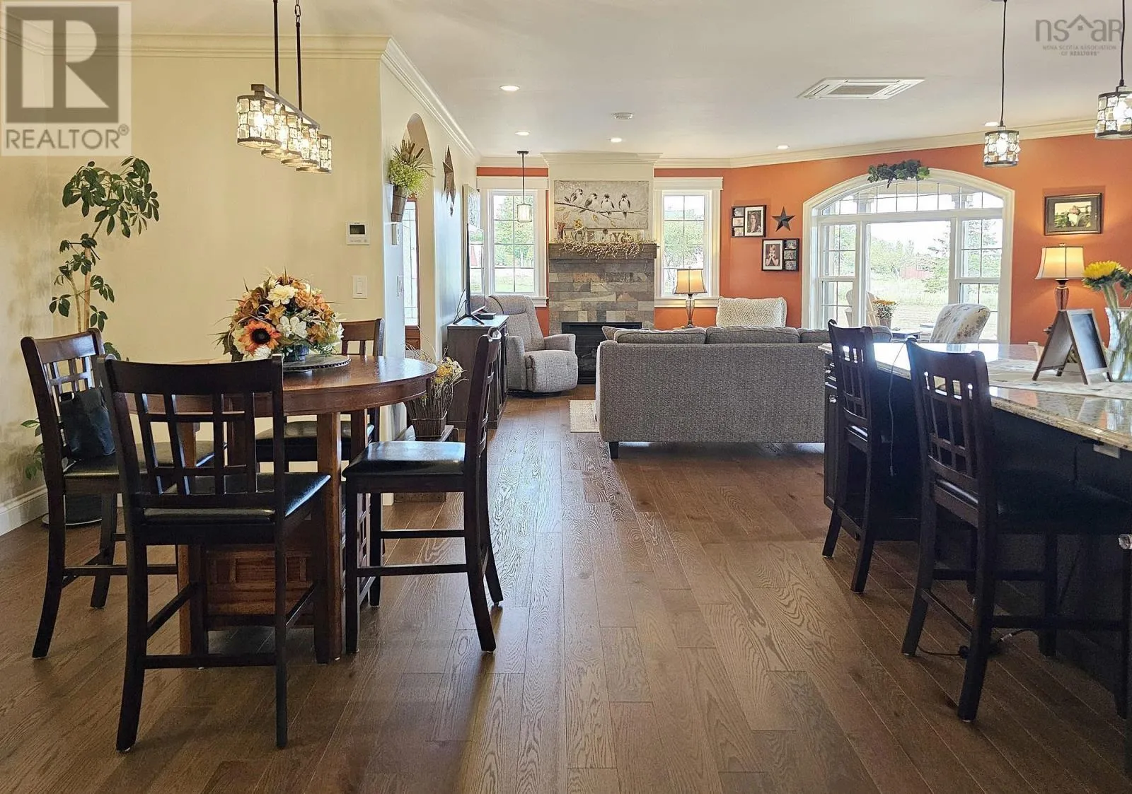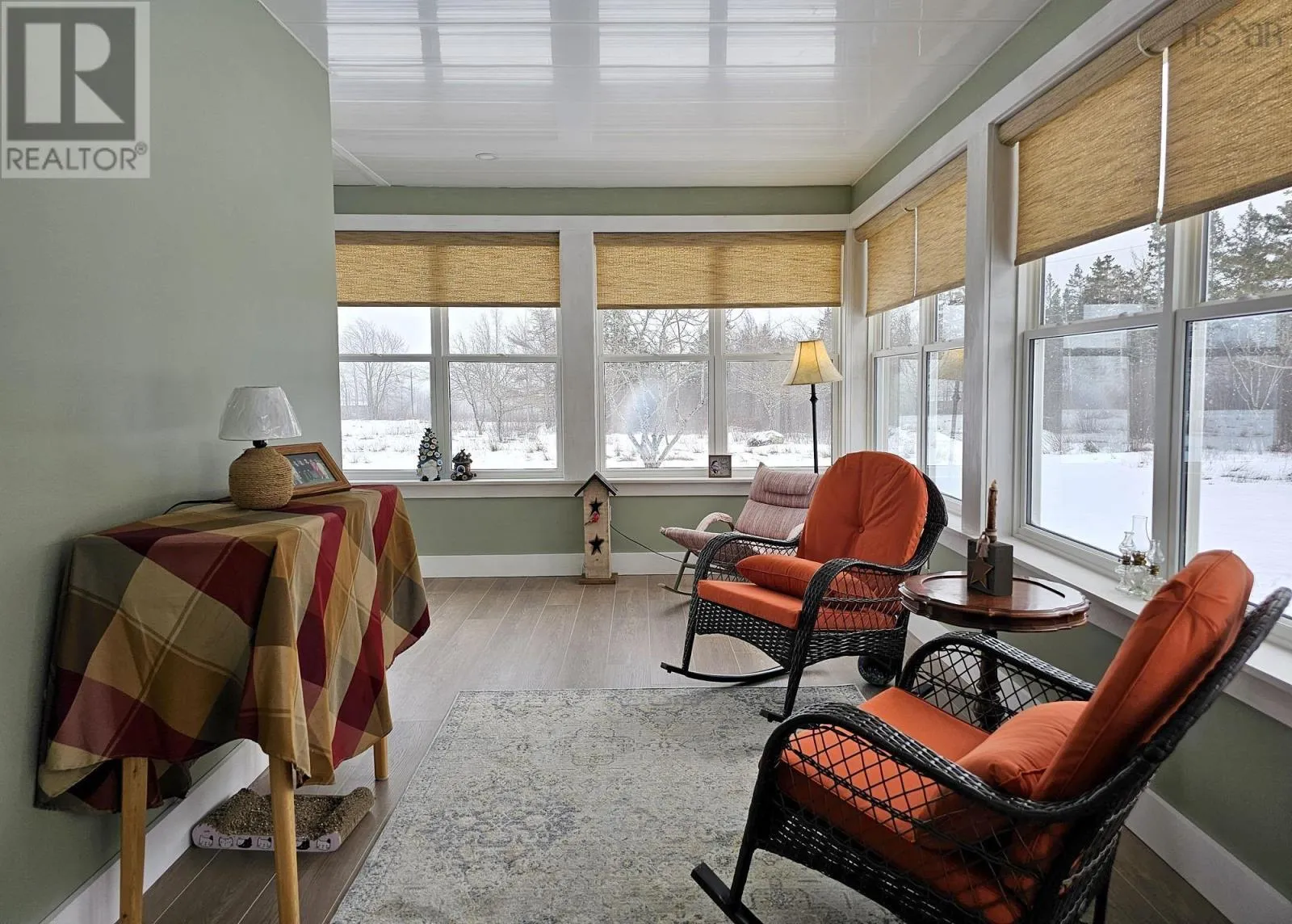 From Digby take Exit 25 to Bear River, Back Road to Lansdowne Road. Just built in 2023! This beautiful home on just over 5 acres has been designed for maximum energy efficiency, comfort and easy maintenance. Built on slab with attached double garage, wrap-around veranda, and clad with high quality "shake style" vinyl siding, this attractive contemporary design has classic elements that exude the warmth of Home. A high efficiency propane furnace provides in-floor hot water radiant heat, and there is air conditioning for those sultry Summer days. The whole home backup generator system provides instant power during outages. There are many practical reasons to purchase this fabulous home, but the homeowner has also created a beautiful interior with luxurious features that will appeal to your aesthetic side, too. The main living area is open plan, with wide mouldings, attractive lighting, high quality doors, windows and cabinetry. Home chefs will appreciate the beautiful custom kitchen with farmhouse sink, stainless steel appliances and granite counter tops. An oversized island topped with granite, is perfect for entertaining and your Christmas cookie marathon! There is a dining area, and a living area with central propane fireplace flanked by windows, plus an oversized picture window looking out toward the fields, vineyards and hills of Bear River. The generous Primary suite has plenty of space for a king size bed and a seating area around the propane fireplace. The ensuite bathroom with corner shower and soaking tub, also includes a large Corian counter top with built in vanity; plenty of space for daily care and personal spa time! Naturally, this suite also has a walk in closet. Other highlights are: a 2nd bedroom, a 2nd bathroom with marble top vanity, and a laundry room with utility sink and entry foyer to the garage. There is also a sun room off the back of the house, a great breakfast room and lounge area. Located minutes from amenities in Digby and the village of Bear River. (id:27476)