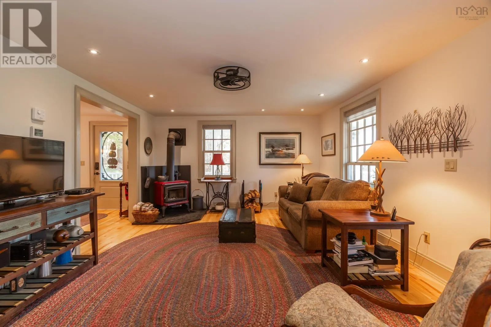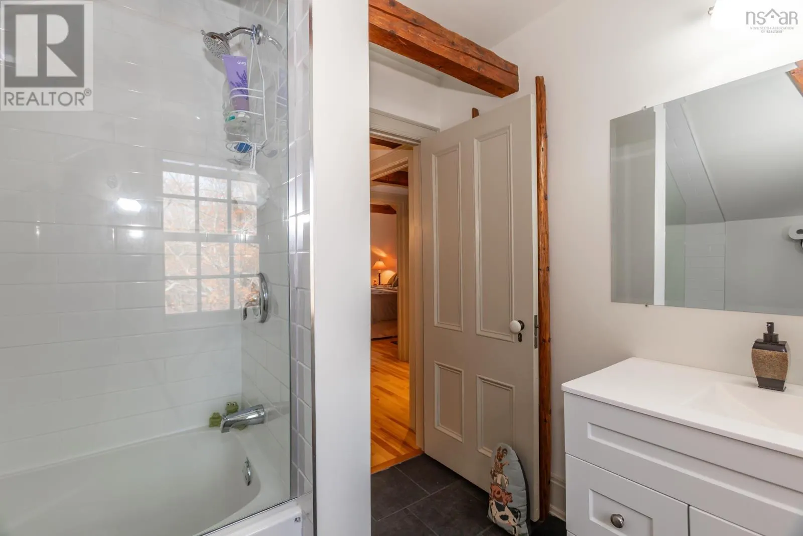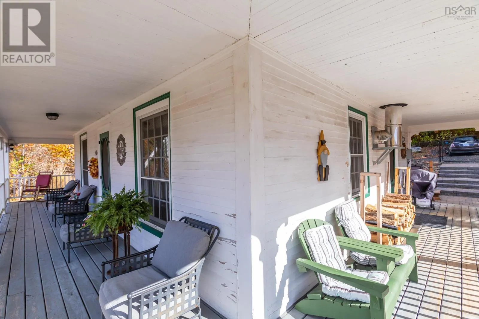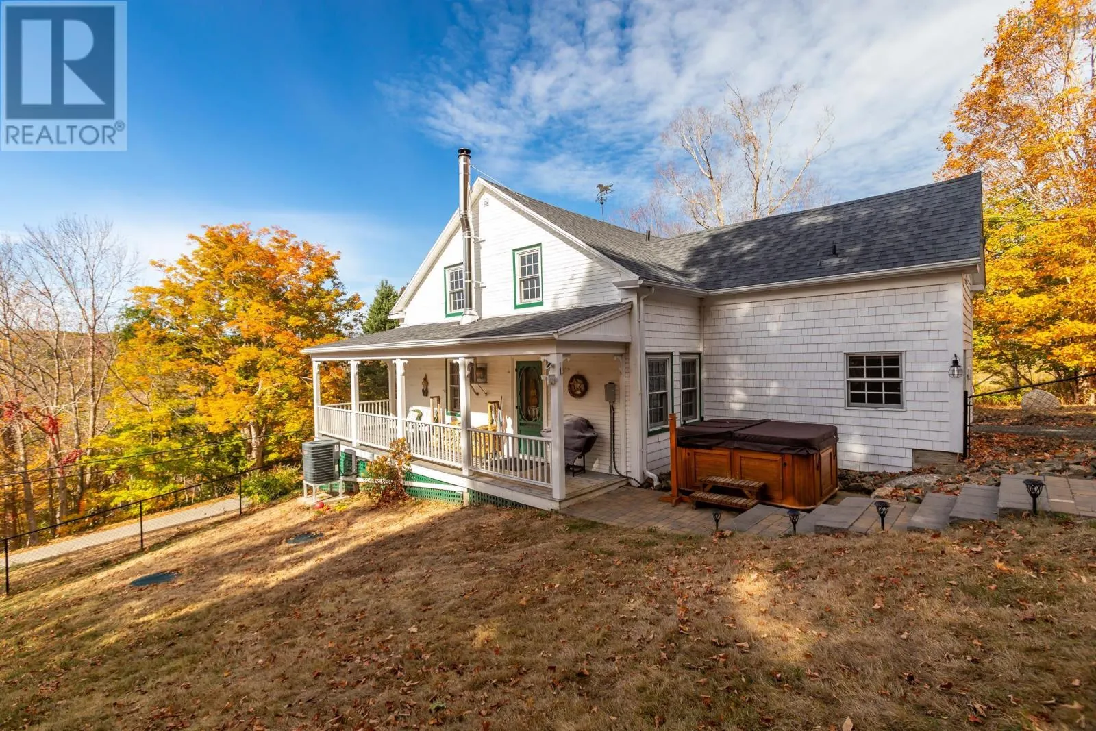 From Bear River, take Clementsvale Road and turn left on Chute Road, civic #40 Originally built in circa 1850 and completely rebuilt to modern standards in 2019/2020. This house sits on an elevated, private lot surrounded by mature trees, with a small barn/workshop as well. There is ample parking and a low maintenance yard part of which if fenced in. From the wrap-a-round verandah (which you can access from either side of the house), you will enjoy the view of the trees and the roof tops of the Bear River Valley below. The interior is bright and spacious yet full of character, wide mouldings, exposed beam ceilings upstairs, pocket doors between front rooms, and refinished solid wood doors upstairs. There is a stand-by 22kw generator to do the whole house if needed, and you can enjoy the saltwater hot tub at the end of your day. (id:27476)