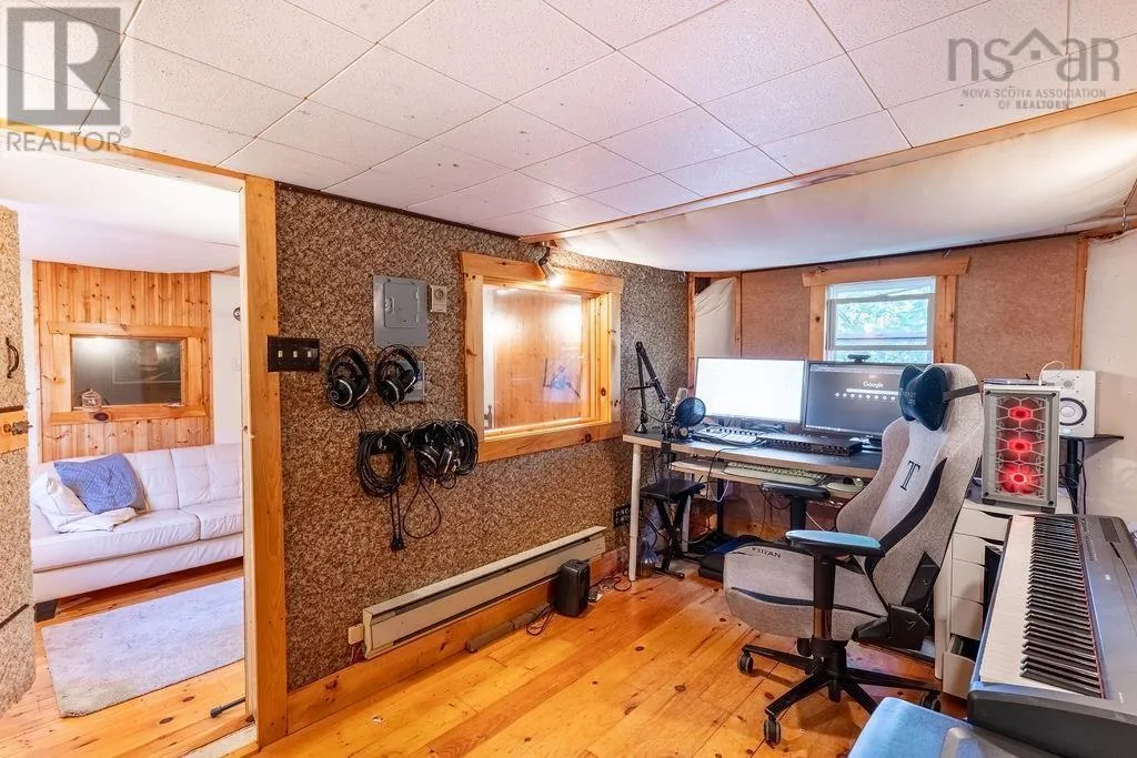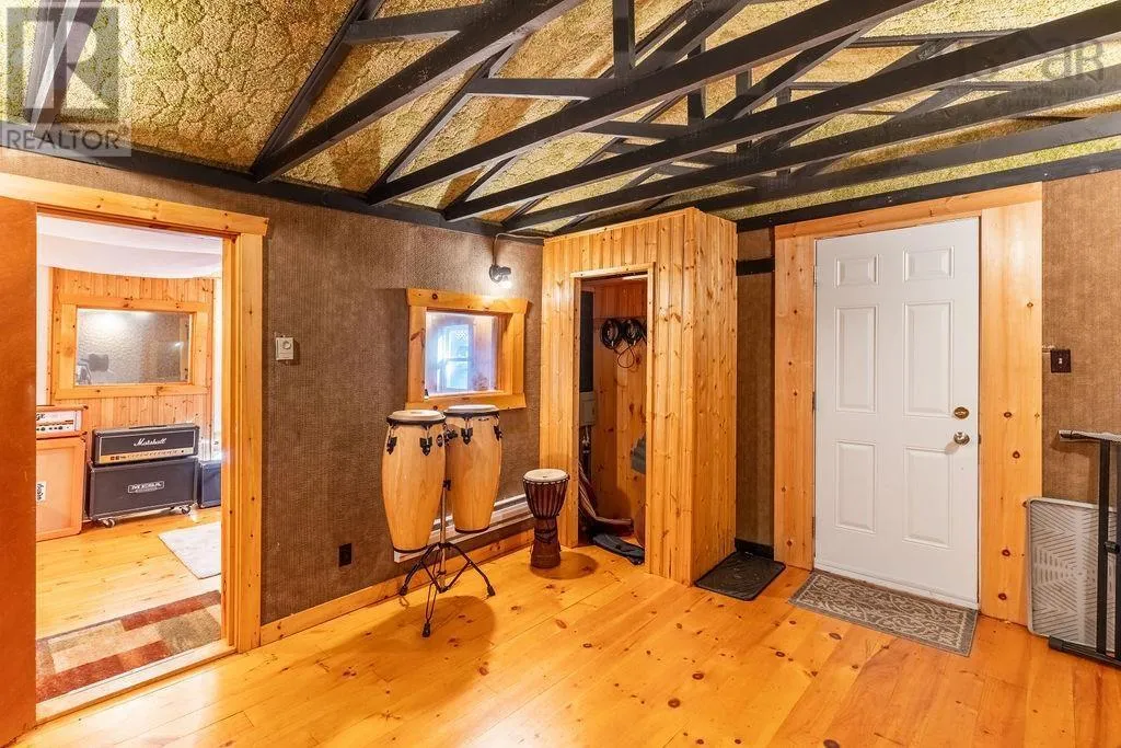 Beaverbank Rd to Kinsac, left onto Jamie and on left side Calling all musicians! This Beaver Bank bungalow features its very own recording studio and offers flexible living with three bedrooms and one bathroom on the main level, plus an additional bedroom and bathroom downstairs. The lower level also includes a kitchenette, shared laundry, and a layout ideal for a basement suite with a separate entrance. Freshly painted in neutral tones, the home is bright and airy, with beautiful wood accents throughout. Heat pumps provide economical heating and cooling. The main living area showcases an oak kitchen with bar seating, a spacious dining room with patio doors to a large deck, and a family room perfect for gatherings. The deck has reached the end of its service life and now offers a blank canvas to create your dream outdoor space. Outside, enjoy a generous yard on a quiet street and community perks like a fantastic 18-hole golf course. Located just 10 minutes from Sackville amenities and 20 minutes to Halifax, this home combines convenience, comfort, and creative possibilities. Call your agent today to schedule a viewing! (id:27476)