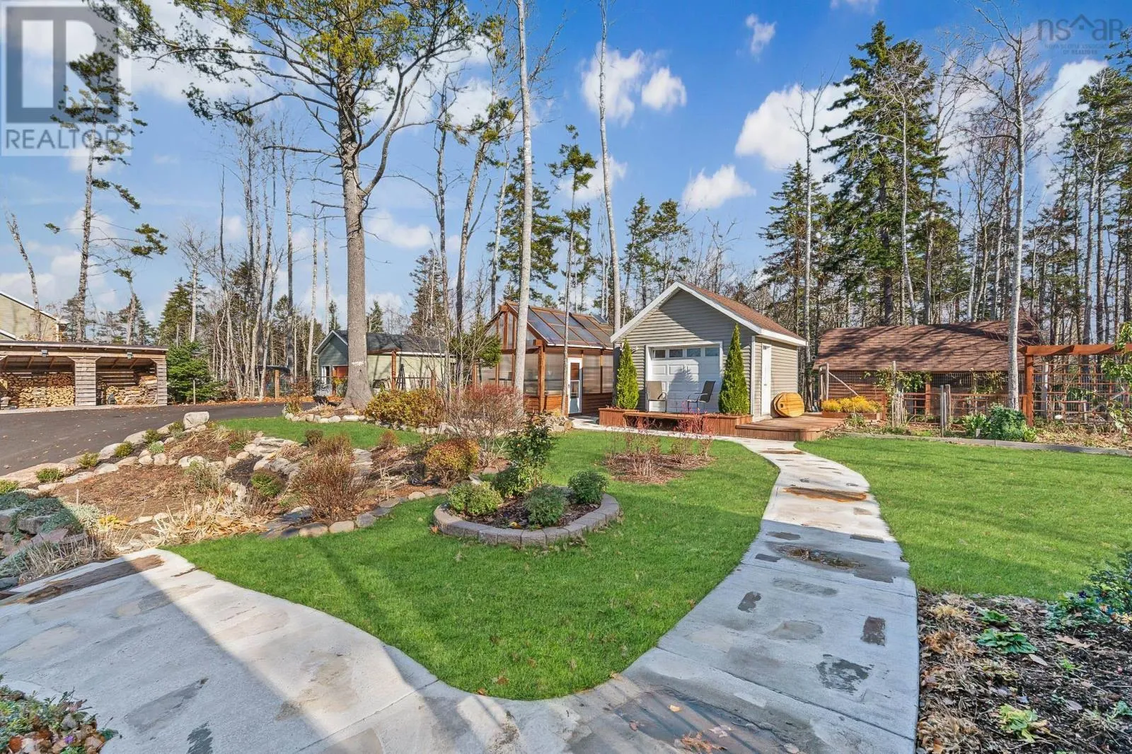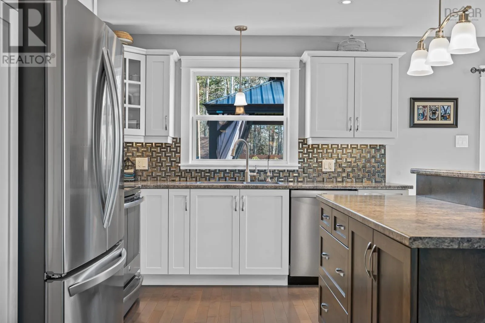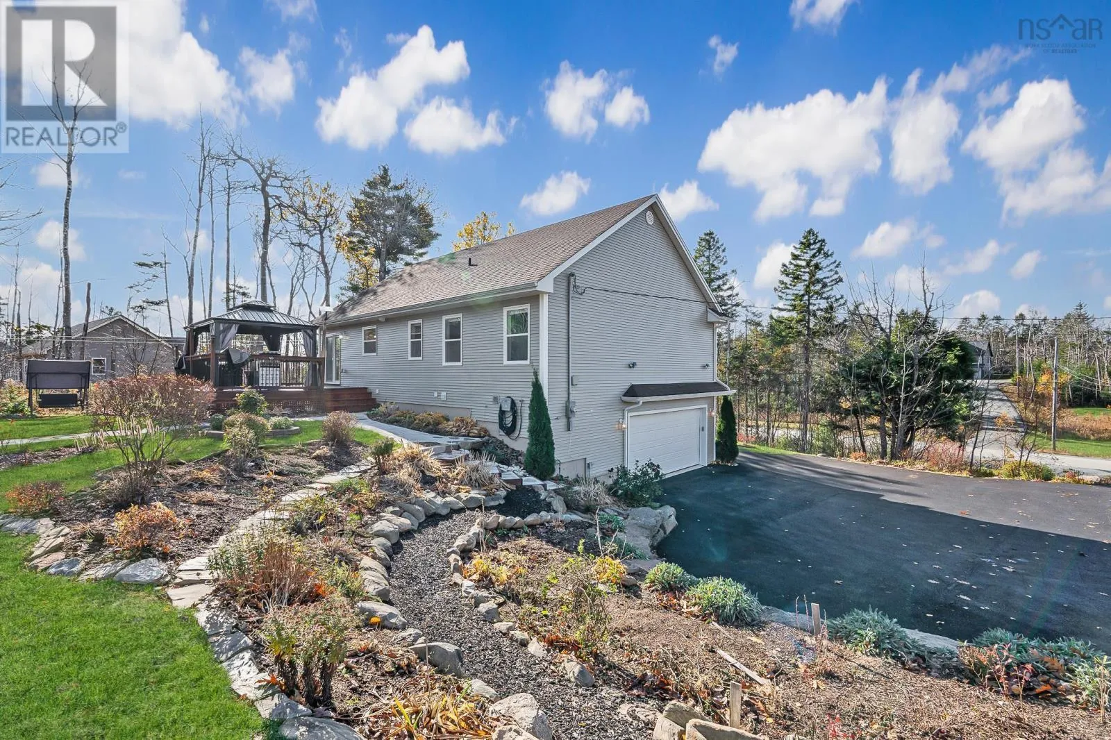 Beaver Bank Road, turn right onto Pinehurst Way, turn right onto Laurel Ridge Drive, turn right onto Crooked Stick Passage. Number 416 left hand side on road. Nestled in the desired Lost Creek Golf Community in Beaver Bank, this freshly updated split-entry home sits on just over 1.3 acres of beautifully landscaped land on a quiet dead-end road, offering the perfect balance of country living and modern convenience just 35 minutes from downtown Halifax. Step inside to a bright open-concept main level featuring a spacious kitchen, dining, and living area with gleaming hardwood floors and direct access to the back patio and yardideal for entertaining or relaxing outdoors. Down the hall, youll find two generous bedrooms, full bathroom and a primary suite complete with a walk-in closet and private ensuite. A sliding door conveniently separates the living area from the bedrooms for added privacy and noise reduction. The lower level offers a large secondary living space filled with natural light, a combined laundry and bathroom, and an oversized double-car garage with ample storage and fourth bedroom. Outside is a true gardeners paradise, boasting multiple fruit and vegetable gardens, a greenhouse, gazebo, chicken coop, woodshed, and a workshop with a garage door for easy access. Mature fruit trees, raised flower beds, and vibrant perennial plantings surround the property, creating a peaceful and private retreat. Whether youre enjoying a morning coffee under the gazebo, tending to the garden, or exploring the nearby walking trails and parks, this property provides a lifestyle of comfort, self-sufficiency, and natural beauty just moments from the Lost Creek Golf Course and all essential amenities. (id:27476)