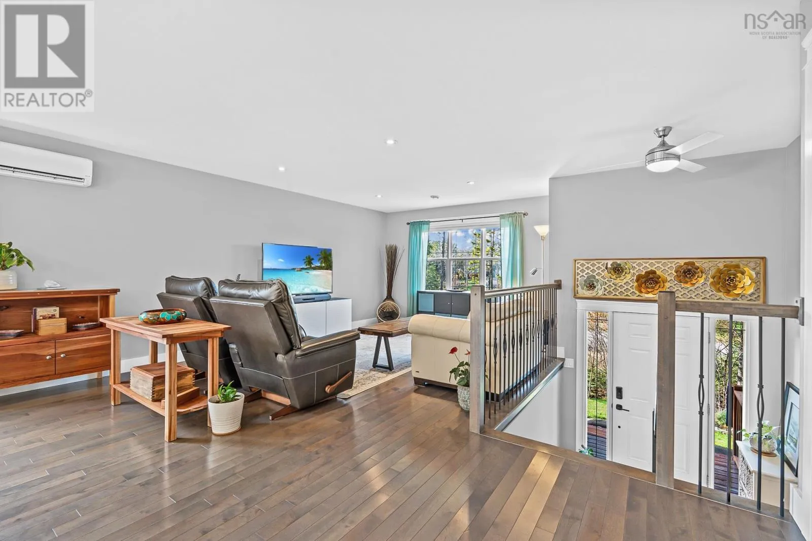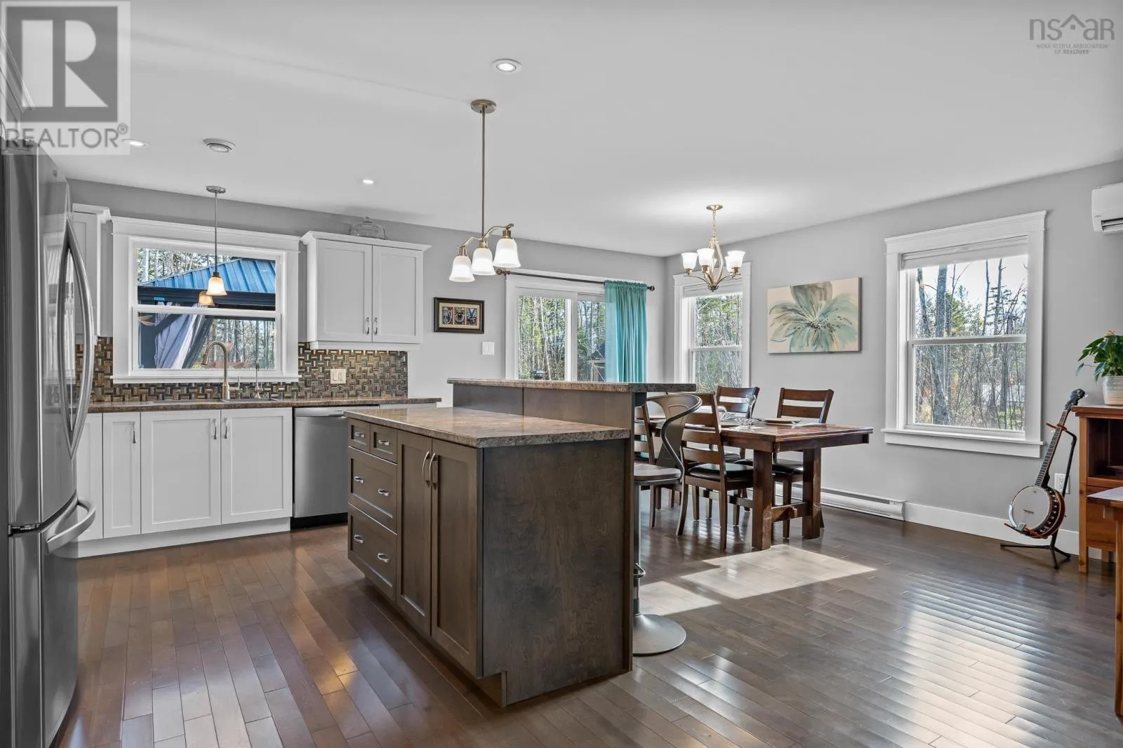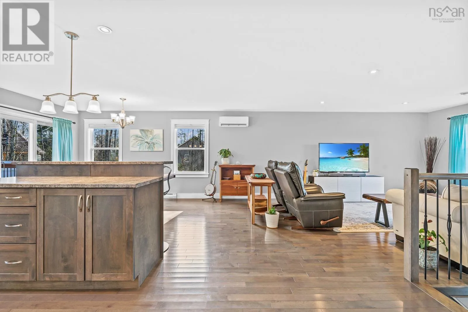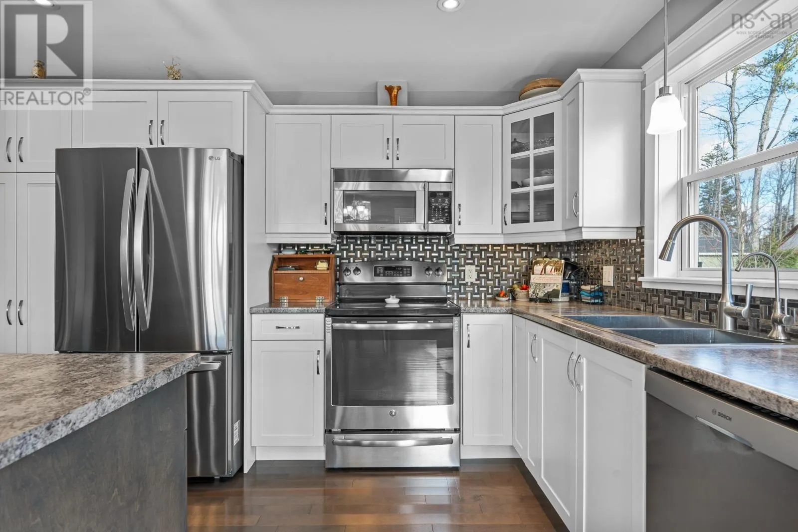 Beaver Bank Road, turn right onto Pinehurst Way, turn right onto Laurel Ridge Drive, turn right onto Crooked Stick Passage. Number 416 left hand side on road. Nestled in the desired Lost Creek Golf Community in Beaver Bank, this freshly updated split-entry home sits on just over 1.3 acres of beautifully landscaped land on a quiet dead-end road, offering the perfect balance of country living and modern convenience just 35 minutes from downtown Halifax. Step inside to a bright open-concept main level featuring a spacious kitchen, dining, and living area with gleaming hardwood floors and direct access to the back patio and yardideal for entertaining or relaxing outdoors. Down the hall, youll find two generous bedrooms, full bathroom and a primary suite complete with a walk-in closet and private ensuite. A sliding door conveniently separates the living area from the bedrooms for added privacy and noise reduction. The lower level offers a large secondary living space filled with natural light, a combined laundry and bathroom, and an oversized double-car garage with ample storage and fourth bedroom. Outside is a true gardeners paradise, boasting multiple fruit and vegetable gardens, a greenhouse, gazebo, chicken coop, woodshed, and a workshop with a garage door for easy access. Mature fruit trees, raised flower beds, and vibrant perennial plantings surround the property, creating a peaceful and private retreat. Whether youre enjoying a morning coffee under the gazebo, tending to the garden, or exploring the nearby walking trails and parks, this property provides a lifestyle of comfort, self-sufficiency, and natural beauty just moments from the Lost Creek Golf Course and all essential amenities. (id:27476)