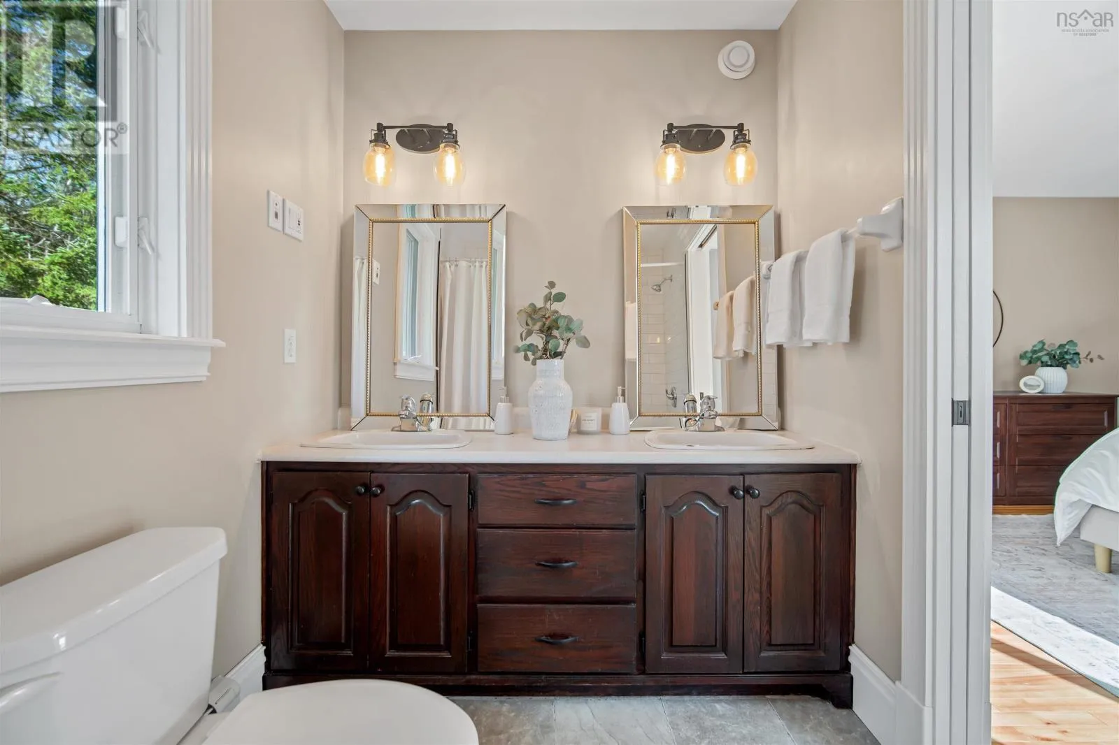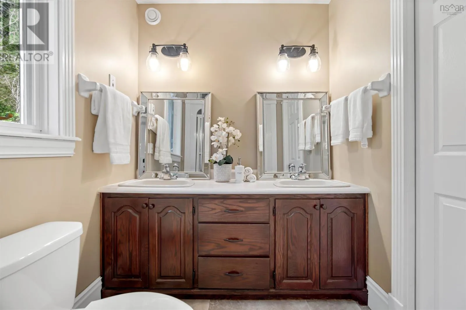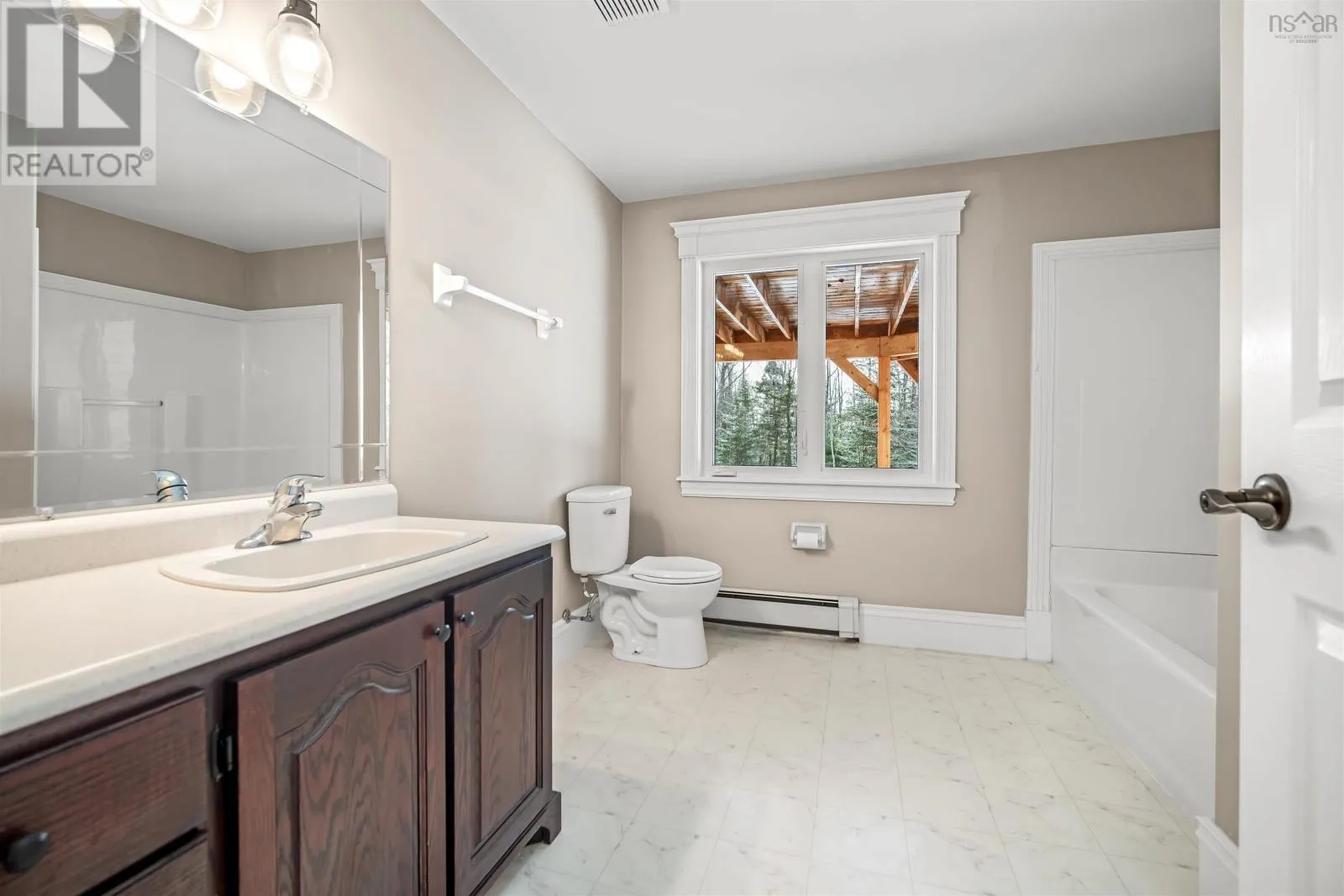 Follow NS-101 and Beaver Bank Rd/NS-354 N to Majestic Ave, continue on Majestic Ave to your destination - civic will be on your right. Welcome to 27 Monarch Drive, Beaver Bank a beautifully maintained bungalow set on a private ~1.93-acre lot, ideally located in a convenient and family-friendly neighbourhood directly across from an elementary school. Set within a school zone, this property offers both privacy and everyday practicality. This spacious home offers a functional layout with 4 bedrooms and 3 full bathrooms, including three bedrooms on the main level and one additional bedroom downstairs. The main level features vaulted ceilings, a separate dining room, and a cozy propane fireplace, creating a warm and inviting living space. The primary bedroom includes a walk-in closet and a well-appointed ensuite with a tiled tub surround and double vanity. Laundry is conveniently located on the main floor. The kitchen comes fully equipped with fridge, stove, oven, microwave, and dishwasher. Recent updates include a new oil tank, 11 new windows, a new exterior basement door, new deck door, and a new deck, adding both comfort and value. The home also features a paved driveway (shared partial driveway) and plenty of outdoor space to enjoy the peaceful surroundings. At 27 years young, this property delivers a rare combination of space, privacy, and functionality, all while remaining within easy reach of schools, amenities, and major commuter routes. (id:27476)