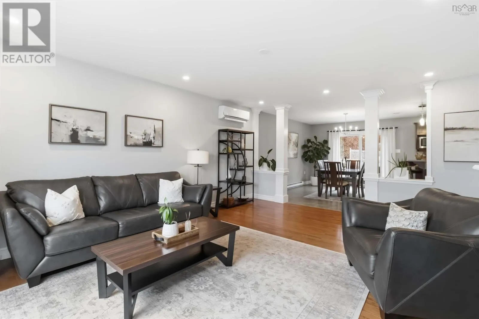 From Sackville Drive, travel 7 kms up Beaver Bank Road, left on Guptill Close. (just after Barret Road) Tucked away at the end of a quiet, family-friendly cul-de-sac, this beautifully maintained home offers curb appeal and a warm welcome. A mature maple tree frames the property, while a double-wide driveway and elegant exposed aggregate stairs lead to the covered front entry. Step into the spacious foyer, featuring durable ceramic tile and a convenient coat closet. A striking hardwood staircase with wrought iron spindles sets the tone as it leads to the light-filled main level. Bathed in natural light from both front and back exposures, the living spaces are inviting, and effortlessly comfortable. The living room features an electric fireplace; perfect for cozy evenings, while the adjoining dining area is ideally suited for entertaining, with patio doors opening to a 21 x 10 deck complete with a gazebo. Surrounded by lush greenery, the outdoor space offers a peaceful extension of the home. The kitchen blends style and function, showcasing abundant cabinetry and counter space, a central island, and pantry storage. Recent upgrades (Feb 2025) include stainless-steel appliances; fridge, range, pyramid-style range hood, and a contemporary rectangular sink with a three-mode swivel faucet, enhancing style and function. Privately set apart behind a hall door, the sleeping quarters offer a peaceful retreat. The primary bedroom features a walk-in closet and convenient access to the main bathroom, where a skylight fills the space with natural light. Two additional bedrooms complete this level. The lower level expands the homes versatility with a spacious family room, a fourth bedroom, another full bathroom, and a well-appointed laundry room. The built-in garage extends beyond parking, offering a dedicated workshop area and generous storage. A truly low maintenance home, complete with municipal water and sewer and a heat pump that delivers energy efficient heating and cooling. An excellent opportunity to own an immaculate home in a highly sought-after, welcoming neighbourhood (id:27476)