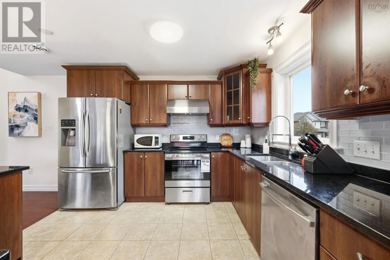 Southgate Dr to Windridge Lane Welcome to this beautiful 4-bedroom, 3.5-bath home located in one of Halifaxs most desirable communities Bedford South! From the moment you step into the spacious foyer, youll feel the warmth and comfort this home offers. The open-concept kitchen is perfect for both everyday living and entertaining, featuring granite countertops, a large center island, and stainless steel appliances. The bright living room is filled with natural light from wide windows that frame views of the mature trees behind the property a rare touch of tranquility right in the city. Upstairs, the primary suite impresses with a walk-in closet and a luxurious ensuite complete with double sinks. Two additional large bedrooms share another full bath, also with double sinks, and the convenient upstairs laundry adds modern practicality. The walkout lower level offers even more space with a generous rec room, a large bedroom with plenty of natural light, and a full bathroom ideal for guests or teens. Step outside to enjoy your private backyard garden, bordered by trees for added privacy. A ducted heat pump provides energy-efficient heating and cooling all year round. The double car garage adds convenience and extra storage. Located within walking distance to Bedford South School (English) and Ãcole Secondaire du Sommet (French), plus coffee shops, grocery stores, banks, and more. With easy access to Highway 102, this home blends modern living with a perfect location. (id:27476)
