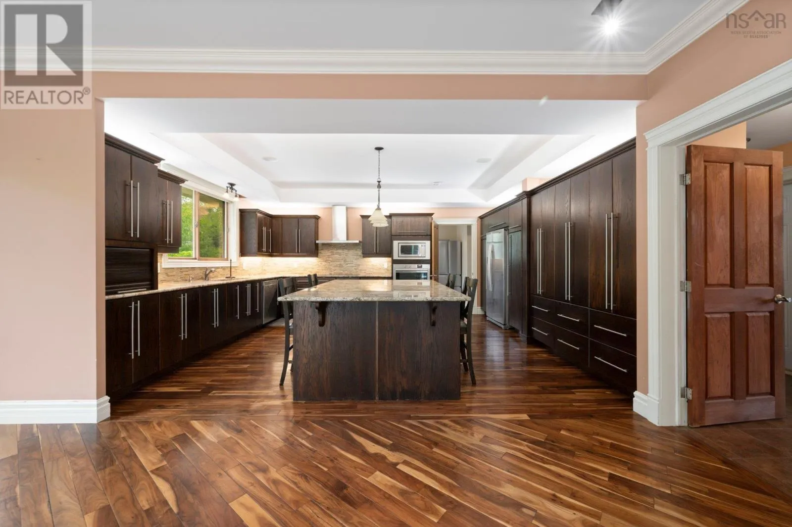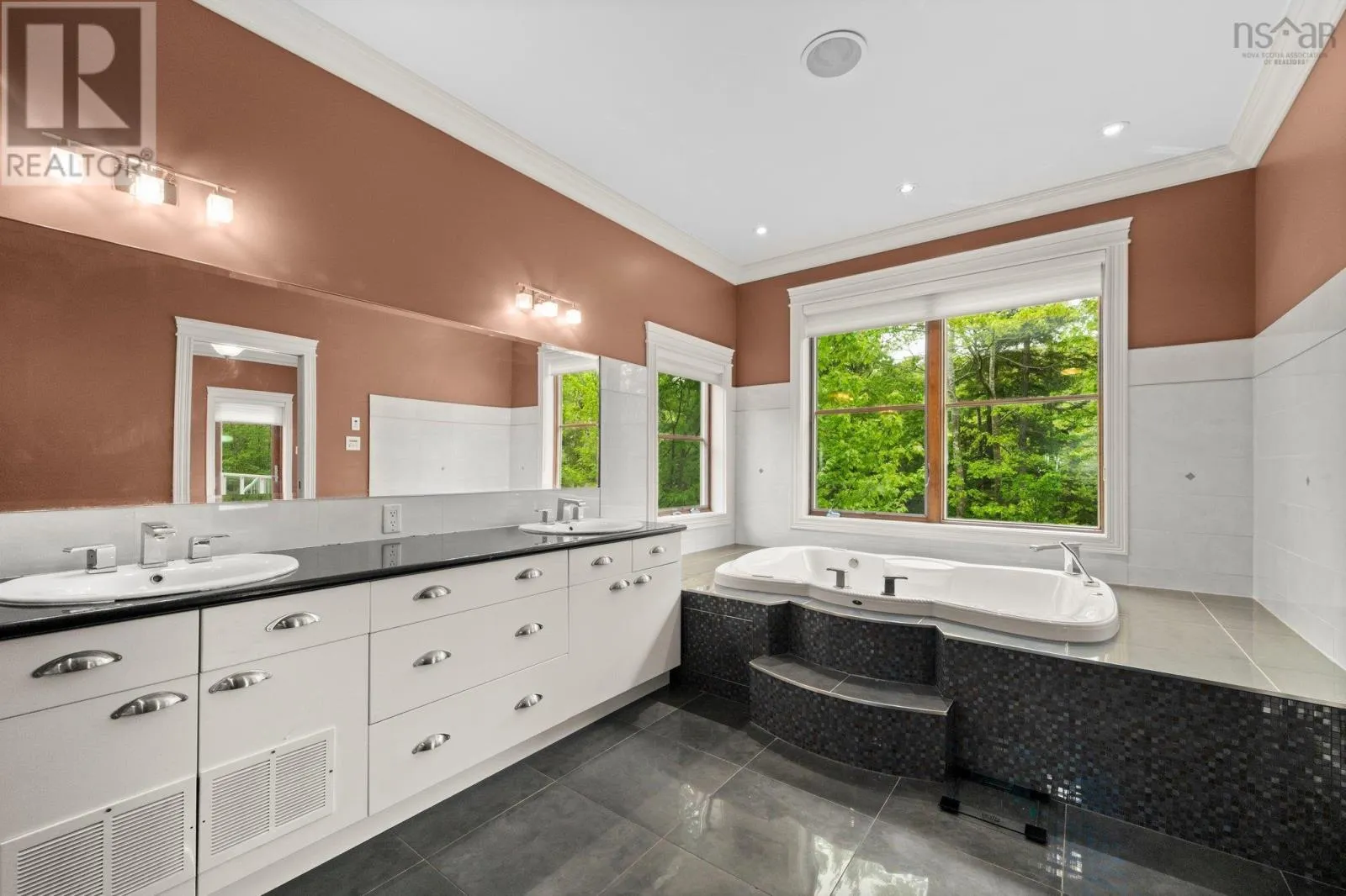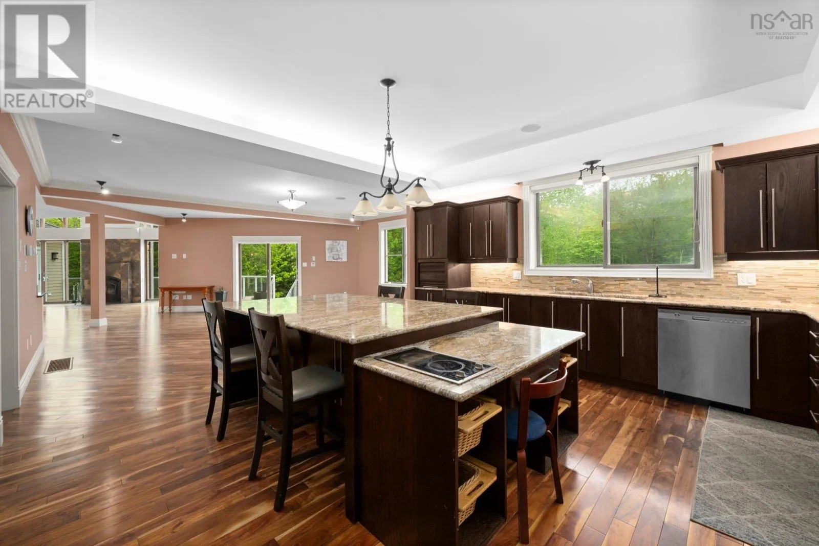 Southgate Drive to Ravines Drive. Ravines Drive to Vanier Way. Right onto Worthington Place. property is at the end of the cul-de-sac Welcome to this exceptional executive home, ideally situated on a quiet cul-de-sac in the prestigious Ravines of Bedford South. Crafted with impeccable attention to detail. this residence offers the perfect setting for refined living and grand entertaining. Step inside to discover a striking open-concept main level, featuring a sophisticated living room with a classic wood-burning fireplace, a formal dining area, and a chef-inspired kitchen that is truly the heart of the home. Designed for both beauty and functionality, the kitchen boasts a massive center island, granite countertops, abundant custom cabinetry, and a separate prep kitchen for added convenience. Also on the main floor, you'll find a luxurious primary suite with a spacious dressing room and a spa-like ensuite with a Jacuzzi tub, as well as a beautifully appointed guest bedroom- also with its own private ensuite. A dedicated office space completes this level. Upstairs, you'll find three additional well-sized bedrooms, including another grand primary suite with a lavish 5-piece ensuite, a shared full bathroom, a bright hallway with space ideal for a pool table, lounge area, or reading nook. This level also offers versatile space for a family room, studio, gym, or recreation room- whatever best suits your lifestyle. The expansive lower level is a dream unto itself, featuring a second full kitchen, a spacious dining and living area, a media room, and space for a gym. it includes three additional bedrooms, each wth its own ensuite bathroom, offering privacy and comfort for guests or extended family. With 4 separate walkouts to the beautifully landscaped backyard, the lower level offers Geo-Thermal heating, 4 ductless heat pumps, a 23-zone strereo/audio & intercom system. Another feature is the fully integrated, internet-controlled home automation system. (id:27476)