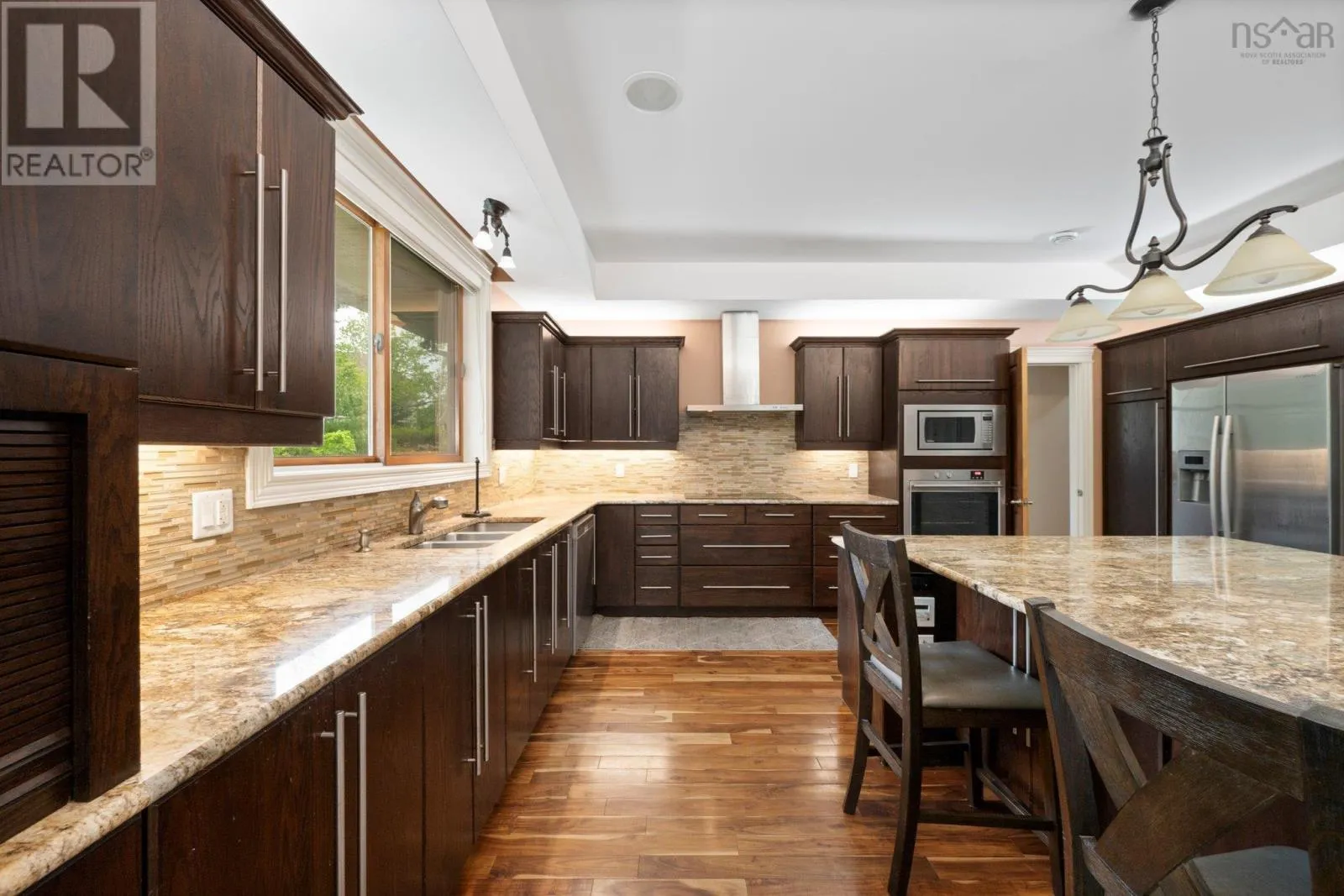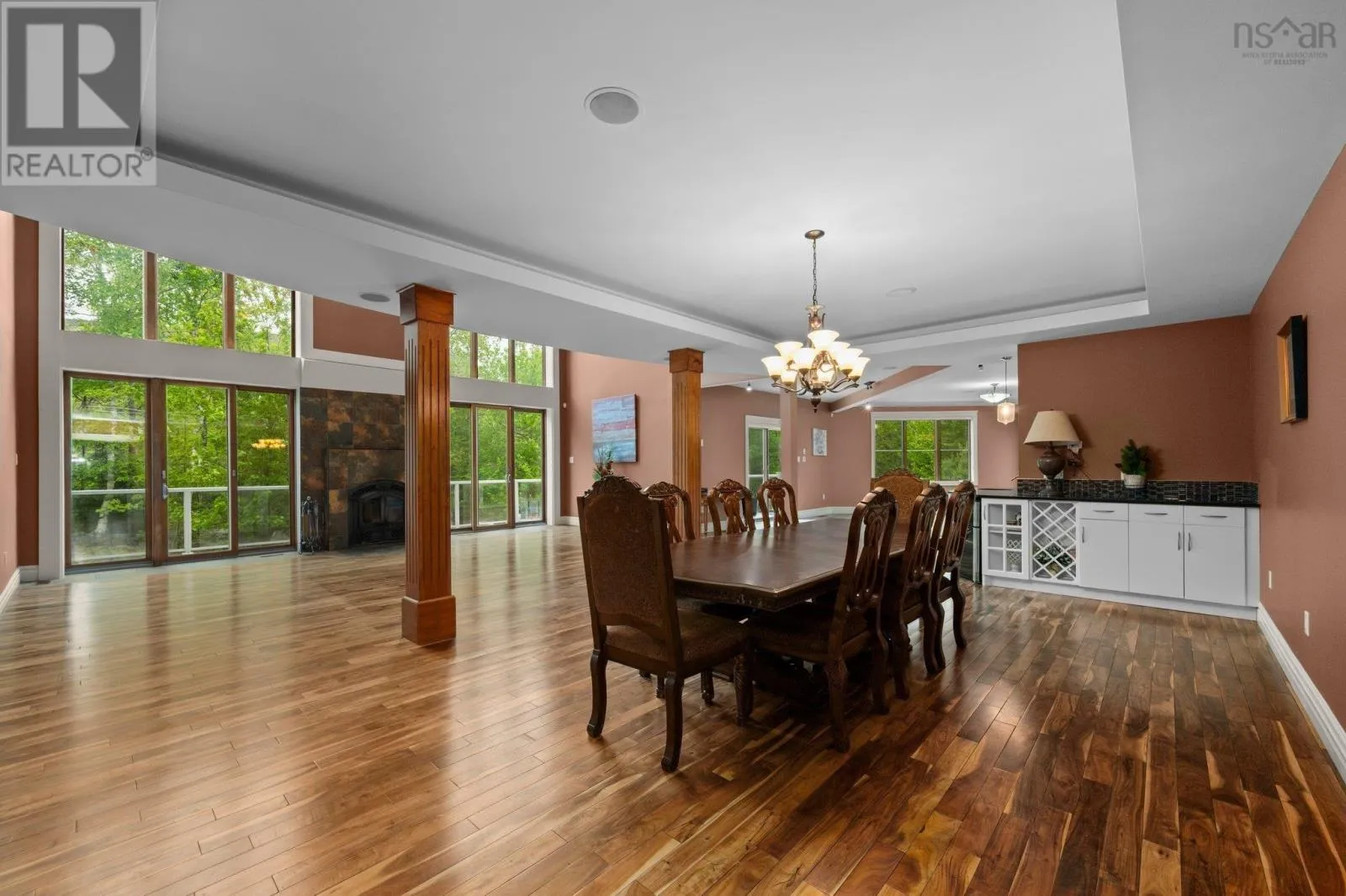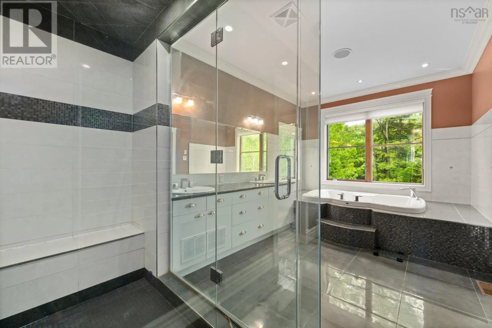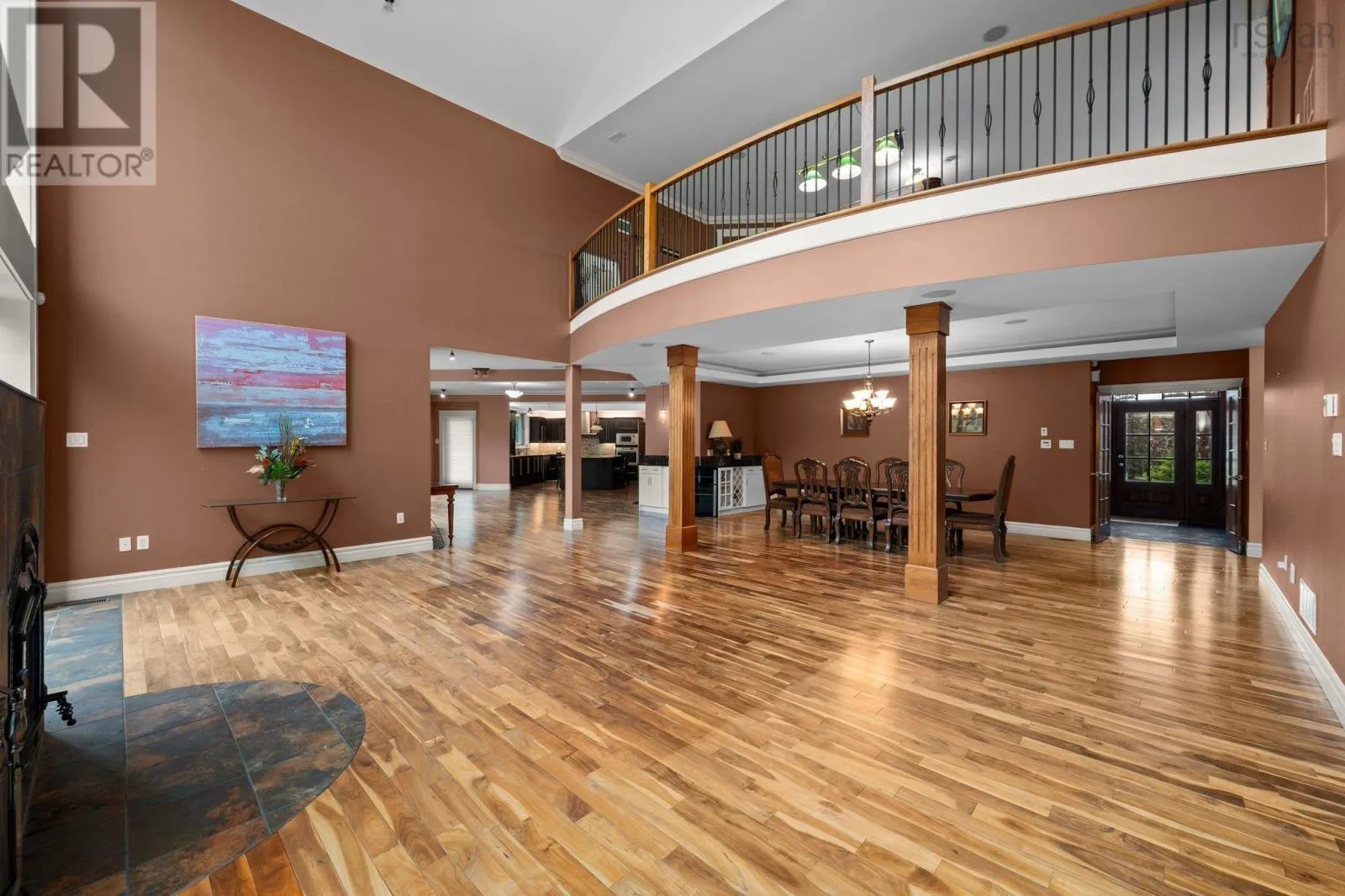 Southgate Drive to Ravines Drive. Ravines Drive to Vanier Way. Right onto Worthington Place. property is at the end of the cul-de-sac Welcome to this exceptional executive home, ideally situated on a quiet cul-de-sac in the prestigious Ravines of Bedford South. Crafted with impeccable attention to detail. this residence offers the perfect setting for refined living and grand entertaining. Step inside to discover a striking open-concept main level, featuring a sophisticated living room with a classic wood-burning fireplace, a formal dining area, and a chef-inspired kitchen that is truly the heart of the home. Designed for both beauty and functionality, the kitchen boasts a massive center island, granite countertops, abundant custom cabinetry, and a separate prep kitchen for added convenience. Also on the main floor, you'll find a luxurious primary suite with a spacious dressing room and a spa-like ensuite with a Jacuzzi tub, as well as a beautifully appointed guest bedroom- also with its own private ensuite. A dedicated office space completes this level. Upstairs, you'll find three additional well-sized bedrooms, including another grand primary suite with a lavish 5-piece ensuite, a shared full bathroom, a bright hallway with space ideal for a pool table, lounge area, or reading nook. This level also offers versatile space for a family room, studio, gym, or recreation room- whatever best suits your lifestyle. The expansive lower level is a dream unto itself, featuring a second full kitchen, a spacious dining and living area, a media room, and space for a gym. it includes three additional bedrooms, each wth its own ensuite bathroom, offering privacy and comfort for guests or extended family. With 4 separate walkouts to the beautifully landscaped backyard, the lower level offers Geo-Thermal heating, 4 ductless heat pumps, a 23-zone strereo/audio & intercom system. Another feature is the fully integrated, internet-controlled home automation system. (id:27476)