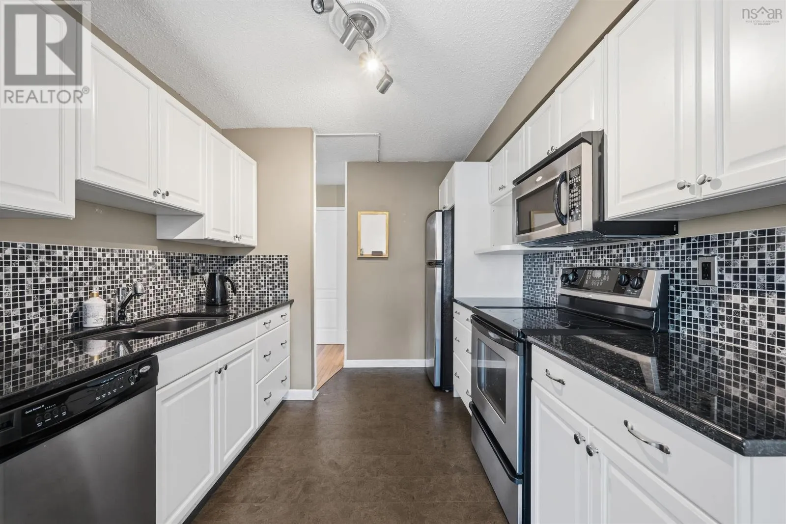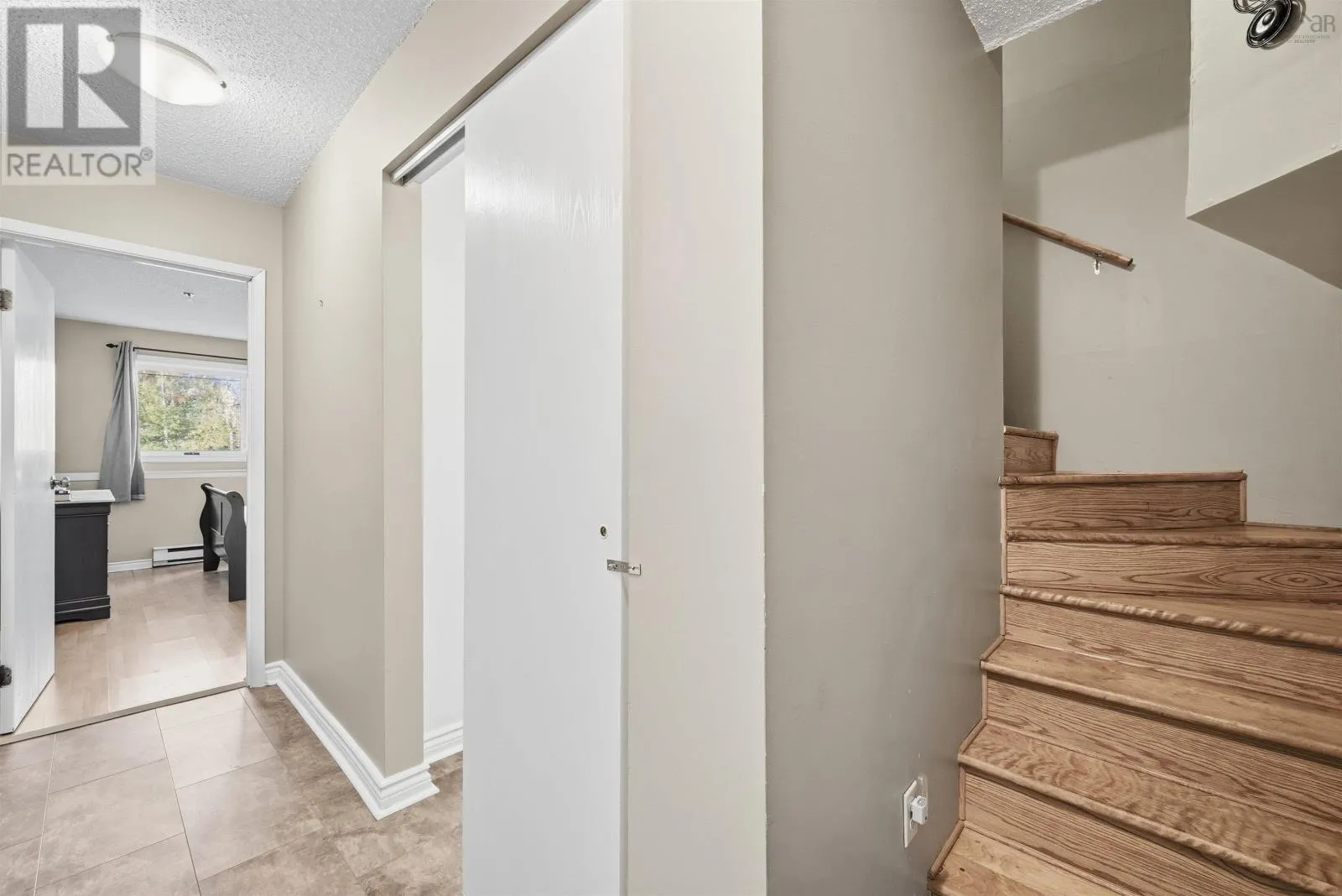 Hammonds Plains to Basinview turn right on Wimbledon This spacious 2-bedroom, 1.5-bath, two-level condo in The Glencairn offers a perfect mix of comfort, convenience, and community. The main level features a bright, functional layout with an updated kitchen, generous living and dining areas, and a 2-piece guest bathroom. Step outside to your private patioideal for morning coffee or quiet evenings. Downstairs, enjoy a large primary bedroom with walk-in closet, a second bedroom for guests or a home office, a full 4-piece bath, and a laundry/utility room with plenty of storage. Residents benefit from a well-maintained building with excellent amenities, including a library, fitness room, party space, elevator, and live-in superintendent. Set in a peaceful, tree-lined location yet close to shopping, dining, and trailsthis condo delivers easy, low-maintenance living in a welcoming community. (id:27476)