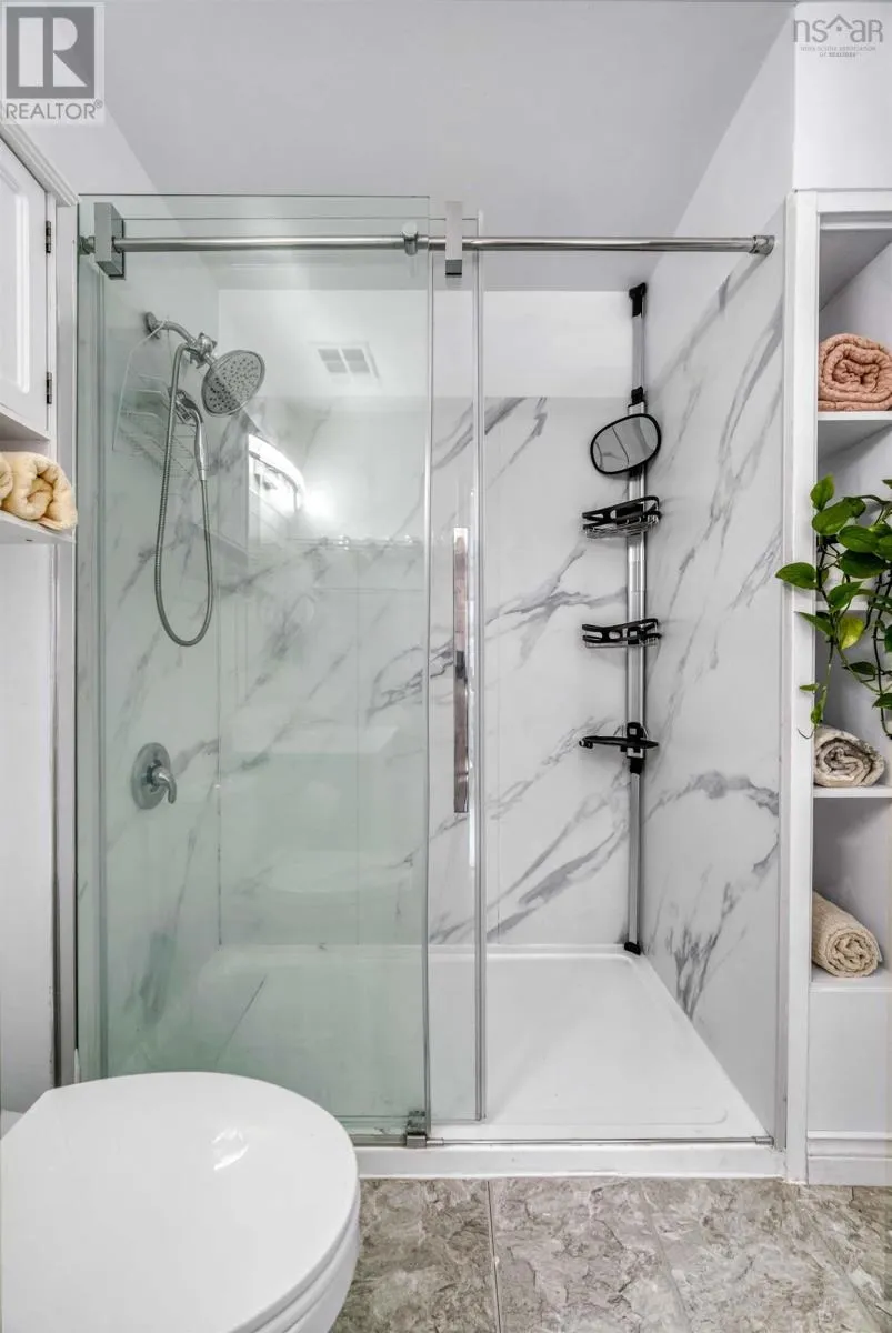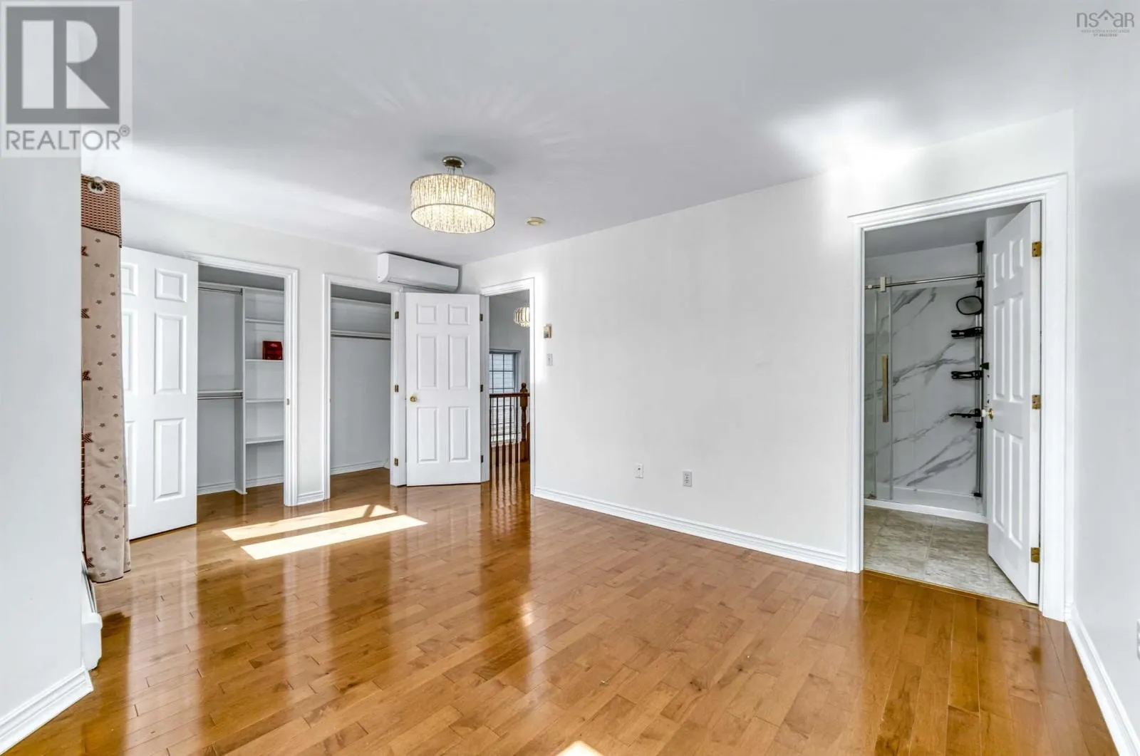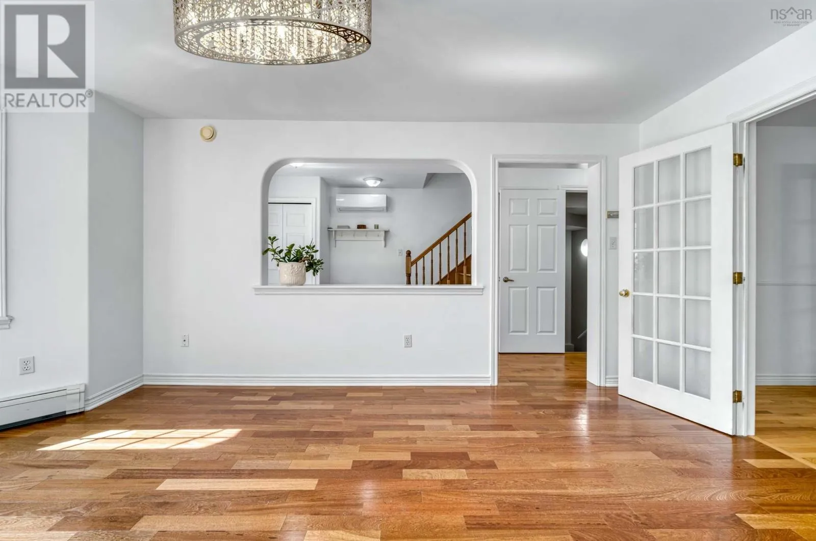 Bedford Highway to Morris Mill Rd to Amin Street, house is on the left. Welcome to 77 Amin St, a charming semi-detached home nestled in one of Bedford's most beloved family neighborhoods. This property boasts 3+1 bedrooms and 3.5 bathrooms, with wood flooring throughout all three levels. The open-concept main floor features a bright living room and dining room, a generously sized kitchen with quartz countertops, a breakfast nook, and direct access to the deck, along with a convenient powder room. On the second floor, a beautiful hardwood landing leads to a large master bedroom complete with an ensuite bathroom and a spacious closet. Two additional good-sized bedrooms share a main bathroom. The walkout basement offers a versatile bedroom/den with a full bathroom and a dedicated gym/exercise area with access to the backyard. Recent upgrades include a new water heater (2024), three efficient heat pumps (2024), and fresh paint throughout. This well-maintained home seamlessly combines modern updates with a quiet and relaxing setting, providing both comfort and functionality. (id:27476)