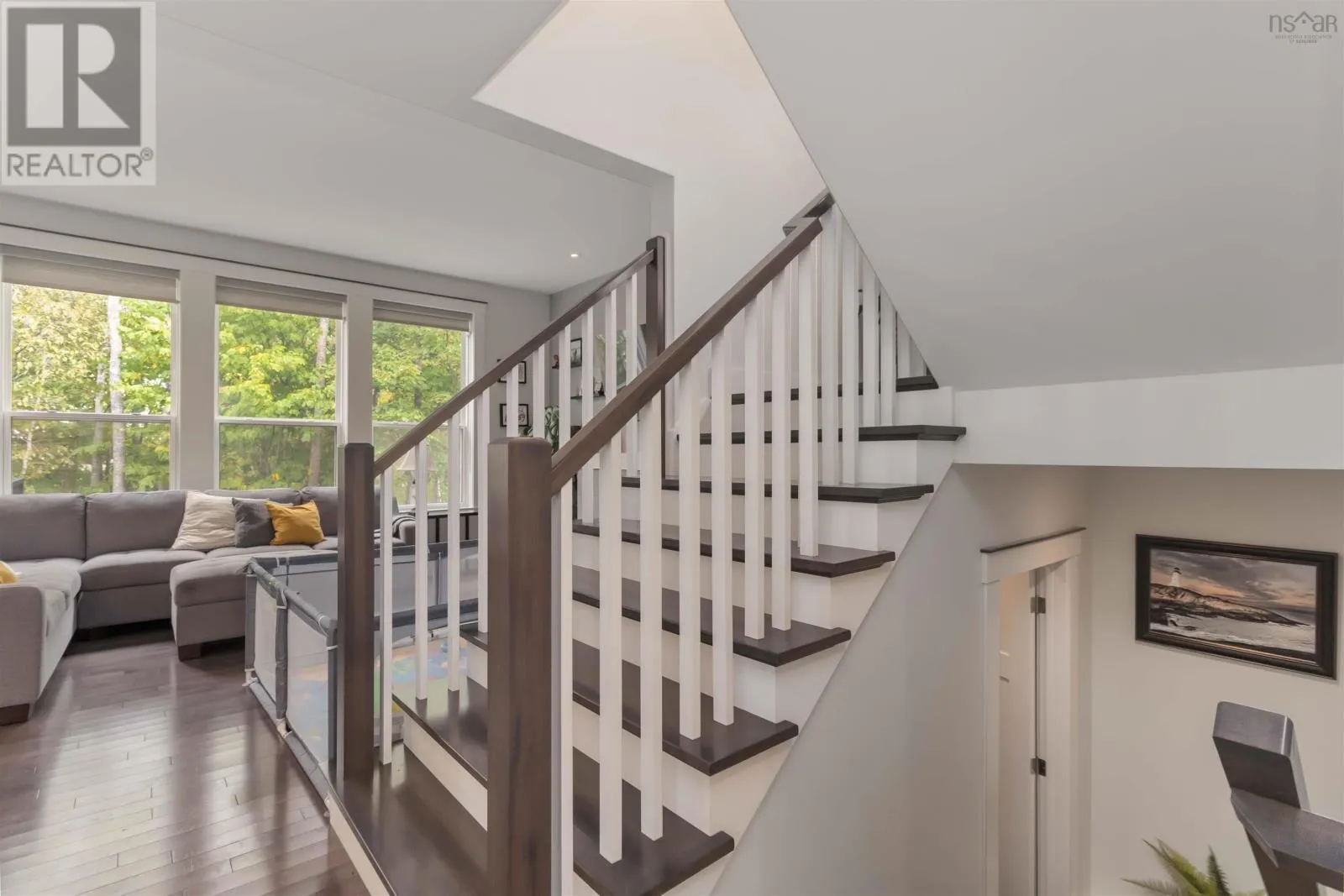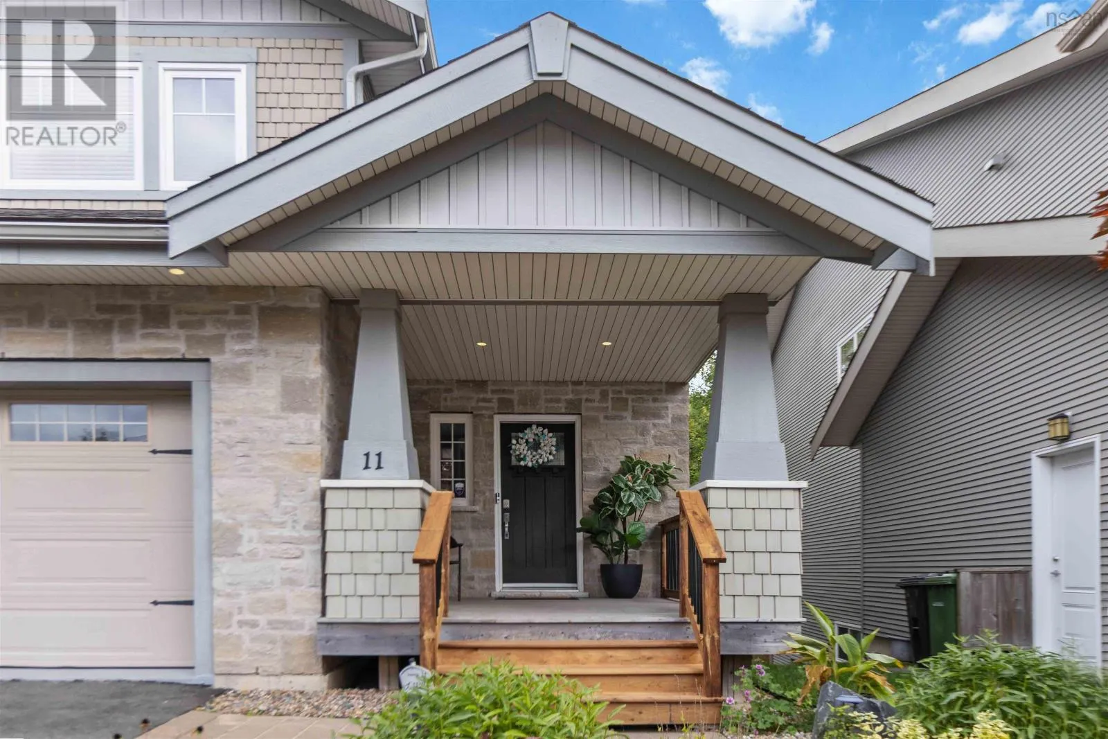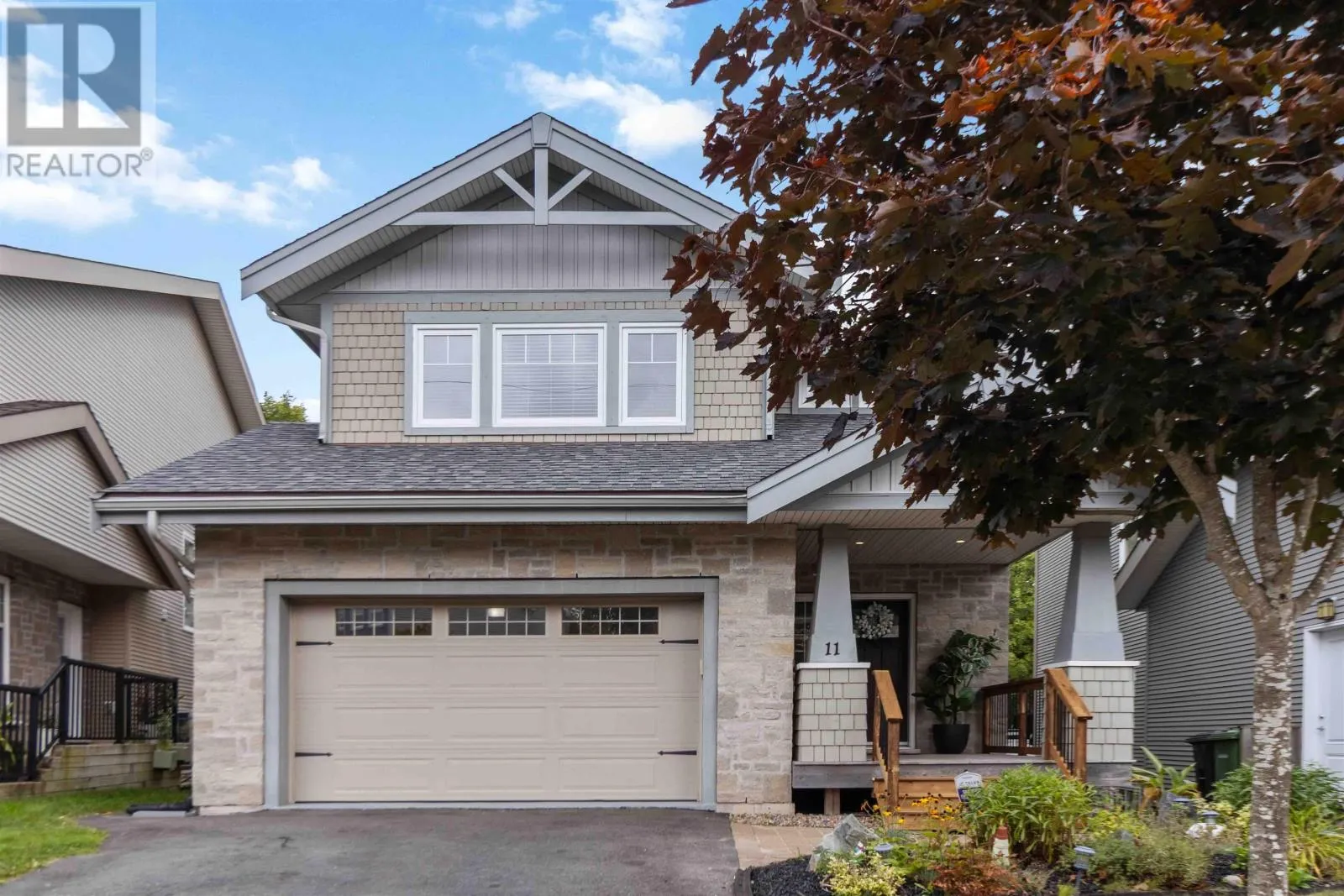 Hammonds Plains Rd to Gary Martin Dr to Hazelton Hill to Aspen Court Custom designed and unlike anything else in the sought-after Parks of West Bedford - welcome to 11 Aspenhill Court in Stonington Park. This is the address neighbors point to and say, that's the one. From the street, the oversized lot and covered front porch set the tone. Step inside and the feeling continues - tall ceilings, walls of glass, and an open flow that instantly feels different. A striking glass-walled office makes a statement, while the kitchen steals the show: a chef's dream with granite counters, oversized island, stylish backsplash, endless soft-close cabinetry, walk-in pantry with sink, and under-cabinet lighting throughout. The dining area opens seamlessly to your deck, while the living room brings everyone together with a propane fireplace framed by custom shelving. Energy-efficient ductless heat pump keeps it all comfortable year-round. Upstairs, retreat to a primary suite that truly delivers: backyard views, generous closets, and a spa-inspired ensuite with double vanity, soaker tub, and custom glass shower. Two more bedrooms, a full bath, and convenient laundry round out this level. The lower level is made for family and friends - a spacious rec room with walk-out, another heat pump, a fourth bedroom, and a full bath. Step outside and discover your private backyard oasis: hardwood canopy, play space, sitting area, and direct access to wooded walking trails for evening strolls. Extras push this home further ahead: epoxy-finished 1.5 car garage, solar-ready system, custom blinds, and thoughtful trim throughout. This is an executive home built for both comfort and impact - in a family-friendly community just minutes from schools, recreation, shopping, and dining. 11 Aspenhill Court. Distinctive. Move-in ready. The home in West Bedford you don't want to miss. (id:27476)