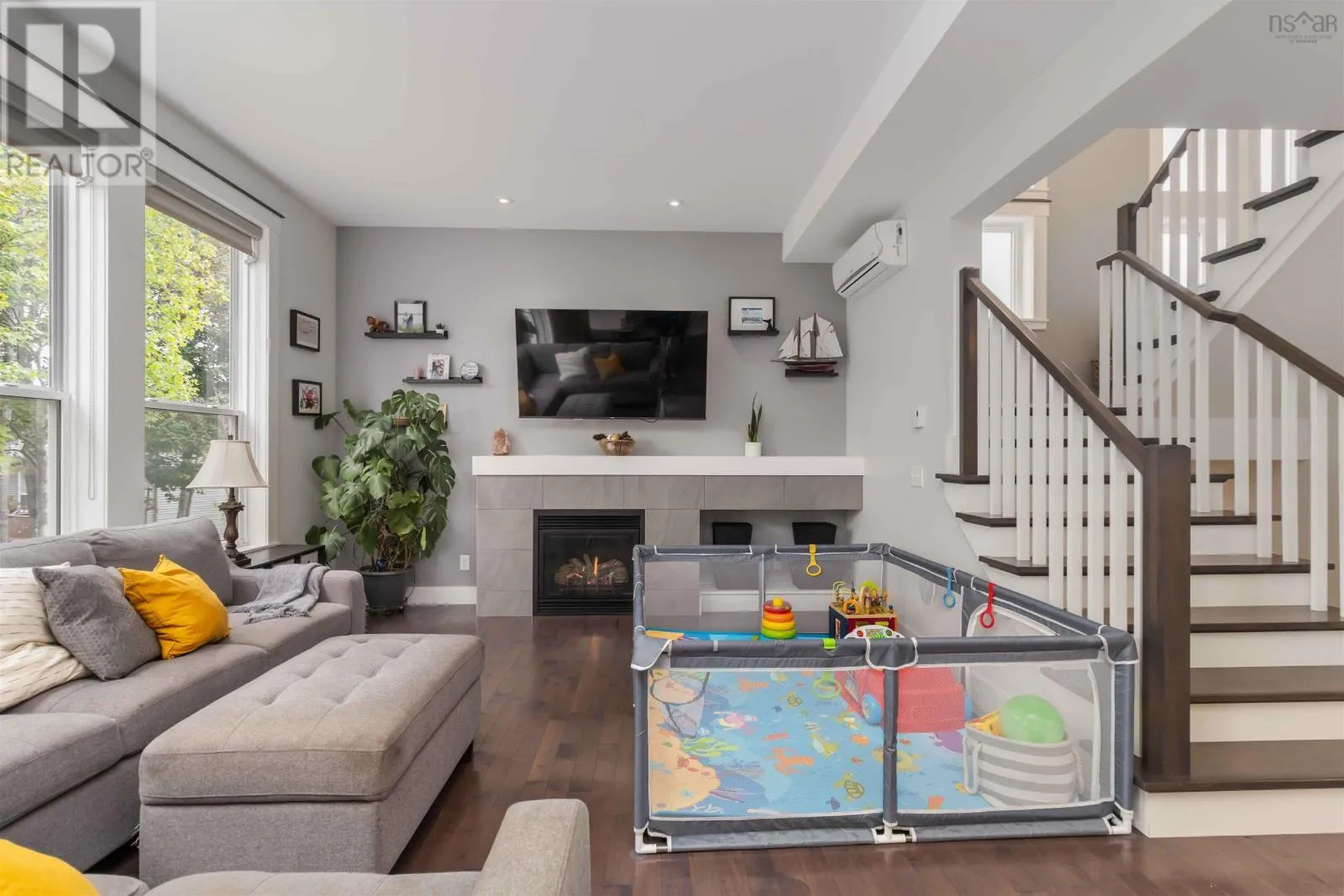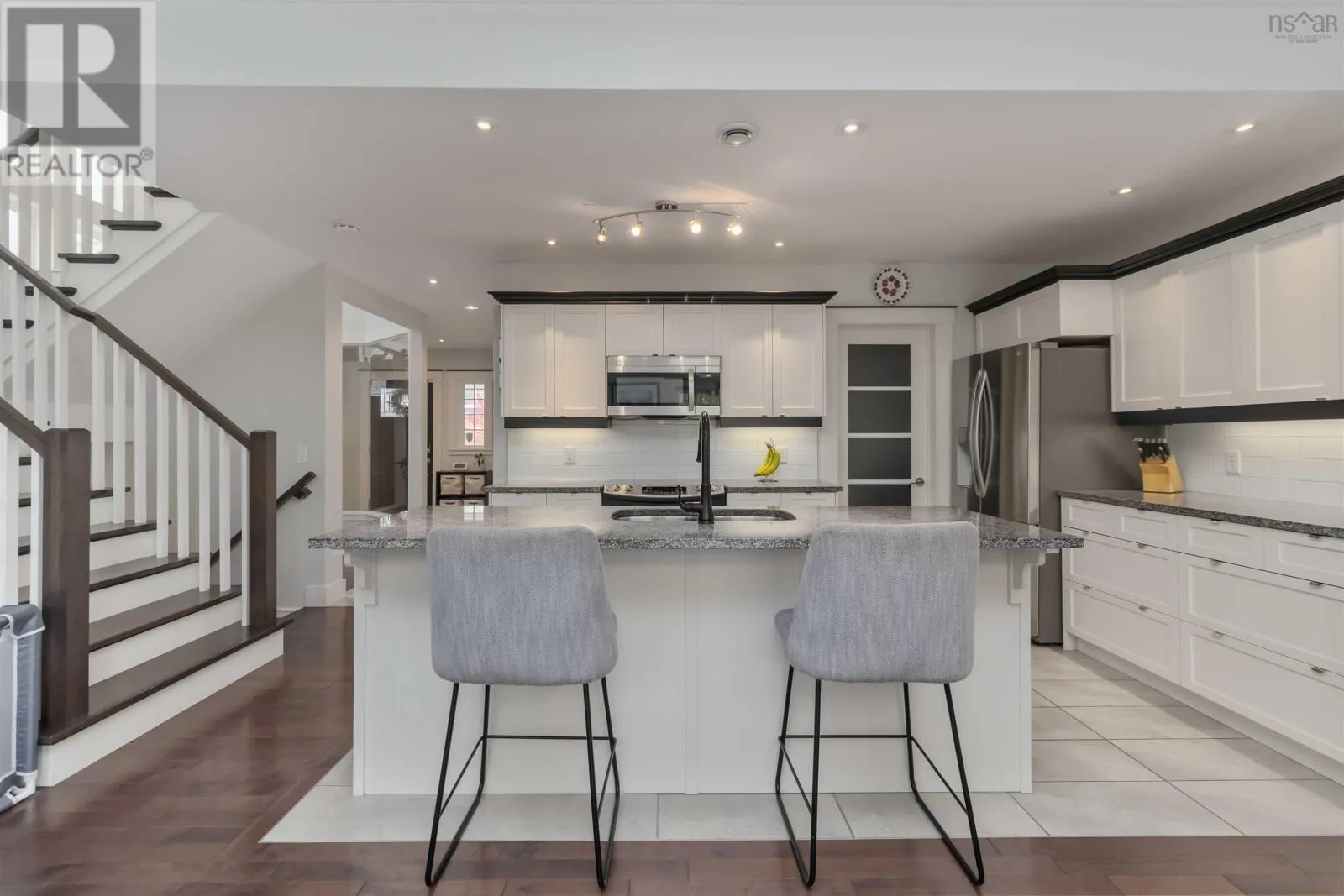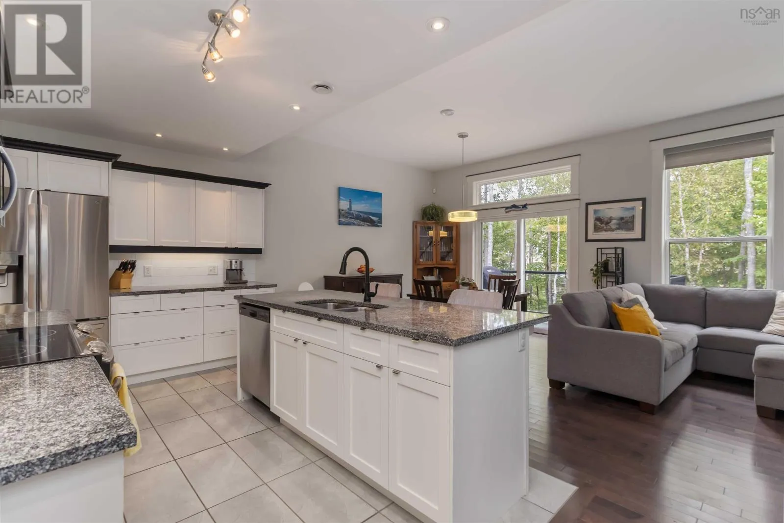 Hammonds Plains Rd to Gary Martin Dr to Hazelton Hill to Aspen Court Custom designed and unlike anything else in the sought-after Parks of West Bedford - welcome to 11 Aspenhill Court in Stonington Park. This is the address neighbors point to and say, that's the one. From the street, the oversized lot and covered front porch set the tone. Step inside and the feeling continues - tall ceilings, walls of glass, and an open flow that instantly feels different. A striking glass-walled office makes a statement, while the kitchen steals the show: a chef's dream with granite counters, oversized island, stylish backsplash, endless soft-close cabinetry, walk-in pantry with sink, and under-cabinet lighting throughout. The dining area opens seamlessly to your deck, while the living room brings everyone together with a propane fireplace framed by custom shelving. Energy-efficient ductless heat pump keeps it all comfortable year-round. Upstairs, retreat to a primary suite that truly delivers: backyard views, generous closets, and a spa-inspired ensuite with double vanity, soaker tub, and custom glass shower. Two more bedrooms, a full bath, and convenient laundry round out this level. The lower level is made for family and friends - a spacious rec room with walk-out, another heat pump, a fourth bedroom, and a full bath. Step outside and discover your private backyard oasis: hardwood canopy, play space, sitting area, and direct access to wooded walking trails for evening strolls. Extras push this home further ahead: epoxy-finished 1.5 car garage, solar-ready system, custom blinds, and thoughtful trim throughout. This is an executive home built for both comfort and impact - in a family-friendly community just minutes from schools, recreation, shopping, and dining. 11 Aspenhill Court. Distinctive. Move-in ready. The home in West Bedford you don't want to miss. (id:27476)