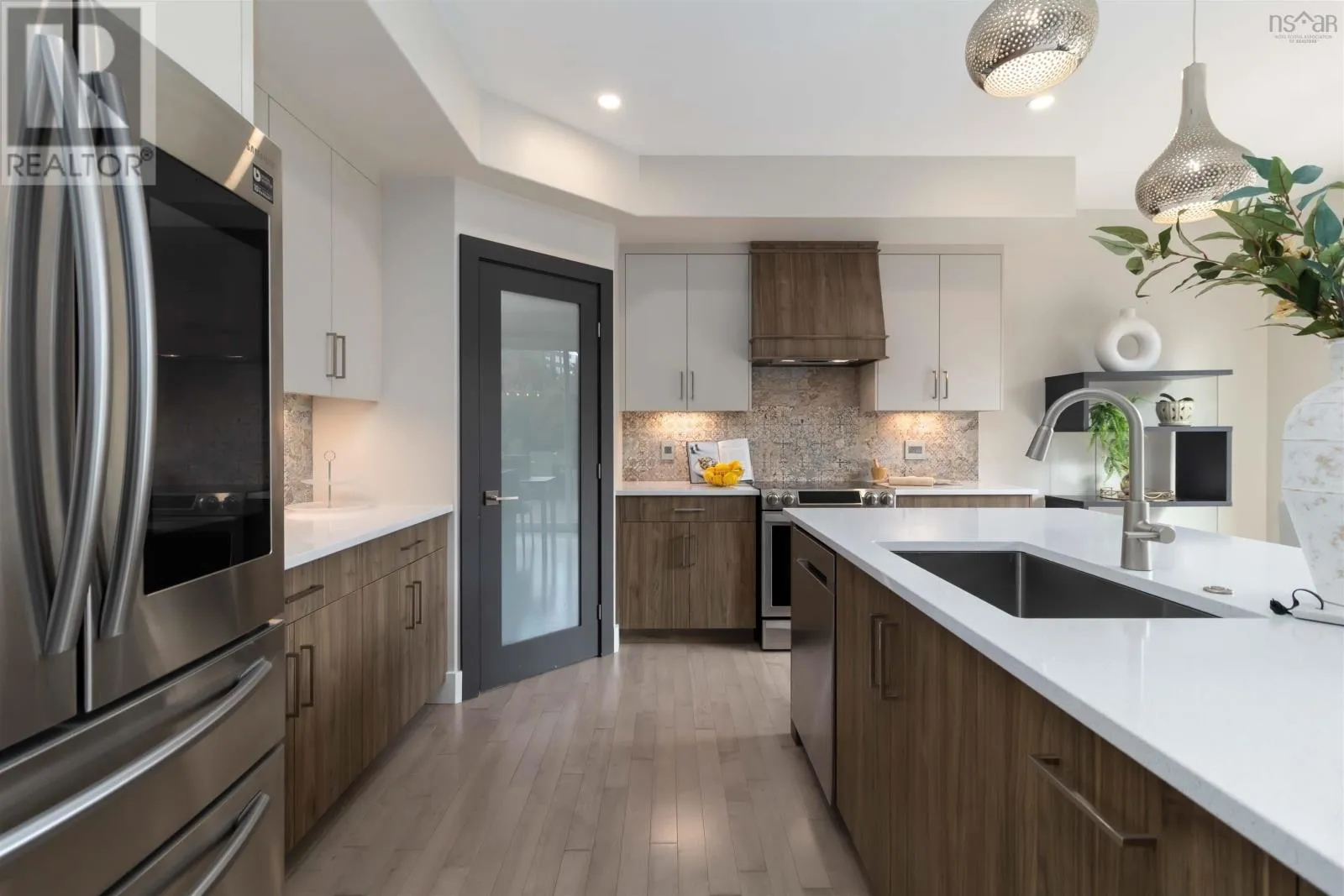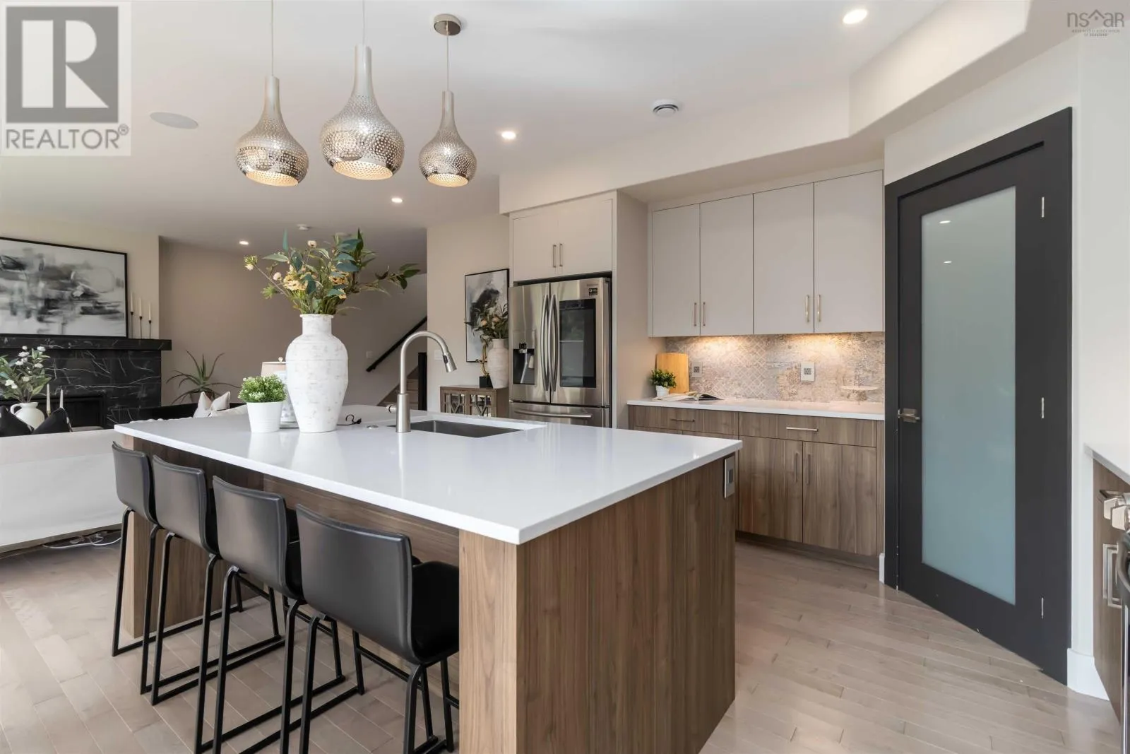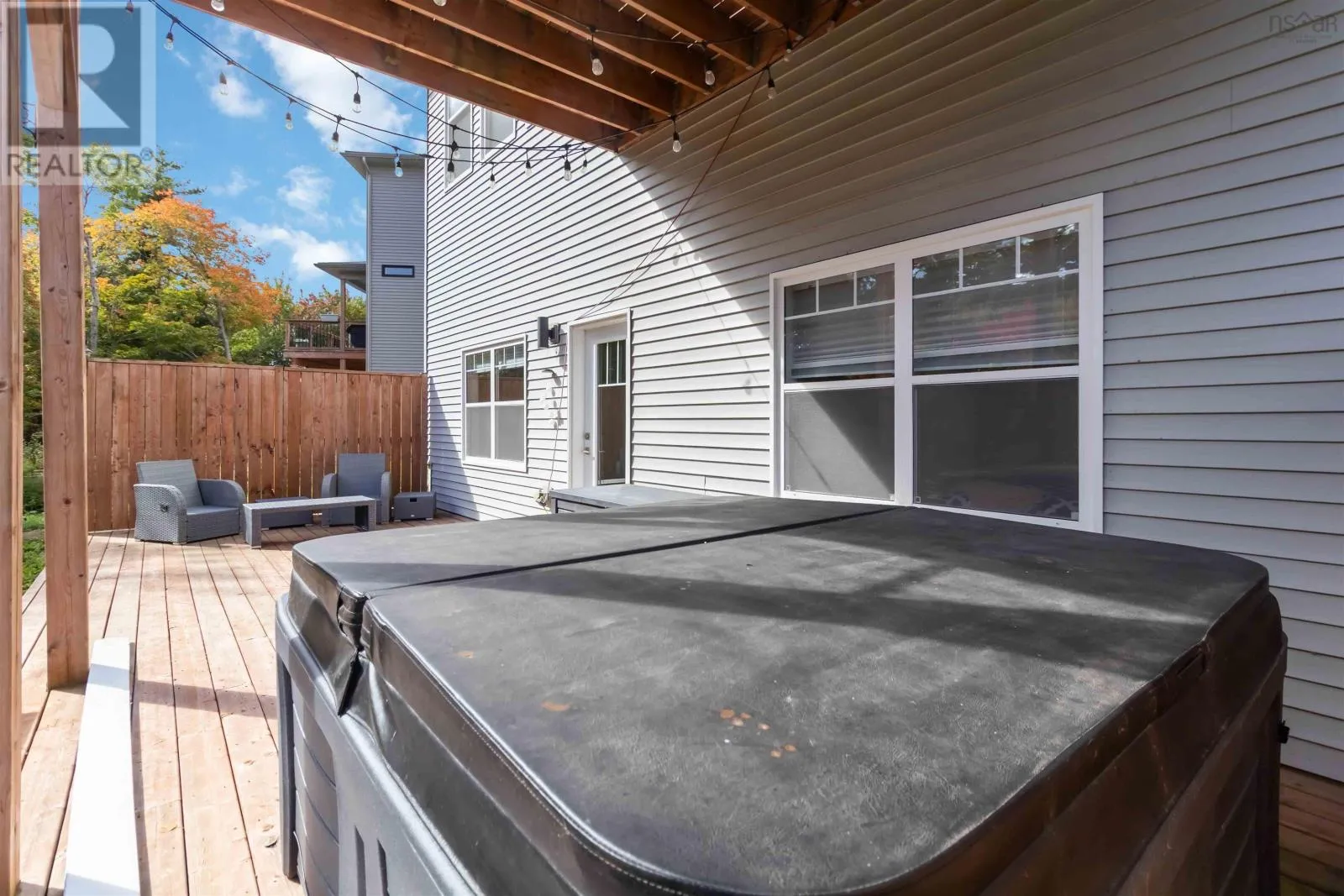 Larry Uteck Blvd to Broad St to Tilbury Ave to Innsbrook Way, at end of cul-de-sac Welcome to 128 Innsbrook Way, West Bedford. This exquisite 4-bedroom, 3.5-bath home blends modern design with timeless comfort in one of the area's most sought-after communities. Bright and inviting, the open-concept layout is perfect for both entertaining and everyday family living. At the heart of the home is a spacious chef's kitchen featuring high-end finishes, ample storage, and a large island designed for gathering. Unwind by the cozy gas fireplace in the living room, or step outside to the back deck overlooking peaceful greenspace and walking trails. You can also retreat to the private back patio and soak in the hot tub for the ultimate relaxation. Upstairs, discover generously sized bedrooms with large closets, including a luxurious primary suite with a walk-in closet featuring custom shelving and a spa-like ensuite bathroom. The fully finished lower level offers a versatile family room equipped with a built-in audio and speaker system, ideal for movie nights or entertaining guests. Tucked away on a quaint cul-de-sac, this home offers the best of both worlds: a quiet, family-friendly setting while being only minutes from schools, parks, and all of West Bedfords amenities. Meticulously cared for and move-in ready, 128 Innsbrook Way is a home you won't want to miss. (id:27476)