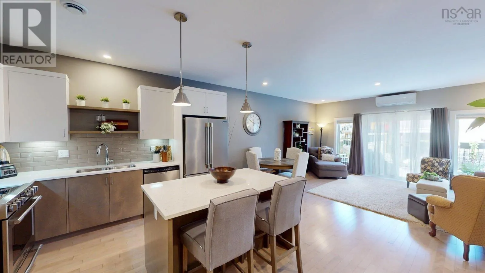 Larry Uteck West Blvd West to Amesbury Gate to Bradford Place, Subdivision is Waterberry Park This magnificent, move-in ready bungalow is located on a quiet street within the highly sought after community of Waterberry Park where you are surrounded by green spaces and trails designed to promote physical activity and mental well-being. Stroll down to the shops and restaurants on Larry Uteck Blvd., or hop in the car for an easy 20-minute commute to downtown Halifax. Maintained with obvious pride this home shows like new and has been landscaped with beautiful trees, shrubs and perennials. With neutral décor in a new trending style the main level features a modern open concept living space with high quality fits and finishes. The kitchen offers an abundance of cabinetry and counter space including a large walk-in pantry for the storage of all your goodies and specialized appliances, dining and living room areas with natural hardwood flooring, patio doors leading to the upper deck with natural gas BBQ hookup, large primary bedroom with full ensuite bath featuring double sinks, glass and tile surround shower and a spacious walk-in closet, second good sized bedroom, second full bath, conveniently located laundry room, spacious front foyer and access to garage that is perfect for the secure storage of your vehicle, tools and/or toys. The lower level has an expansive open concept family to recreation room space with durable quality laminate flooring, third good sized bedroom with walk-in closet and convenient access to the third full bath, huge bonus room currently used as a gym that would be perfect for a home theater and/or large office, spacious utility room with a ton of room for storage and a walkout to the lower level stone patio and fully fenced back yard. This energy efficient townhome also features a natural gas boiler and ductless heat pump, resulting in low-cost heating and cooling with on demand hot water. The storage shed, stainless-steel appliances and washer & dryer are included. With warm friendly neighbours, this home has it all. View it today! (id:27476)