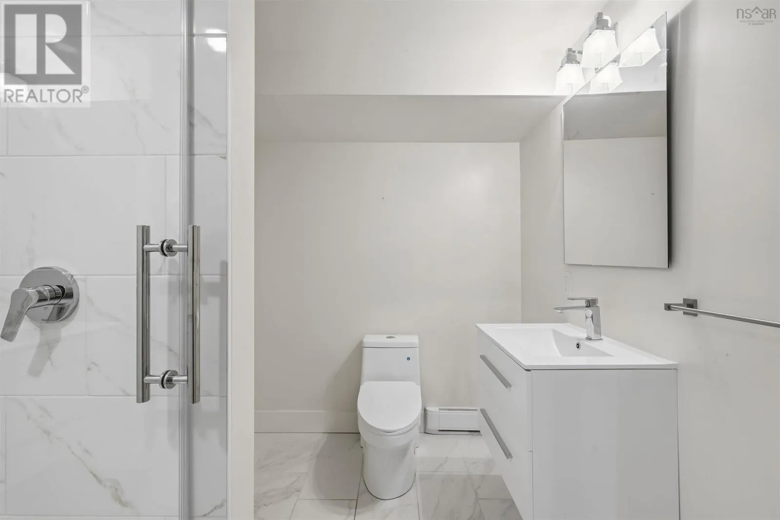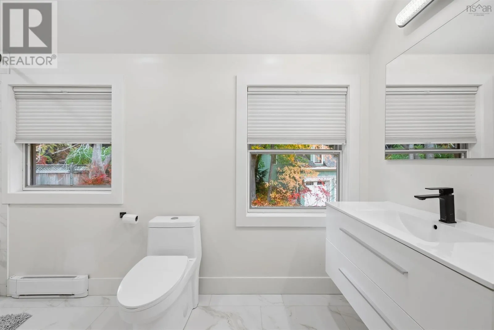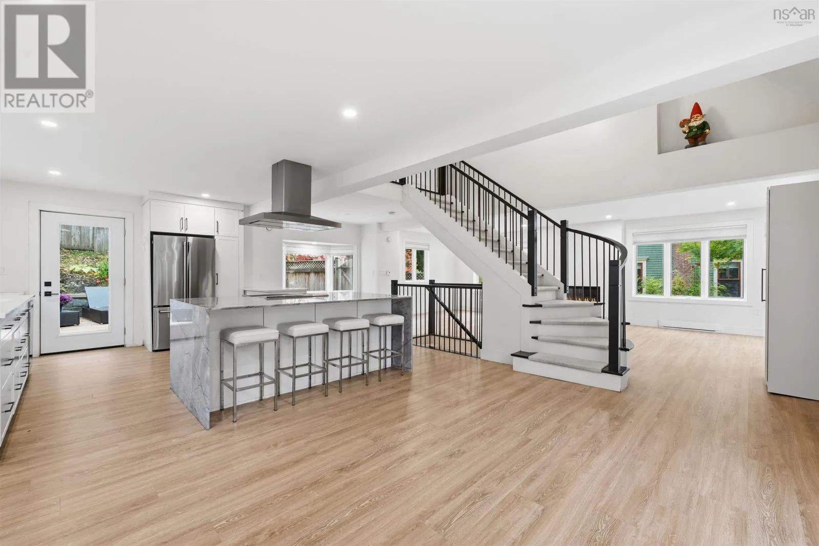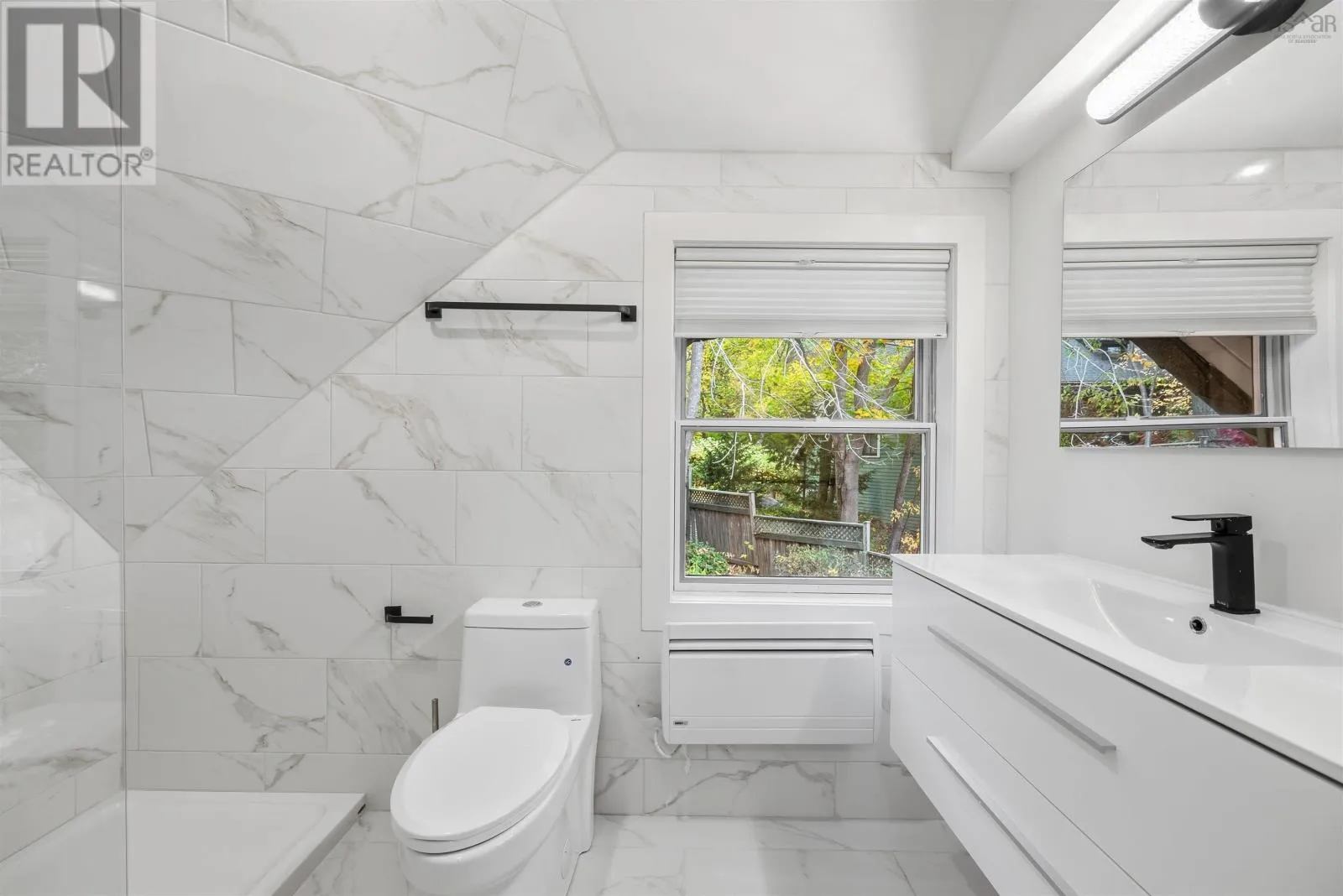 Bedford Hwy to Shore Drive Introducing this impressive property in Bedford's most desirable and prestigious neighbourhood.680 Shore Drive has a modern condo feel with all the pluses of an urban oasis. The main floors open layout flows easily and you can have a dining room in multiple areas. The living room is a stagers dream flooded with natural light from the large windows with electric fireplace and so much space. The kitchen has cupboards aplenty and a center island with a gorgeous marble waterfall countertop. Two bedrooms upstairs each with their own ensuite. The downstairs is completely finished with a rec room, large games room/flex space, full bath, separate laundry and storage room. Convenient access from kitchen to expansive back deck overlooking your low maintenance garden and fenced yard. Sweet little she shed or man cave with windows and electric fireplace. Walk to the Bedford Yacht Club and all the conveniences of Bedford. (id:27476)