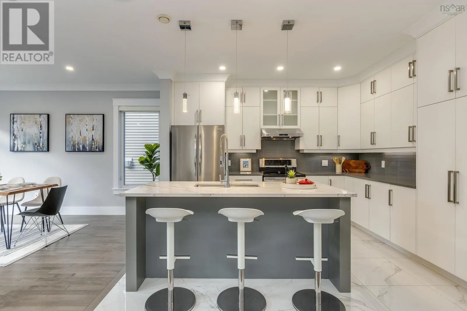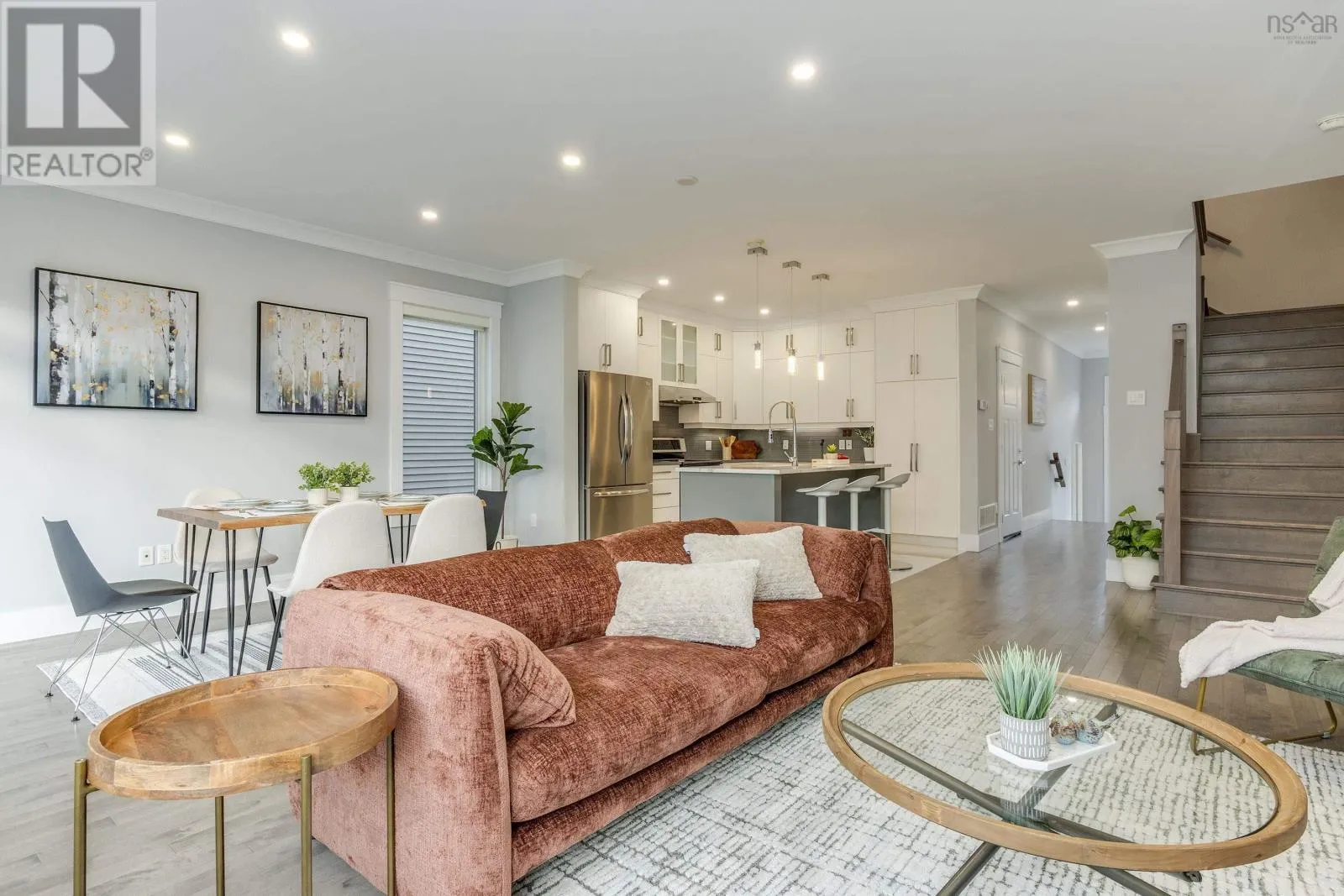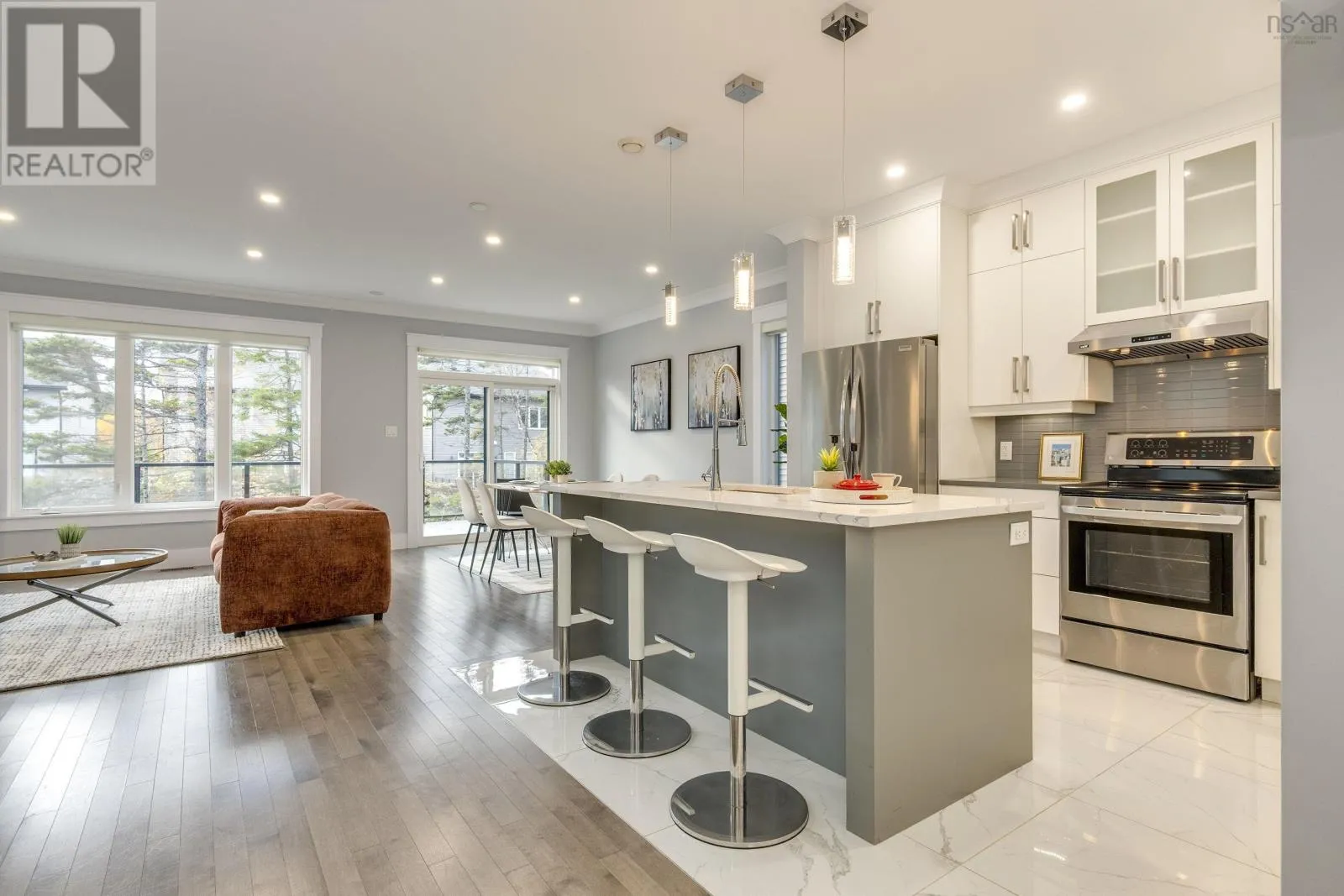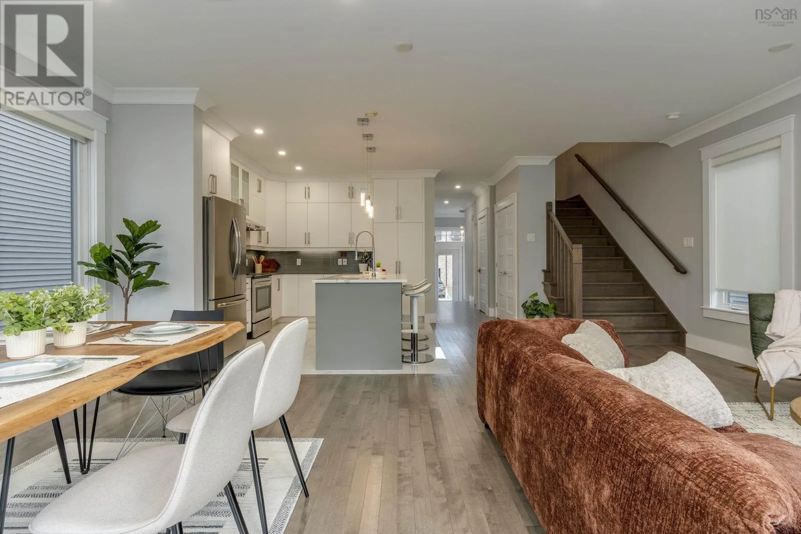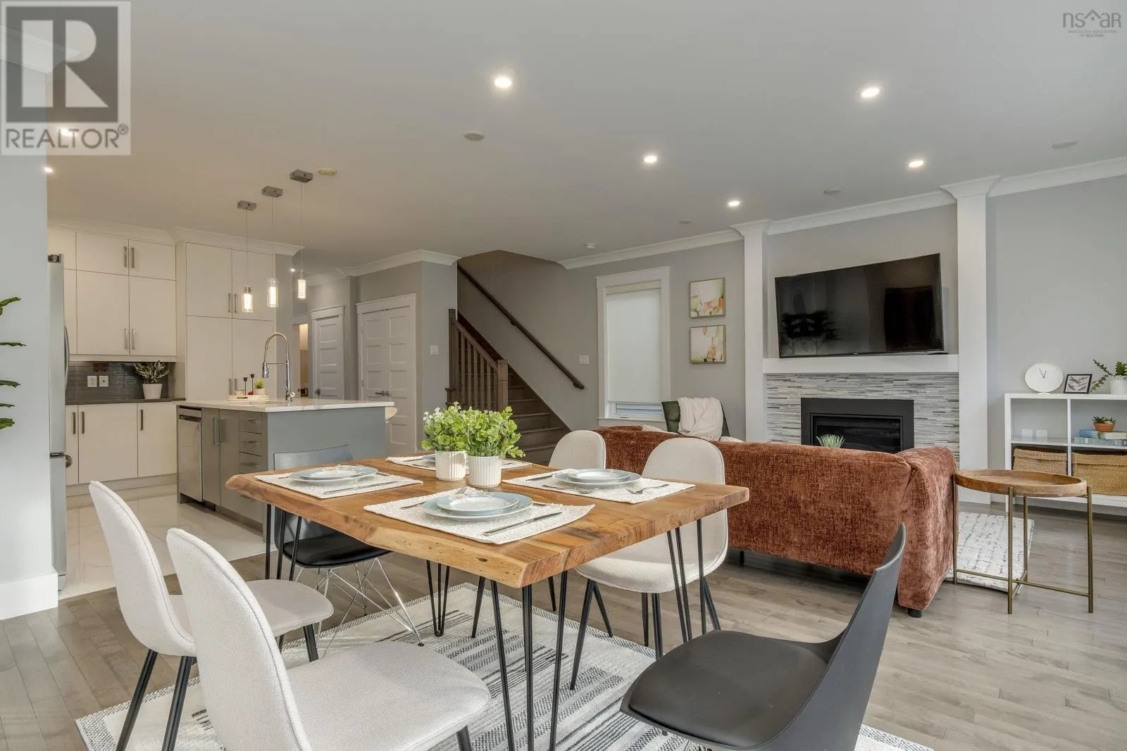 Larry Uteck to Broad St to Tilbury Ave Welcome to this stunning contemporary two-storey home in the heart of the sought-after Cascade Park community of West Bedford!The main level offers a bright open-concept design combining the kitchen, dining, and living areas, complete with a cozy natural gas fireplace. Enjoy a carpet-free interior featuring quartz countertops, 9-foot ceilings on both the main floor and lower level, and elegant crown moulding throughout the main living space.Upstairs, youll find a spacious primary bedroom with a walk-in closet and a luxurious 5-piece ensuite bath with a custom tiled shower. Two additional well-sized bedrooms, a full main bath, and a convenient laundry area with a set tub complete the upper level.The lower level offers a large rec room, an additional bedroom, a full bath, and a walkout to the backyard perfect for family living or guest accommodation. Step outside to a composite back deck with aluminum frame and glass rails, or pull up to your aggregate concrete driveway. Additional highlights include LED pot lights, an energy-efficient heat pump with natural gas backup, and a prime location within walking distance to West Bedford School and nearby amenities.This home perfectly blends modern comfort, quality craftsmanship, and an unbeatable location truly a must-see in West Bedford! (id:27476)
