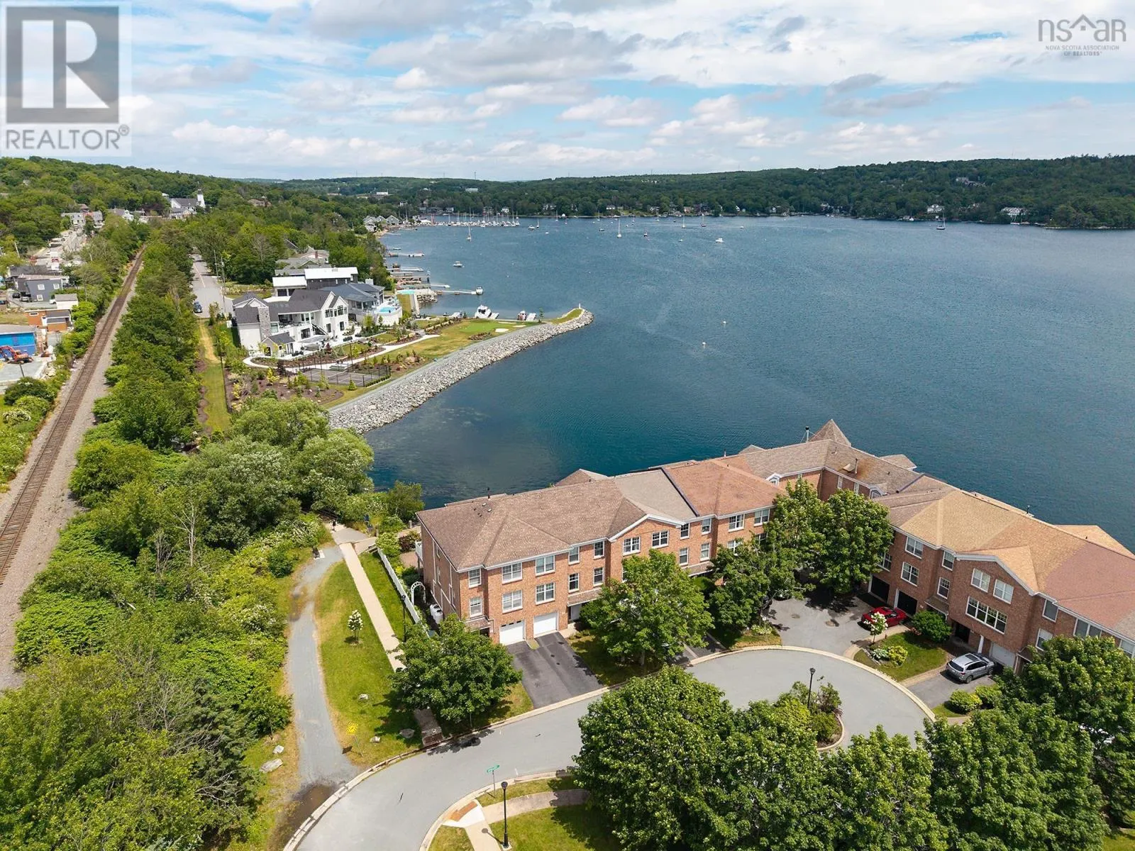 Bedford Highway to Convoy Run to Waterfront Drive to Arthur Lismer Court Every season is wonderful on the Bedford waterfront. This three-level brick townhouse sits just 40 feet from the water, offering unobstructed Bedford Basin views, no condo fees, and walkable access to DeWolf Park and local amenities. This oceanfront home provides a rare coastal escape that blends seaside tranquillity with city convenience. Upgrades include a renovated deck with glass railings, hardwood floors in the living room and primary bedroom, dual heat pumps, new windows, front door, garage door, and a new water heater. The home features 3 bedrooms and 4 baths, including a spacious primary suite with remarkable ocean views and a renovated ensuite. The lower level is larger than most and offers incredible flexibility, with a half bath, a large bright window, ample closet space, and room to add a shower, its ideal for a potential in-law suite, guest retreat, or home office. The gentle stillness of winter along the Bedford waterfront makes this townhome an ideal place for quiet comfort and time shared with family and friends. (id:27476)