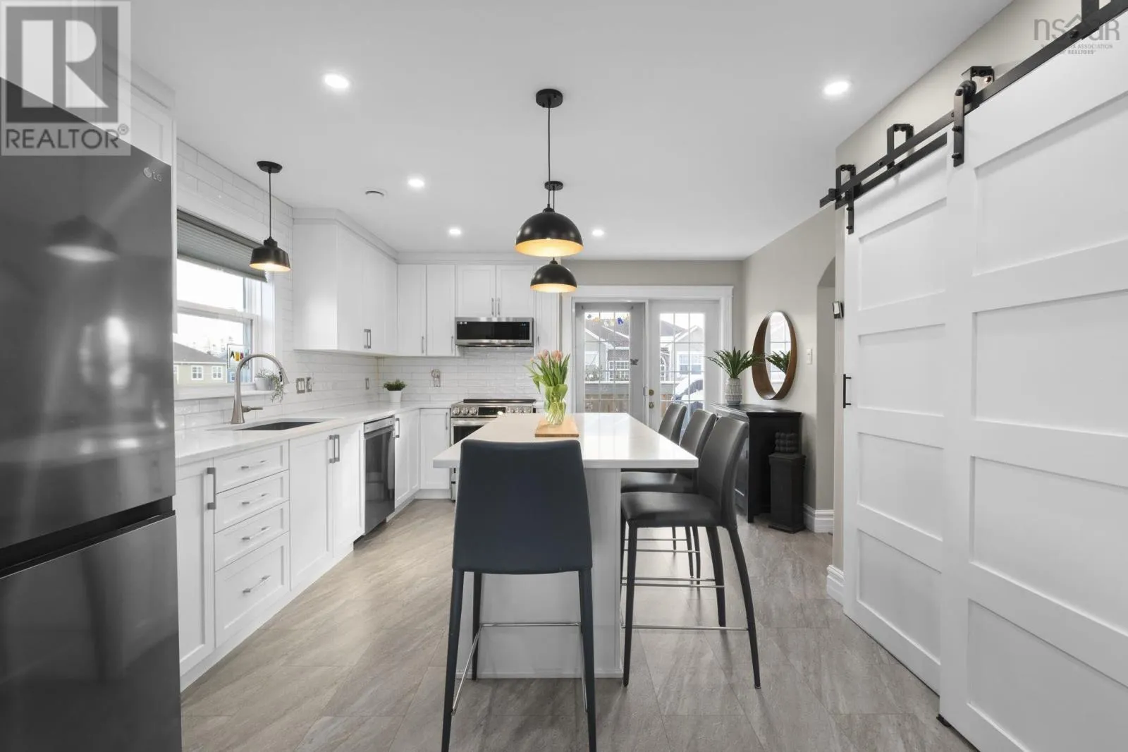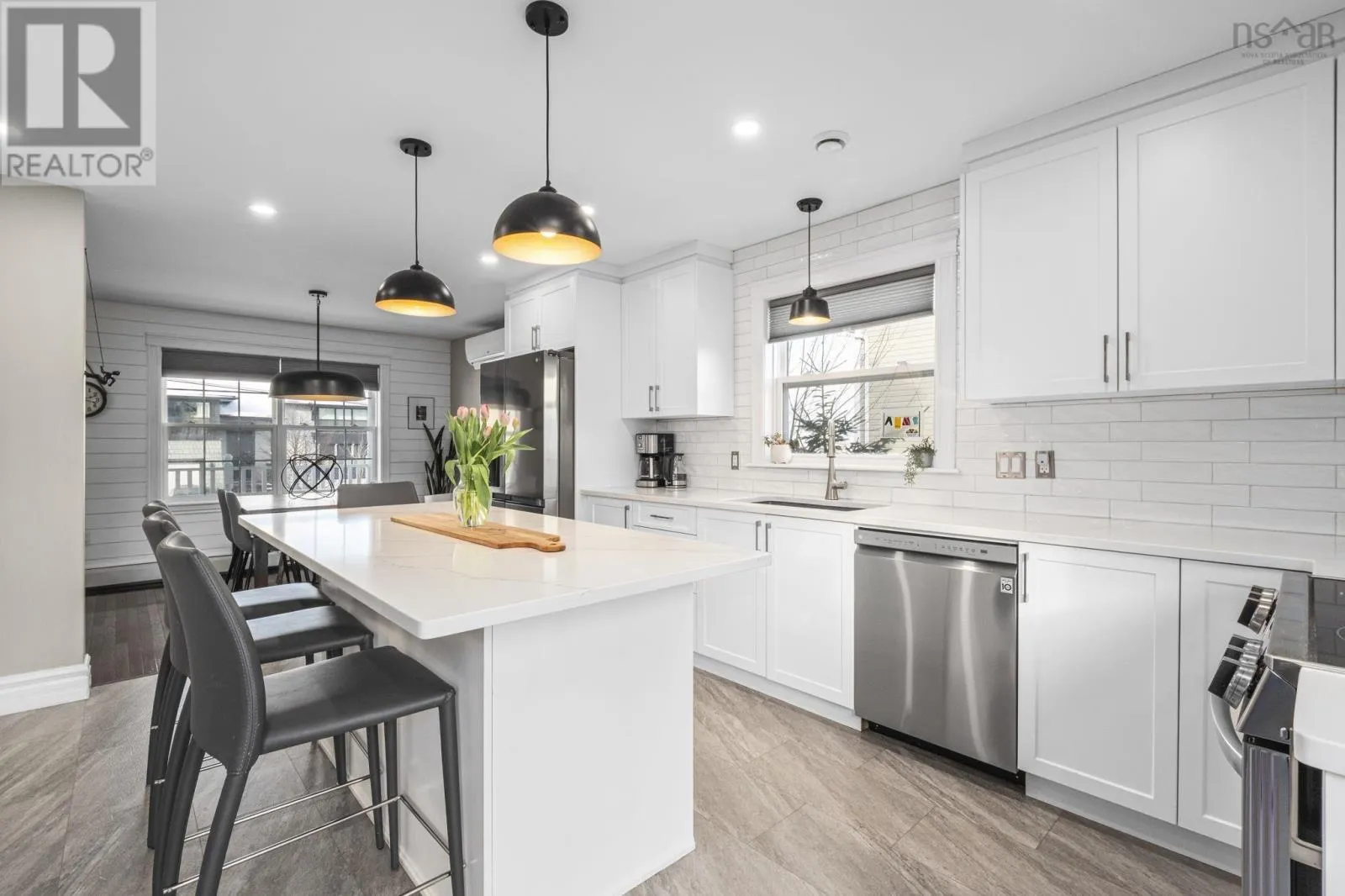 Hammonds Plains Rd to Basinview Dr. Welcome to this bright and spacious 4-bedroom, 4-bath home offering 2,827 sq. ft. in a family-friendly neighbourhood just up the street from Basinview Drive School. Enjoy all-day sun in the south-facing backyard, complete with a lush summer hedge, trees, and an extended 4-car paved driveway (2023). Inside, an inviting foyer leads to a main floor office with built-in storage, a large yet cozy living room, and an eat-in renovated kitchen with quartz countertops and new LG appliances (2023). A powder room completes this level. The lower level offers a refreshed rec room with vinyl plank flooring (2024), a large bedroom, a full bath (2023), a walkout to the lower patio, and an additional storage room. Upstairs, the spacious primary bedroom includes a beautifully updated ensuite (2023), along with two generous bedrooms, a bright laundry room, and an updated kids bath. Additional highlights include a 23' x 16' composite deck (2020), a ductless Fujitsu 12,000 BTU heat pump (2020), and added pot lights in the kitchen and rec room (2023). The sellers are sad to leave their wonderful neighbours and community and know the next family will feel right at home! (id:27476)