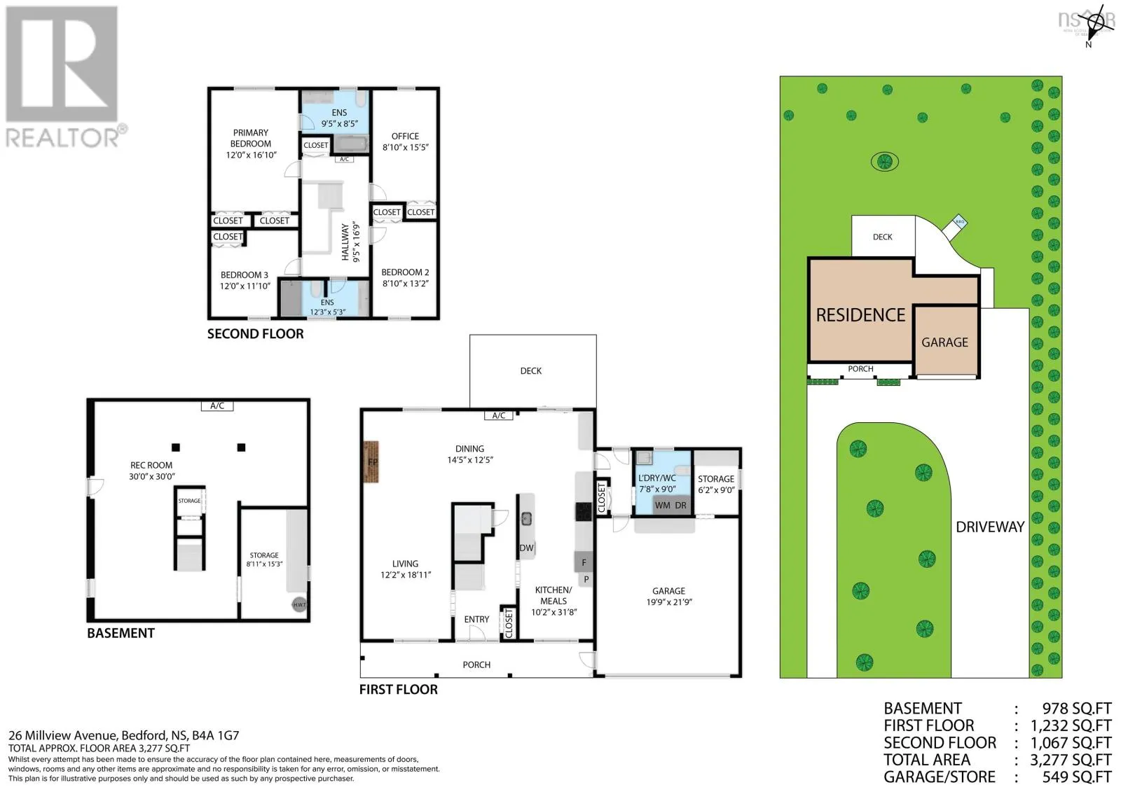 Bedford Highway to Millview Avenue Welcome home to 26 Millview Avenue, located in the heart of Bedford! This well maintained four bedroom, three bath two story home with a double garage will impress you from the moment you arrive. With a U shaped driveway on a large private lot, the property is close to shopping, main highways, and walking distance to nature trails and a beach! The stunning kitchen has granite countertops and access to a deck and the large back yard. The main floor also features a large family room with fireplace, dining area, laundry room and a two piece bathroom. The second level contains four bedrooms, including the Primary bedroom that contains a five piece ensuite. This level also has a large second bathroom. The basement is totally finished and offers very flexible space with its openness. This home has over 3000 square feet of living space. Upgrades in recent years include new roofing shingles, hot water tank and a window and some doors in 2021, and since 2024, the basement was insulated, the kitchen significantly upgraded, new appliances, a new heat pump installed, some new windows, total bathroom renovations, new gleaming flooring, refreshed paint throughout, new stairs and additional basement renovations. To appreciate the upgrades, please book a showing to view this incredible gem of a property. (id:27476)
