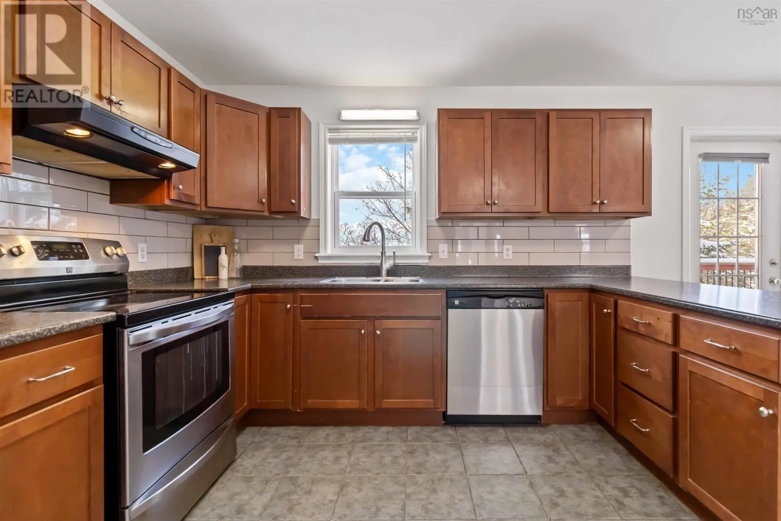 Bedford Hwy to Moirs Mill to Torrington to Binnacle Proudly offered by the original owner, this bright and spacious home offers approximately 2,598 sq. ft. of well-designed living space, ideal for growing families, multi-generational living, or future income potential. A versatile, light-filled home with space, comfort, and located on a quiet cul-de-sac with parking for multiple cars. The main floor features generously sized rooms, including a large living room with a custom built-in oak wall unit and a convenient half bath. The kitchen is open-concept to an extra-large dining area, perfect for hosting family gatherings and celebrations, and includes an extra-large pantry for added storage. Patio door lead to a private backyard and deck, creating a seamless indoor-outdoor flow. A bonus 5' x 9'6" room offers flexible use as a prayer room, quiet office, or additional storage. The home is filled with natural light throughout and features mostly new lighting. Upstairs, youll find three spacious bedrooms, including a generous primary suite with two walk-in closetsone exceptionally large. The updated 5-piece ensuite includes a stand-up shower. The other two bedrooms are accompanied by a large main bathroom and updated mirrors. The lower level provides excellent potential for an in-law suite or rental unit (with minor adjustments). This level includes a full bathroom, laundry area, bedroom, movie room or living space, bar area, and separate, offering both privacy and convenience. Located in a highly desirable family community popular with professionals, this home offers easy access to Halifax, excellent schools, modern amenities, and a beautiful lifestyle with nearby lakes, walking paths, waterfronts, and parks. Some flooring was intentionally not replaced, allowing buyers the opportunity to personalize the space to their taste. (id:27476)
