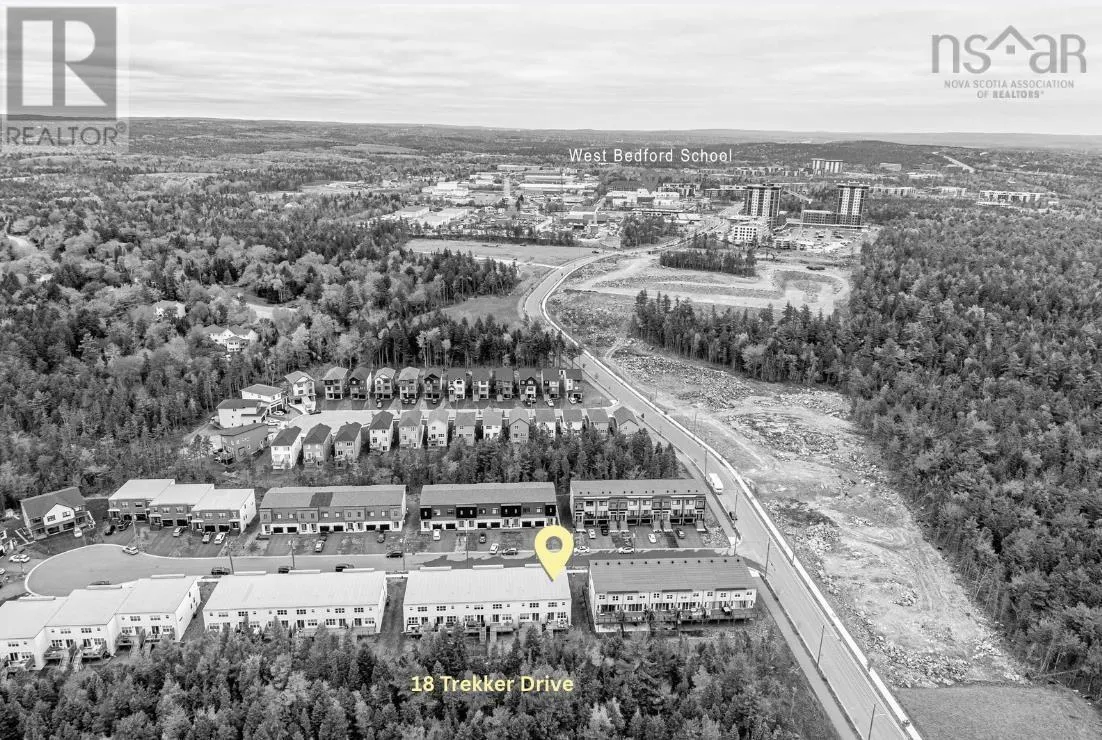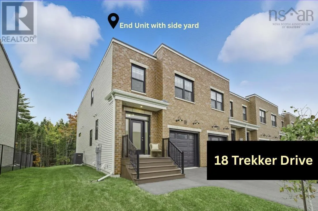 Brookline Park subdivision located off Larry Uteck Blvd in West Bedford. Brookline Drive to sub area 8 Trekker Drive Welcome to 18 Trekker Drive, Brookline Park in The Parks of West Bedford! This 1 year old, immaculate new construction END-UNIT townhome is move-in ready and is located minutes from excellent schools, 4pad arena, coffee shops and your favourite West Bedford amenities. This home includes high end finishes from top to bottom and is covered for almost 4 more years by Rooftights Whole Home Warranty Program. Some of its best features include: engineered hardwood flooring, full front brick exterior, high end stainless steel appliances, white quartz countertops, walk-in pantry, composite front deck, statement lighting, large windows for lots of natural light (even more due to end unit and sun orientation), fully ducted heat pump system for heating and cooling. This home has an open-concept main floor. Upstairs, youll find 3 bedrooms, including the private primary bedroom, with 2 large walk-in closets and a spa-like ensuite! A second full bathroom and laundry room are also conveniently located down the hall. The lower level offers a large rec room, a full bathroom. This home can easily have an extra room framed in on the lower level. Endless potential with this end unit. Located on a cul-de-sac, with a very peaceful, treed backyard - you will love outdoor dining on the back deck with beautiful sunsets in the evenings! (id:27476)
