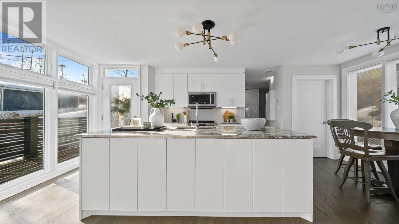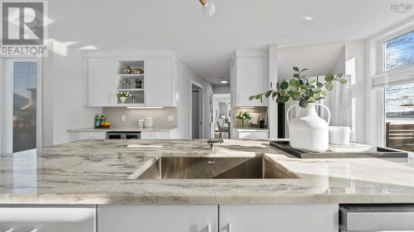 Bedford Highway, on to Shore Drive then Shipyard Road. Perched above the shores of the Bedford Basin, 15 Shipyard Road is a striking architecturally designed residence that captures the beauty of its waterfront surroundings from every level. Designed and constructed as an R2000 home by renowned architect Noel Fowler, this exceptional property blends thoughtful design, natural light, and sweeping water views into a truly memorable living experience. Expansive floor-to-ceiling windows frame panoramic views of the Bedford Basin and Halifax Harbour, allowing natural light to pour through the home throughout the day. From sunrise reflections on the water to the evening glow over the harbour, the scenery becomes an ever-changing backdrop enjoyed from all three levels. The home has undergone an extensive transformation inside and out, resulting in a beautifully refined interior with modern finishes, updated systems, and a cohesive design throughout. The main living spaces offer an open, elegant flow, complemented by contemporary kitchens, stone surfaces, custom cabinetry, and carefully selected fixtures. Positioned on a large treed corner lot backing onto Shore Drive, the property offers both privacy and presence. Outdoor spaces have been thoughtfully designed to embrace the landscape and maximize the remarkable water views. A fully self-contained in-law suite on the main level offers flexibility for extended family, guests, or multi-generational living, complete with private entrances, kitchen, living space, and patio. Located in the heart of Bedford, one of Nova Scotias most sought-after communities, the home is moments from the Bedford Yacht Club, DeWolf Park, and the scenic Bedford waterfront walking trail. Everyday amenities, parks, and top schools are close by, while downtown Halifax and Halifax Stanfield International Airport are both within an easy 20-minute drive. A list of available upgrades and features is available. (id:27476)
