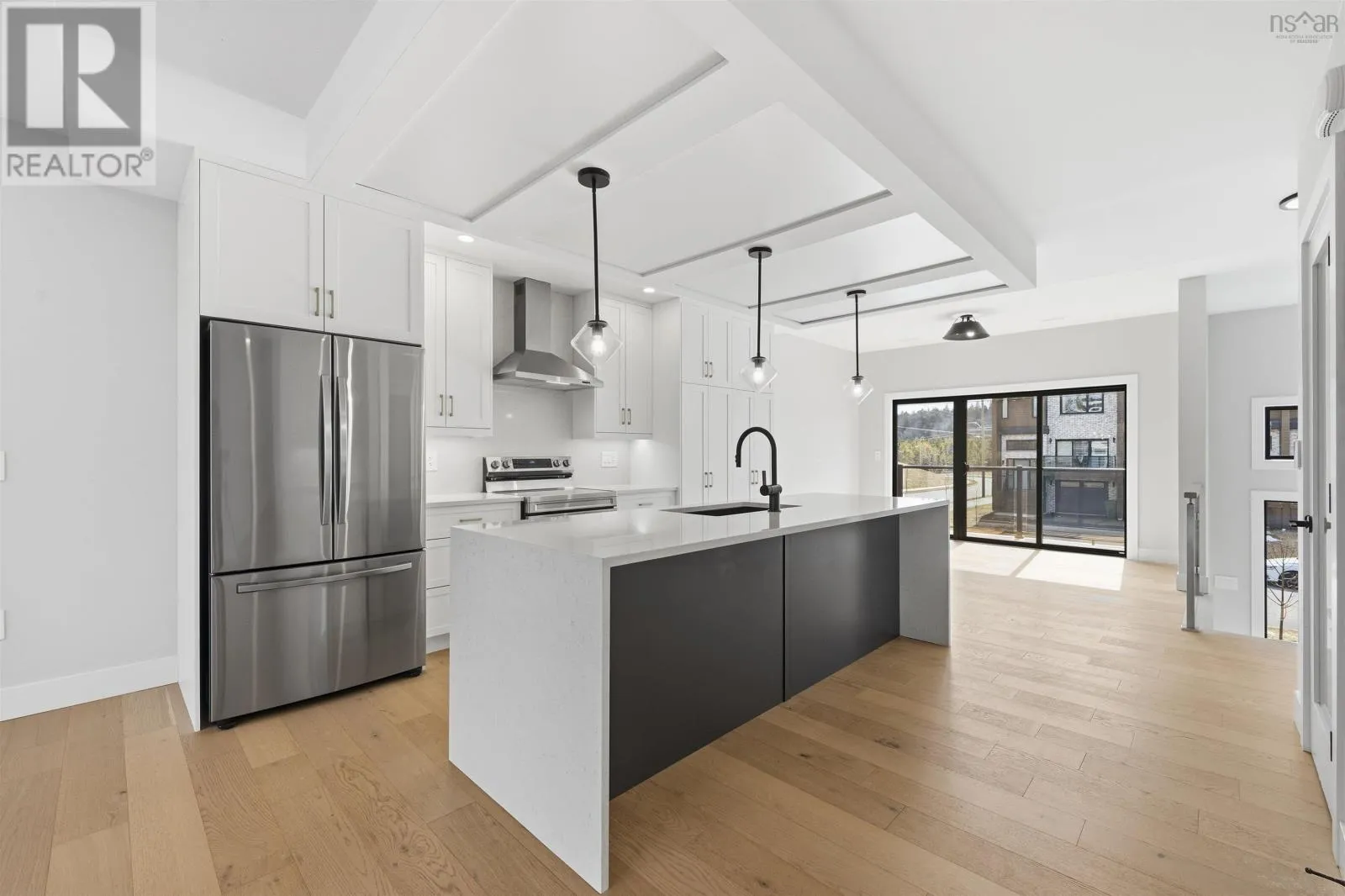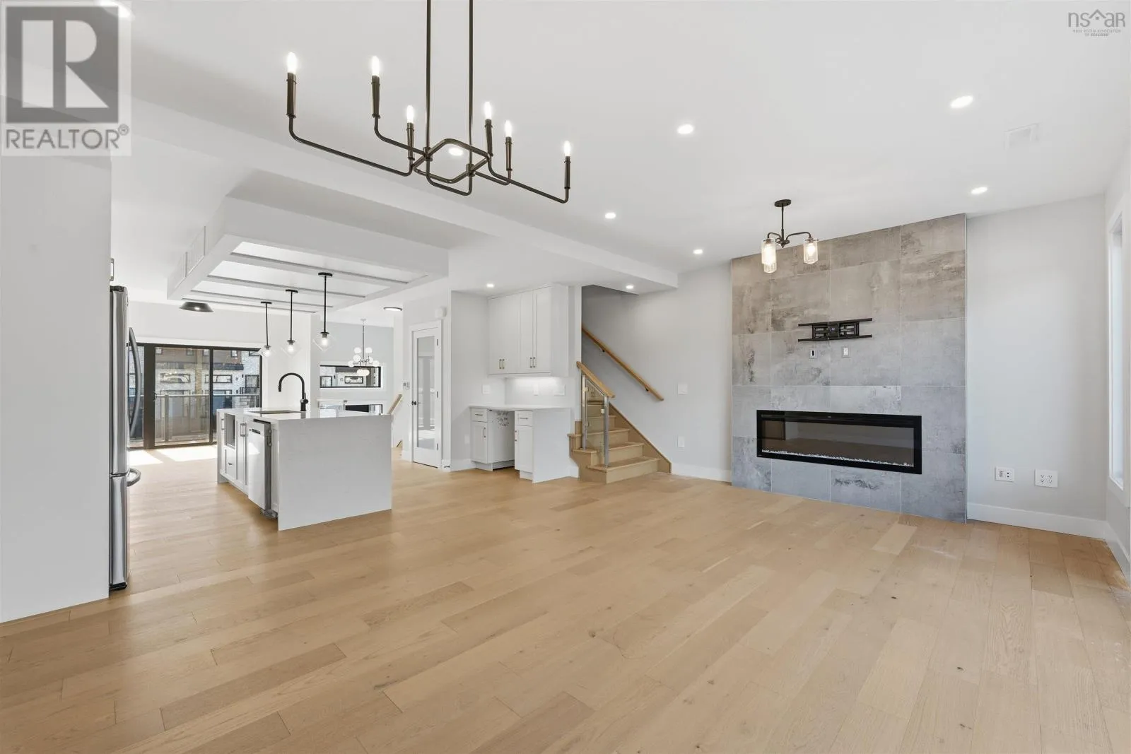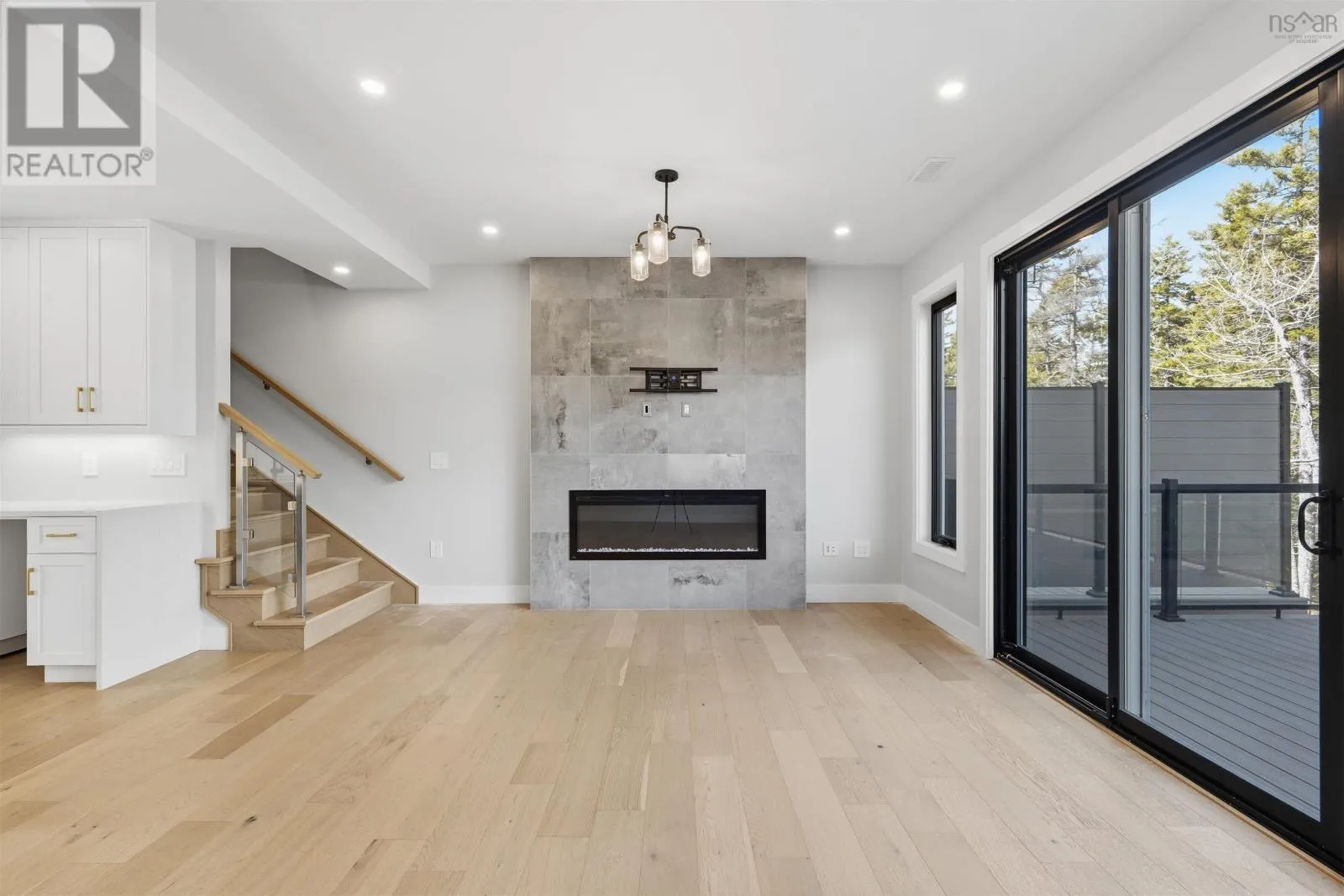 Larry Uteck Blvd to Brookline to Trekker Welcome to this beautifully designed townhouse in the highly sought-after community of Bedfordwhere modern living meets comfort, style, and convenience. This stunning 4-year-old home offers 3 spacious bedrooms and 3.5 bathrooms, thoughtfully laid out to suit both everyday living and entertaining. From the moment you step inside, youre greeted by elegant engineered hardwood floors, high-end finishes, and an abundance of natural light throughout. The heart of the home is the open-concept main level, featuring a sleek kitchen with Cortez countertops and a waterfall islandperfect for hosting or enjoying family meals. The space flows seamlessly into the living area, highlighted by a cozy electric fireplace and double sliding doors that lead to your private back deck, creating a perfect indoor-outdoor lifestyle. Enjoy not just onebut two outdoor spaces, with a front deck for morning coffee and a rear deck ideal for relaxing or entertaining. Upstairs, the primary bedroom is a true retreat, complete with a custom-designed shower in the ensuite that adds a luxurious touch to your daily routine. The fully finished walkout basement offers even more living space, featuring its own double sliding doorsideal for a recreation room, home office, or guest area. Comfort is top-notch year-round with a ducted heat pump system with 3 zones, ensuring efficient climate control throughout the home. Located in a family-friendly, growing area, Bedford offers excellent schools, parks, shopping, and easy access to highwaysmaking it one of the most desirable places to live in the Halifax region. (id:27476)