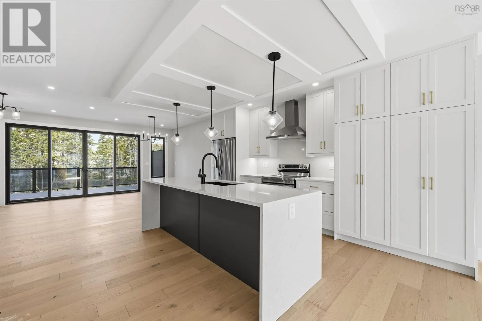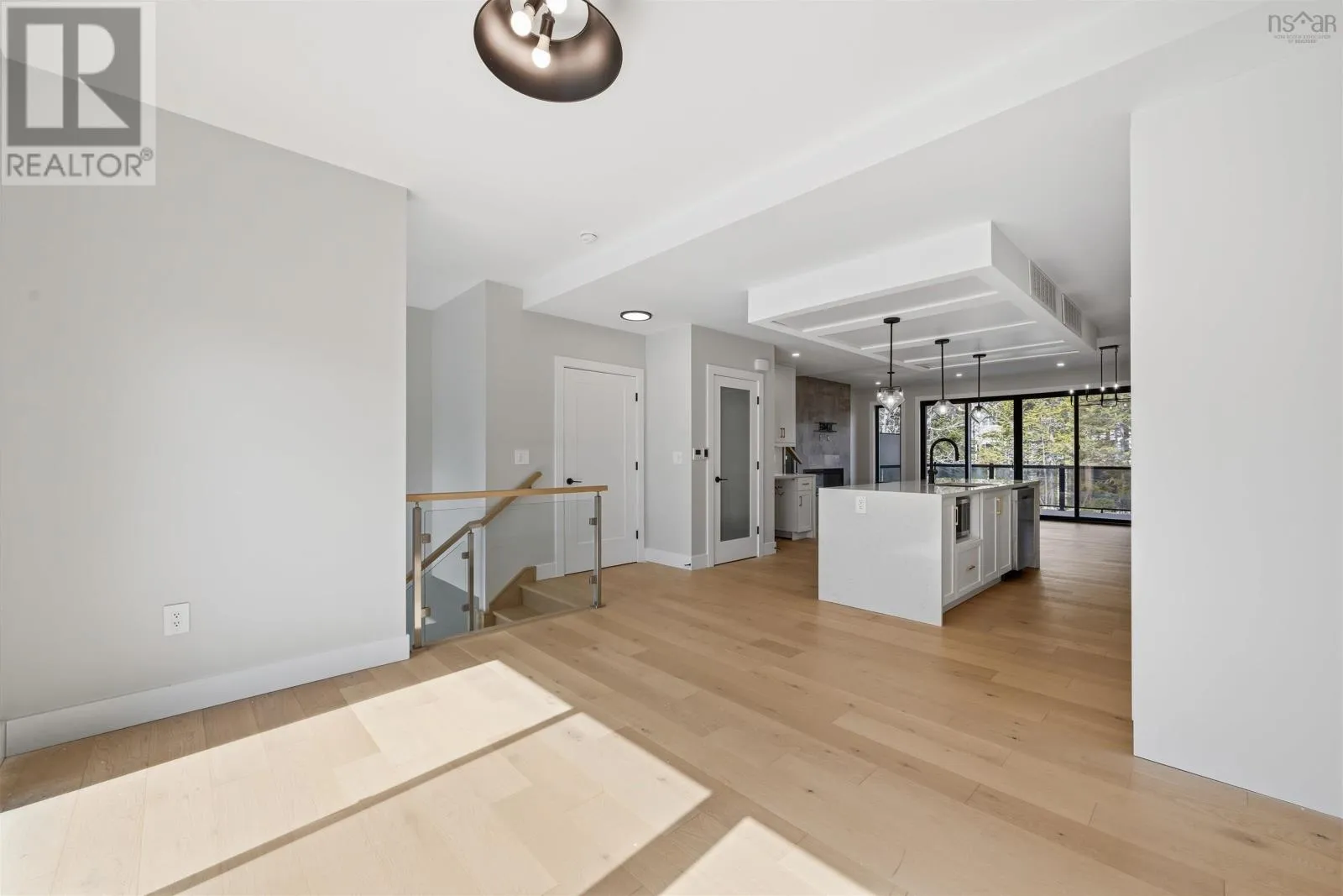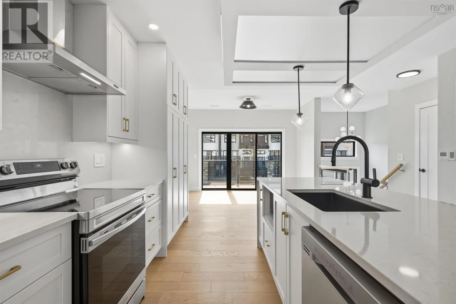 Larry Uteck Blvd to Brookline to Trekker Welcome to this beautifully designed townhouse in the highly sought-after community of Bedfordwhere modern living meets comfort, style, and convenience. This stunning 4-year-old home offers 3 spacious bedrooms and 3.5 bathrooms, thoughtfully laid out to suit both everyday living and entertaining. From the moment you step inside, youre greeted by elegant engineered hardwood floors, high-end finishes, and an abundance of natural light throughout. The heart of the home is the open-concept main level, featuring a sleek kitchen with Cortez countertops and a waterfall islandperfect for hosting or enjoying family meals. The space flows seamlessly into the living area, highlighted by a cozy electric fireplace and double sliding doors that lead to your private back deck, creating a perfect indoor-outdoor lifestyle. Enjoy not just onebut two outdoor spaces, with a front deck for morning coffee and a rear deck ideal for relaxing or entertaining. Upstairs, the primary bedroom is a true retreat, complete with a custom-designed shower in the ensuite that adds a luxurious touch to your daily routine. The fully finished walkout basement offers even more living space, featuring its own double sliding doorsideal for a recreation room, home office, or guest area. Comfort is top-notch year-round with a ducted heat pump system with 3 zones, ensuring efficient climate control throughout the home. Located in a family-friendly, growing area, Bedford offers excellent schools, parks, shopping, and easy access to highwaysmaking it one of the most desirable places to live in the Halifax region. (id:27476)