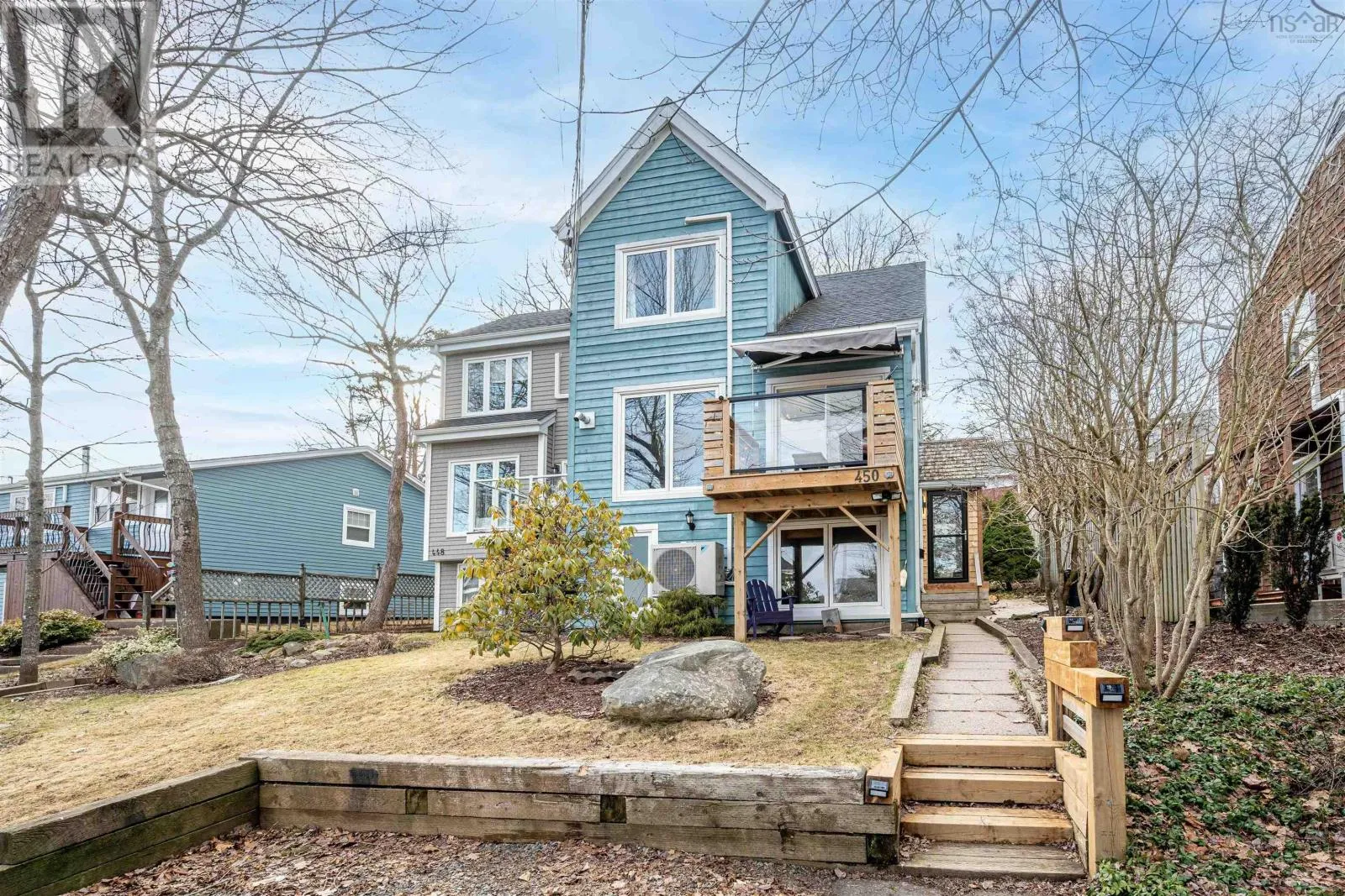 Bedford Highway to Hatchery Lane to Shore Drive. Welcome to 450 Shore Drive. This beautifully updated semi-detached home on the well sought-after Shore Drive neighbourhood offers three spacious bedrooms with the potential for a fourth, and two full bathrooms, this home is perfect for growing families or those seeking flexible living space. Completely modernized and carpet-free throughout, every detail has been thoughtfully upgraded to provide a fresh, contemporary feel. The bright and airy layout is filled with natural sunlight, creating a warm and inviting atmosphere in every room. Enjoy stunning views of the Bedford Basin, adding a peaceful coastal charm to your everyday living. Step outside to your own private backyard retreat, surrounded by mature trees and designed for relaxation. With its prime location, stylish finishes, and move-in-ready condition, this home is a rare find in one of Bedfords most desirable areas. (id:27476)