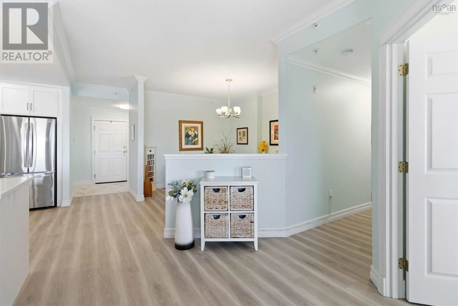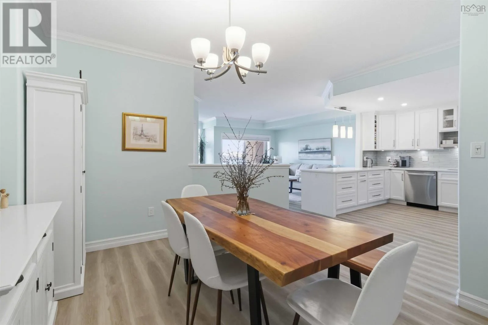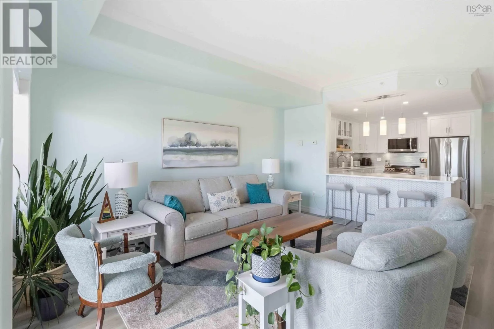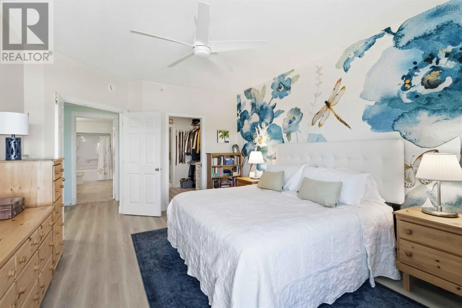 Bedford Hwy to Nelsons Landing Blvd. Welcome to 308-50 Nelsons Landing Blvd - a one-of-a-kind condo in the heart of Bedford, where thoughtful design, high-end finishes, and stunning views come together in a way that's hard to find. Renovated in 2023, this unit has been transformed into a bright, open-concept space that feels both modern and inviting from the moment you walk in. At the center of the unit is a beautifully crafted custom kitchen, built with wood framing and finished with elegant Corian countertops. It's a space that blends style and function effortlessly, opening into the main living area to create a seamless flow that's perfect for both everyday living and entertaining. New flooring runs throughout the unit, tying everything together with a fresh, cohesive feel. The primary bedroom features a custom-designed mural wall that adds character and warmth, along with a spacious walk-in closet. The ensuite bath has been upgraded, complete with a tiled walk-in shower and a generous soaker tub - ideal for unwinding at the end of the day. You'll enjoy the in-unit laundry room and separate dining area for more formal meals. Beyond the interior, this condo continues to impress with features that make daily life easy and comfortable. The deck/patio was refinished just last fall, offering a refreshed outdoor space to relax and take in the incredible views of the Bedford Basin, plus a generous storage room conveniently located next to the underground parking space. Residents enjoy access to a community room, gym, library, workshop, and even a car wash bay. There's an active social committee that organizes events, making it easy to feel part of a welcoming community. For visiting friends and family, a guest suite is also available within the building. With its extensive upgrades, unique design elements, and breathtaking water views, this condo offers a rare opportunity to own something truly special in Bedford. It's not just a place to live - it's a place to enjoy, relax, and feel at home. (id:27476)