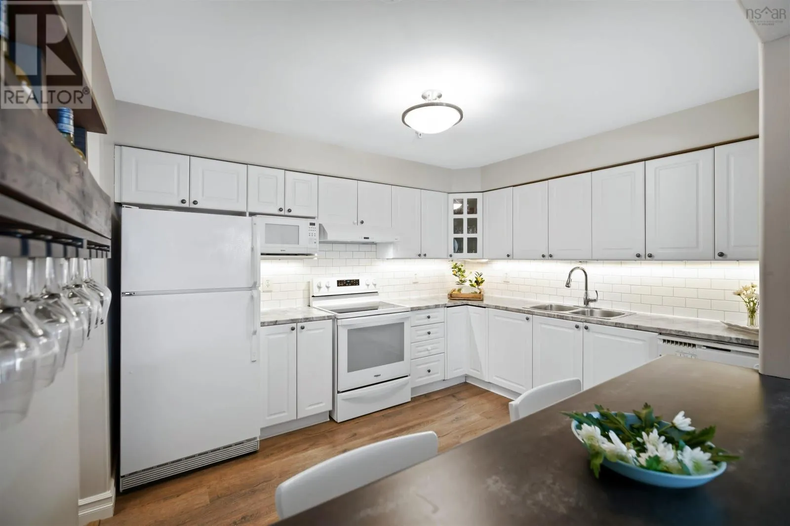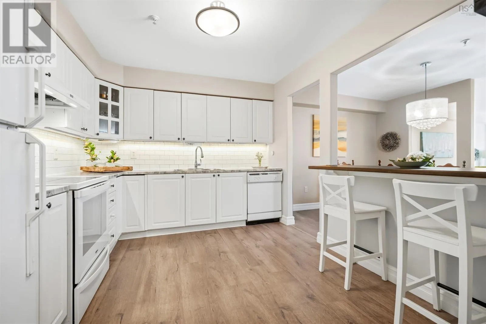 Hammonds Plains to Lake Dr. Beautifully updated 2-bedroom, 2-bath condo now available in sought-after Casa Bonavista at 2 Lake Drive in Bedford! Unit 310 offers a bright, open layout with newer vinyl plank flooring and a well-appointed eat-in kitchen that flows into spacious living and dining areas, ideal for entertaining or relaxing. Both bedrooms are generously sized with ample closet space, and the primary bedroom includes a full ensuite bath. The main bathroom is also a full 4-piece and features a convenient stackable washer and dryer. Additional highlights include a large storage pantry and an open foyer. The balcony, located at the back of the building, faces the lake and provides a peaceful outdoor retreat with seasonal views. Enjoy the convenience of underground parking, additional storage, and access to building amenities including a gym, library, and meeting room, all within a well-managed setting. Close to amenities, with easy access to Highway 102 and just a short walk to Paper Mill Lake and nearby trails, this move-in-ready condo offers comfort and convenience. Book your viewing today and see what makes this home so special! (id:27476)