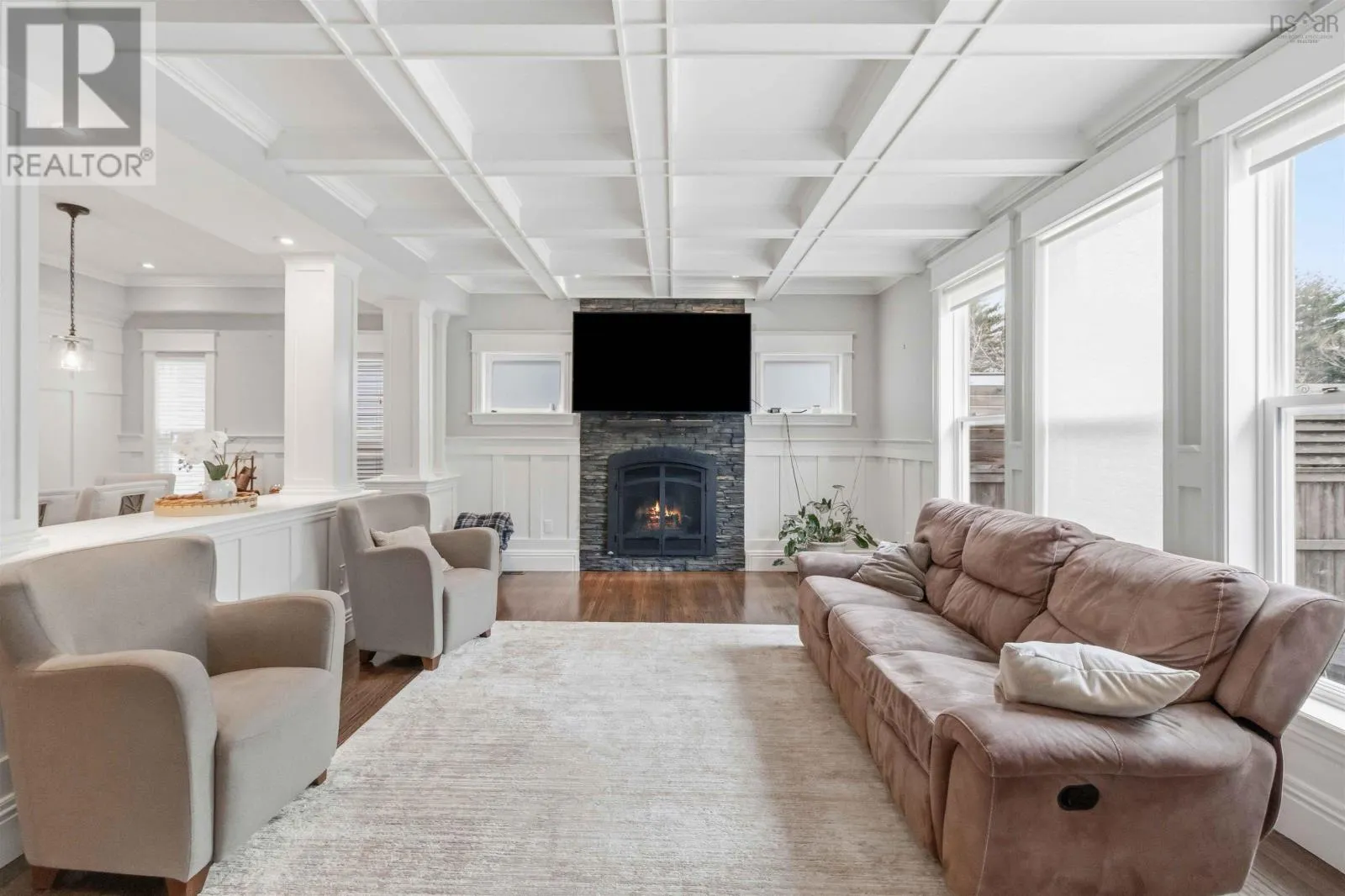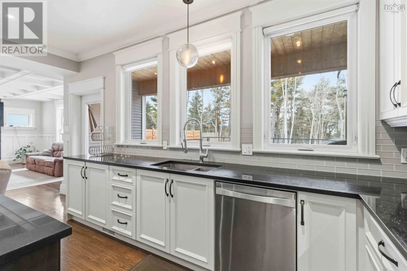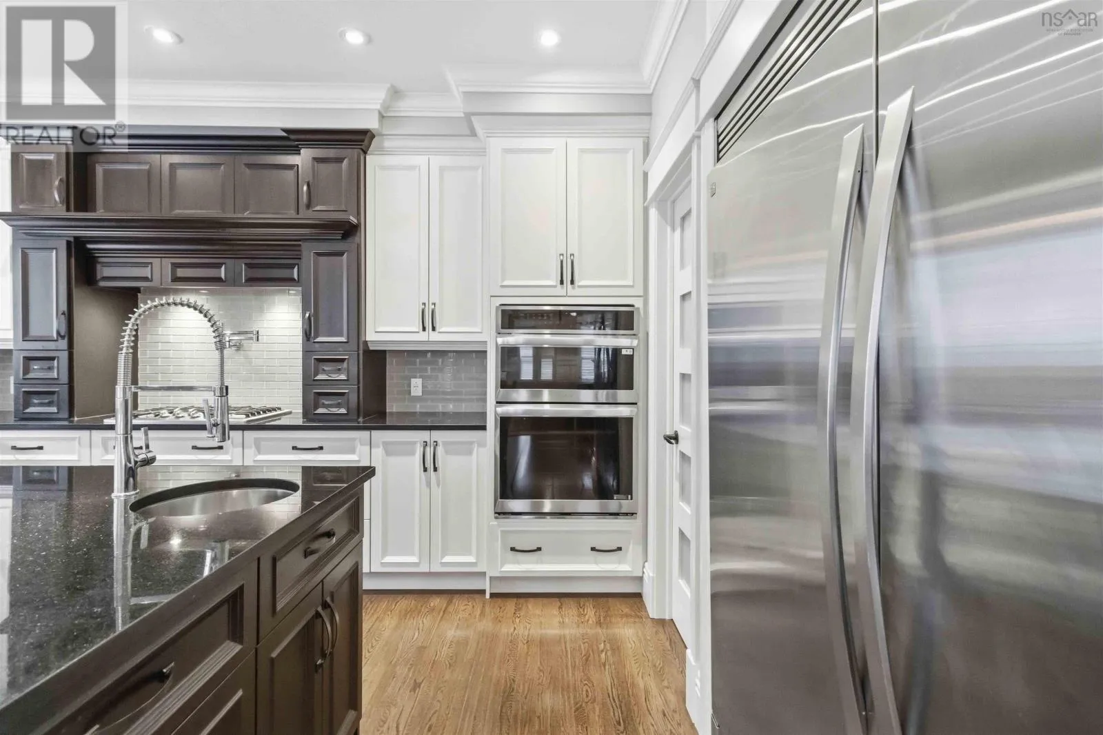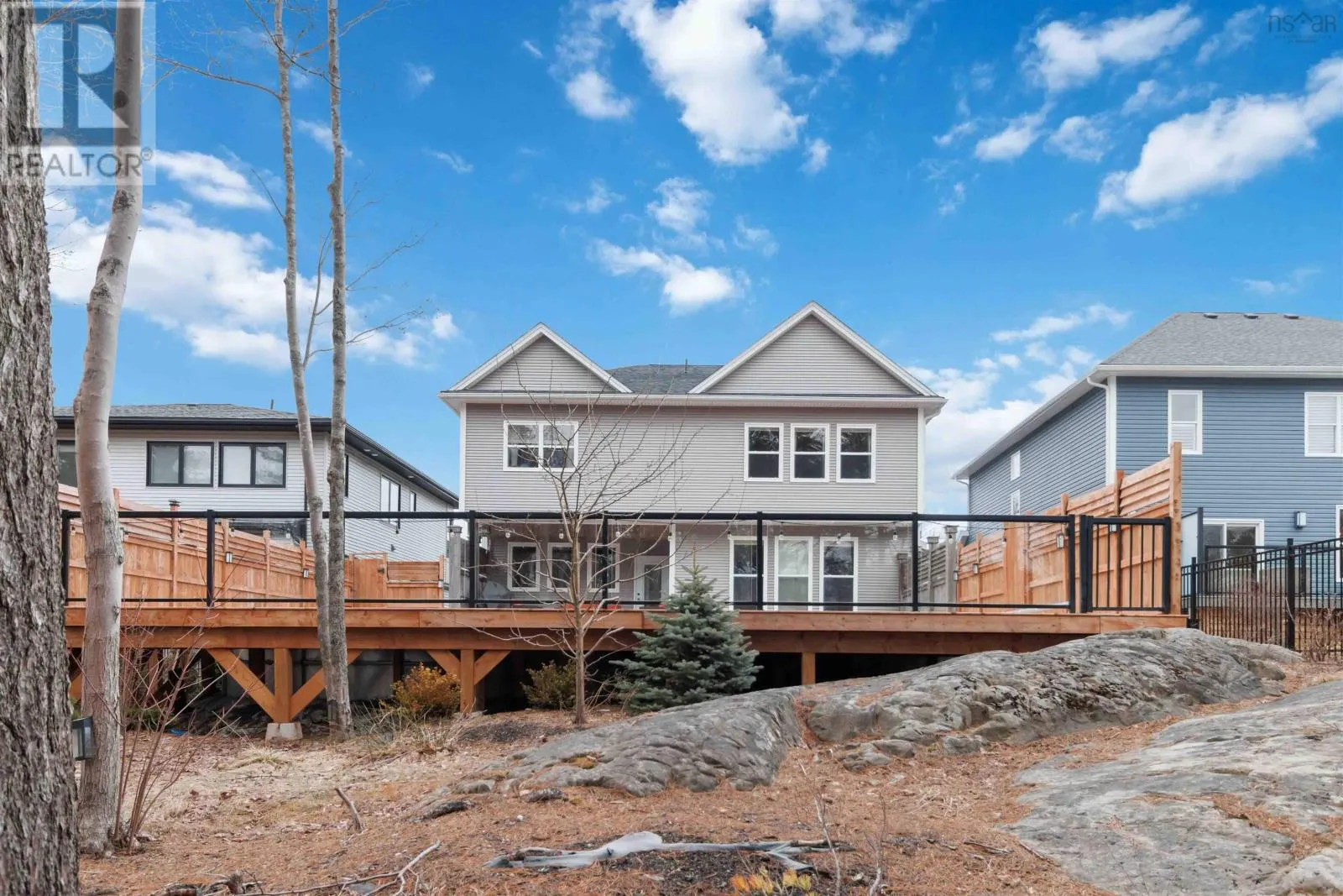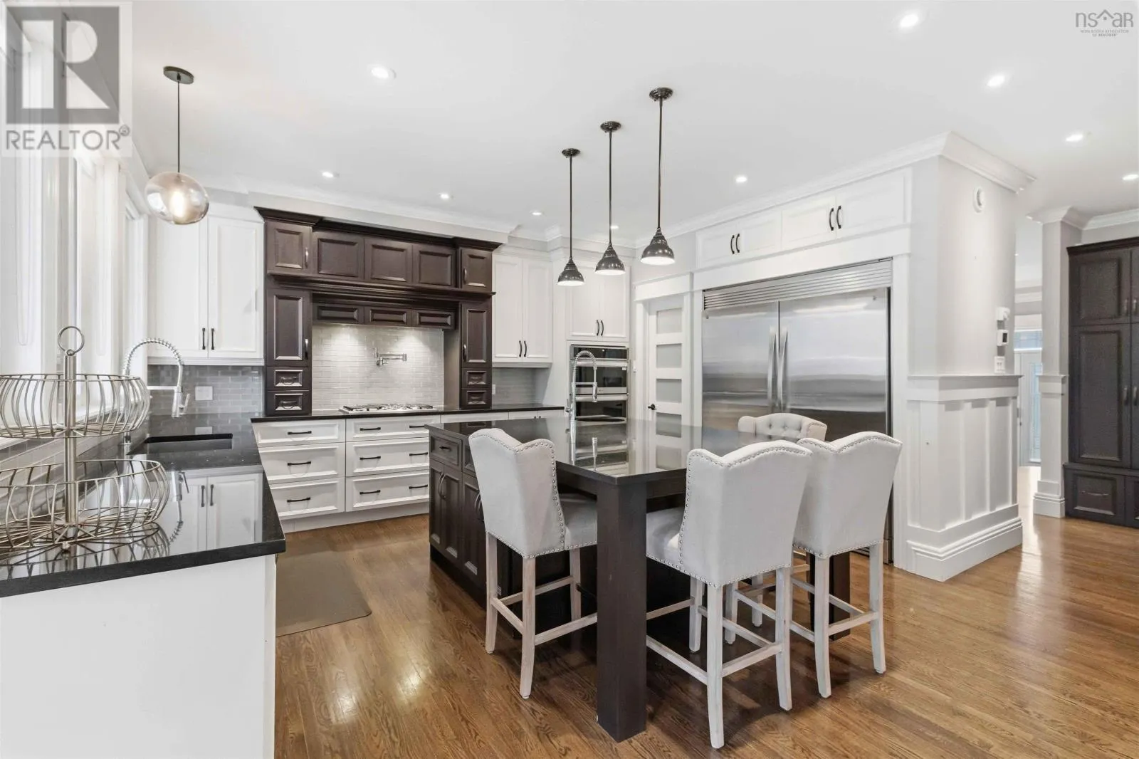 Larry Uteck to Amesbury Gate Located in the sought-after Waterbury Park community of West Bedford, this thoughtfully designed home offers the perfect blend of style, space, and functionality. The main level features a bright, open layout centred around a chef-inspired kitchen with full-size fridge and freezer, gas cooktop, wall oven, microwave, prep sink, pot filler, and walk-in pantry. The spacious dining area is ideal for hosting, while the living room offers a warm, inviting space to gather. A well-designed entryway with custom storage and built-in lockers keeps everyday life organized. Upstairs, the primary suite is a true retreat with vaulted ceilings, statement beams, two walk-in closets (including direct access to the laundry room), and a spa-like ensuite with soaker tub and separate shower. Two additional bedrooms each feature walk-in closets and private 2-piece ensuites, plus a flexible office or optional fifth bedroom. The fully finished lower level includes a separate side entrance, full kitchen, living area, two bedrooms, full bath, and its own laundryideal for extended family or potential rental income. Step outside to a private backyard designed for summer living, complete with a covered deck, large sun deck, above-ground pool, hot tub, and fenced area for kids or pets. Enjoy direct access to a quiet section of Kearney Lake just behind the property. Additional highlights include natural gas service, a double garage with 14 ceilings, and quick access to Highway 102. (id:27476)