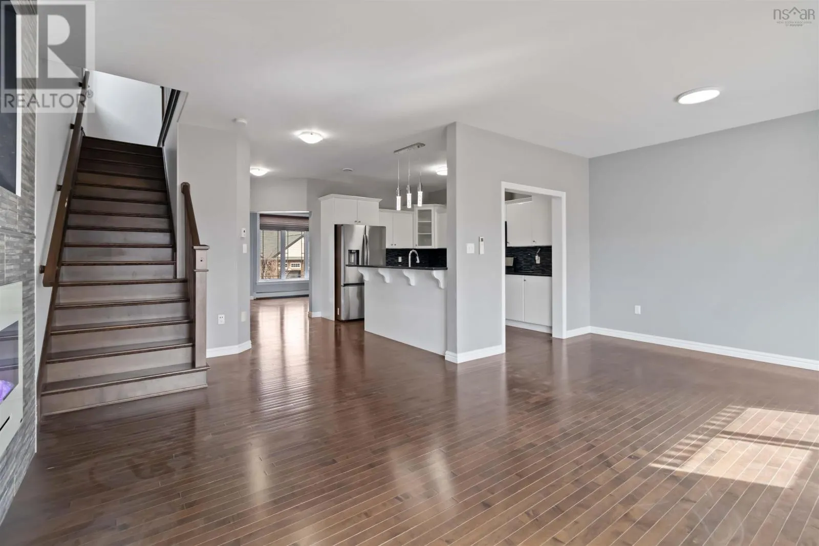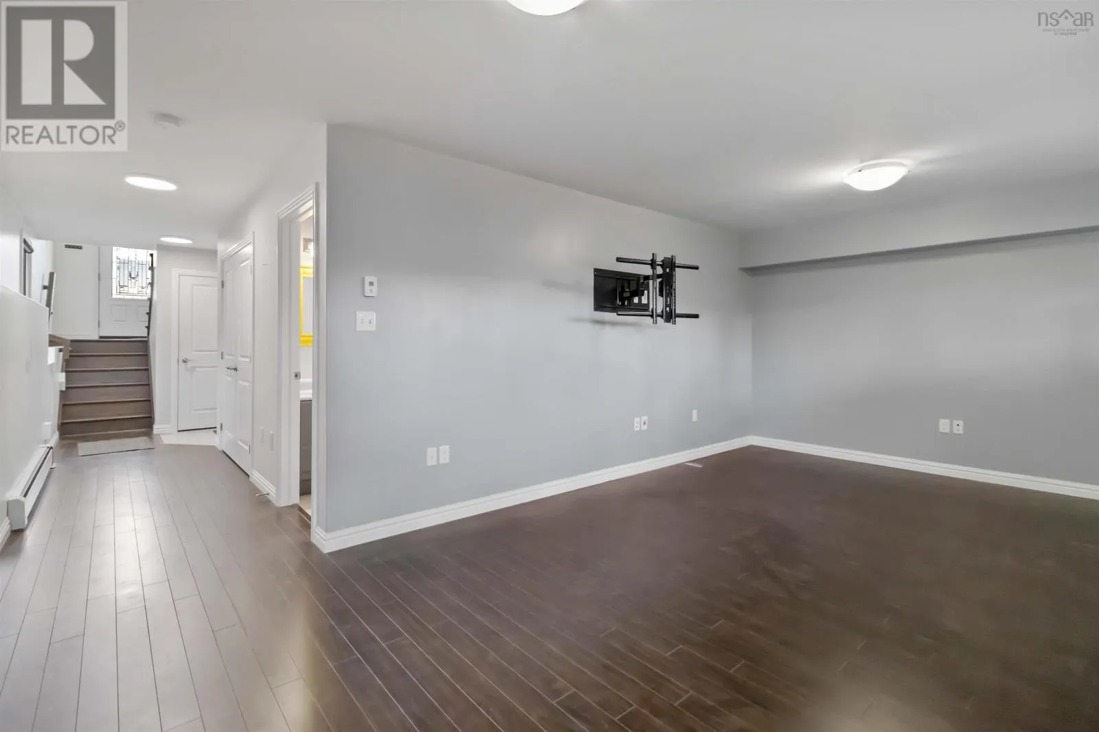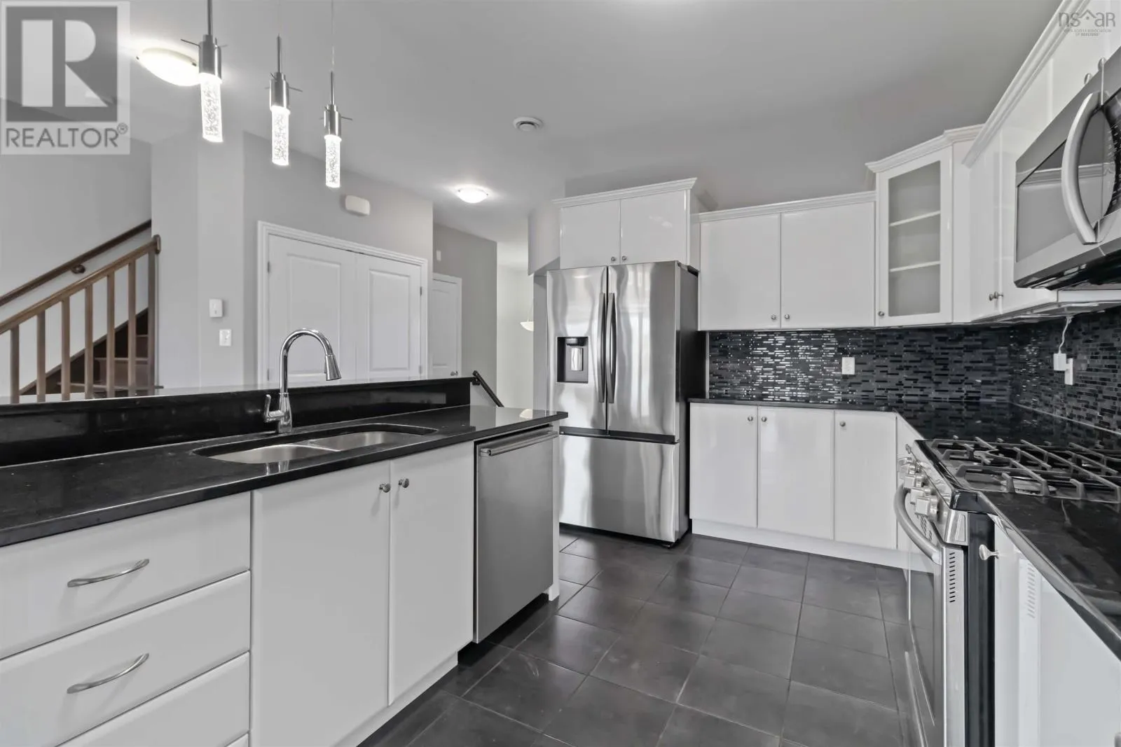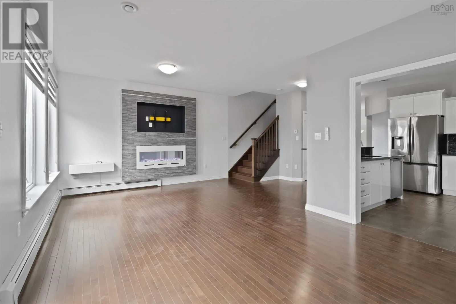 Larry Uteck Blvd to Nine Mile Drive to Armenia Drive Located in the sought-after Bedford South community, this beautifully maintained end-unit townhome in the Ravines of Bedford South offers over 2,200 sq ft of bright, functional living space across three fully finished levelsperfectly blending modern style, comfort, and convenience. Inside, discover a thoughtfully designed interior featuring hardwood flooring on main and upper level and modern upgraded lighting that enhances the homes warm and inviting ambiance. The main floor boasts an open-concept layout designed for effortless living and entertaining. The spacious living area is highlighted by a custom TV panel with a sleek fireplace, creating a stylish focal point and the perfect space to relax. The contemporary kitchen features granite countertops, tile backsplash, and a natural gas range, while the adjacent dining area provides direct access to the rear deckideal for hosting guests or enjoying quiet evenings outdoors. Upstairs, the generous primary suite offers a walk-in closet and private ensuite, creating a comfortable retreat. Two additional well-sized bedrooms, a full bathroom, and convenient laundry complete this level, making daily living both practical and efficient. The fully finished lower level adds more versatility with a spacious rec room, a half bath, and flexible space ideal for a home office, gym, or guest area, along with ample storage and access to the built-in garage. Outside, the property continues to impress with a well-maintained back and side yard, providing additional outdoor space rarely found with townhomesperfect for relaxing, gardening, or family activities. With efficient natural gas heating, a heat pump for year-round comfort, and quality finishes throughout, this home is ideally located just minutes from all Bedford amenities, as well as parks, schools, and transitoffering an exceptional lifestyle in one of Bedfords most desirable neighborhoods. A perfect opportunity to own a stylish, move-in-ready home in Bedford (id:27476)