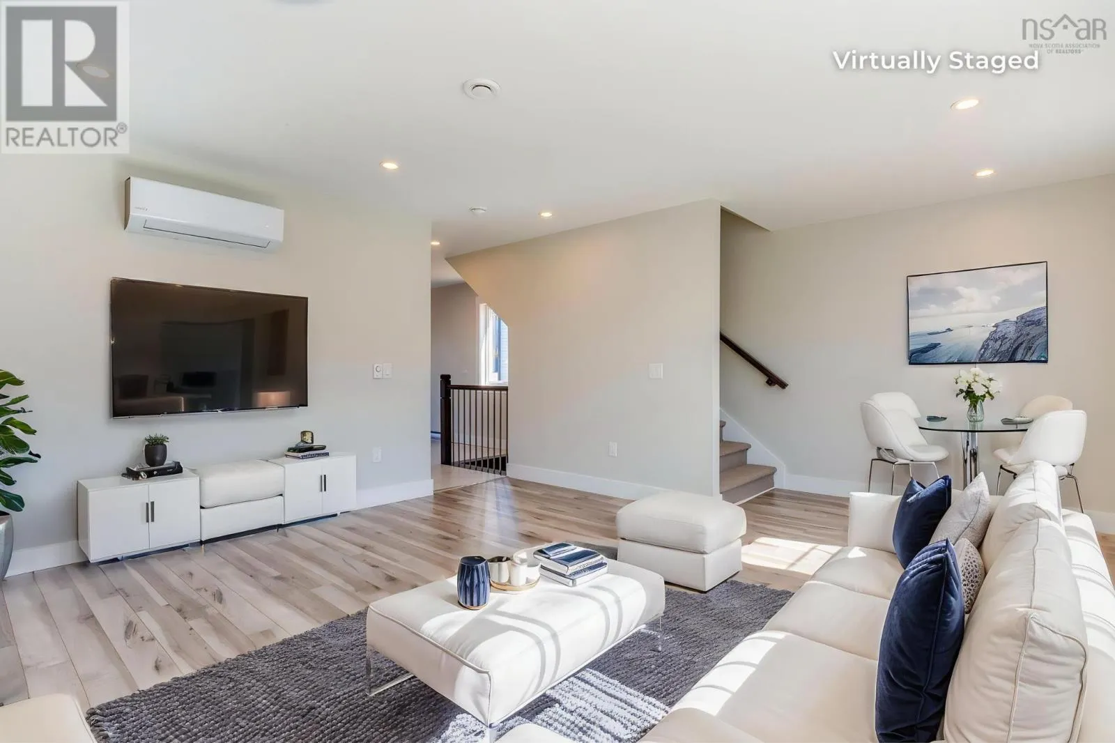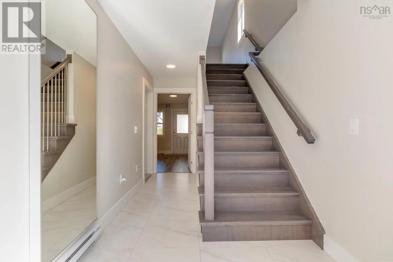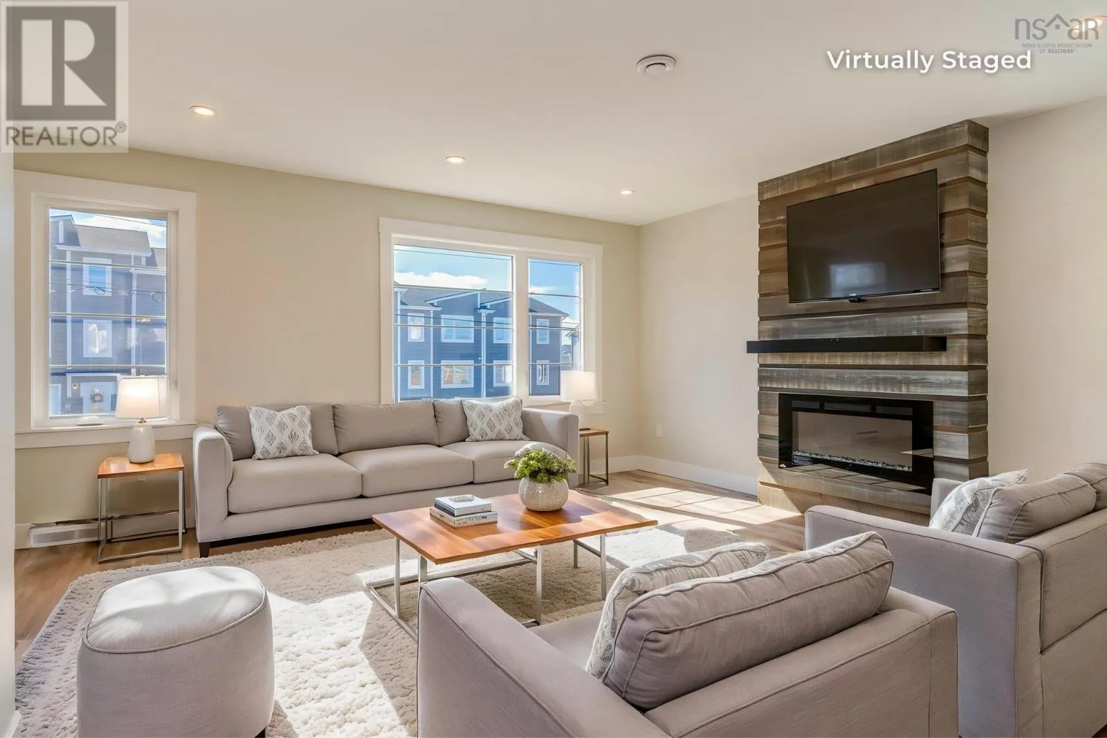 St. Margarets Bay Road to Higgins Drive to Grosse Street Welcome to 34 Grosse Street - a unique and distinctly modern and three-years-young executive townhome in the conveniently located and feverishly popular Lovett Lake Subdivision next to Bayer's Lake in Halifax. This exquisite 4-bedroom, 3.5 bathroom three-level floor plan offers a stylish and attractive main level with a street-facing living room with an electric fireplace and a backyard-facing kitchen/dining combo. With the sun entering the home from both front and back, entertain family and friends in your on-trend white kitchen with an abundance of cabinets, quartz counters, and stainless steel appliances, an enormous pantry, and a sit-up island. Lounge on your rear deck, right off the dining space, and perfect during BBQ season. Upstairs is home to a large primary bedroom with a walk-in closet, a stunning ensuite with a custom shower with a glass enclosure, and two more bedrooms for growing families. The downstairs, with its interior door separation, will not feel so "down" as the lower level is grade-entry and has a walkout basement to the backyard. A 4th bedroom/rec room, and a full bathroom complete a compelling lower level - ideal for those with family members looking for privacy and independence from the rest of the home. First-time and investment buyers alike will appreciate the many attributes of this exciting home: efficient electric heating with a ductless heat pump, high-end laminate floors on three levels, NO laminate counters, gorgeous modern fixtures and finishes, just minutes to downtown Halifax, close to walking trails, restaurants, shopping, ideal bus routes, you name it! We hope you fall in love, and you will! (id:27476)