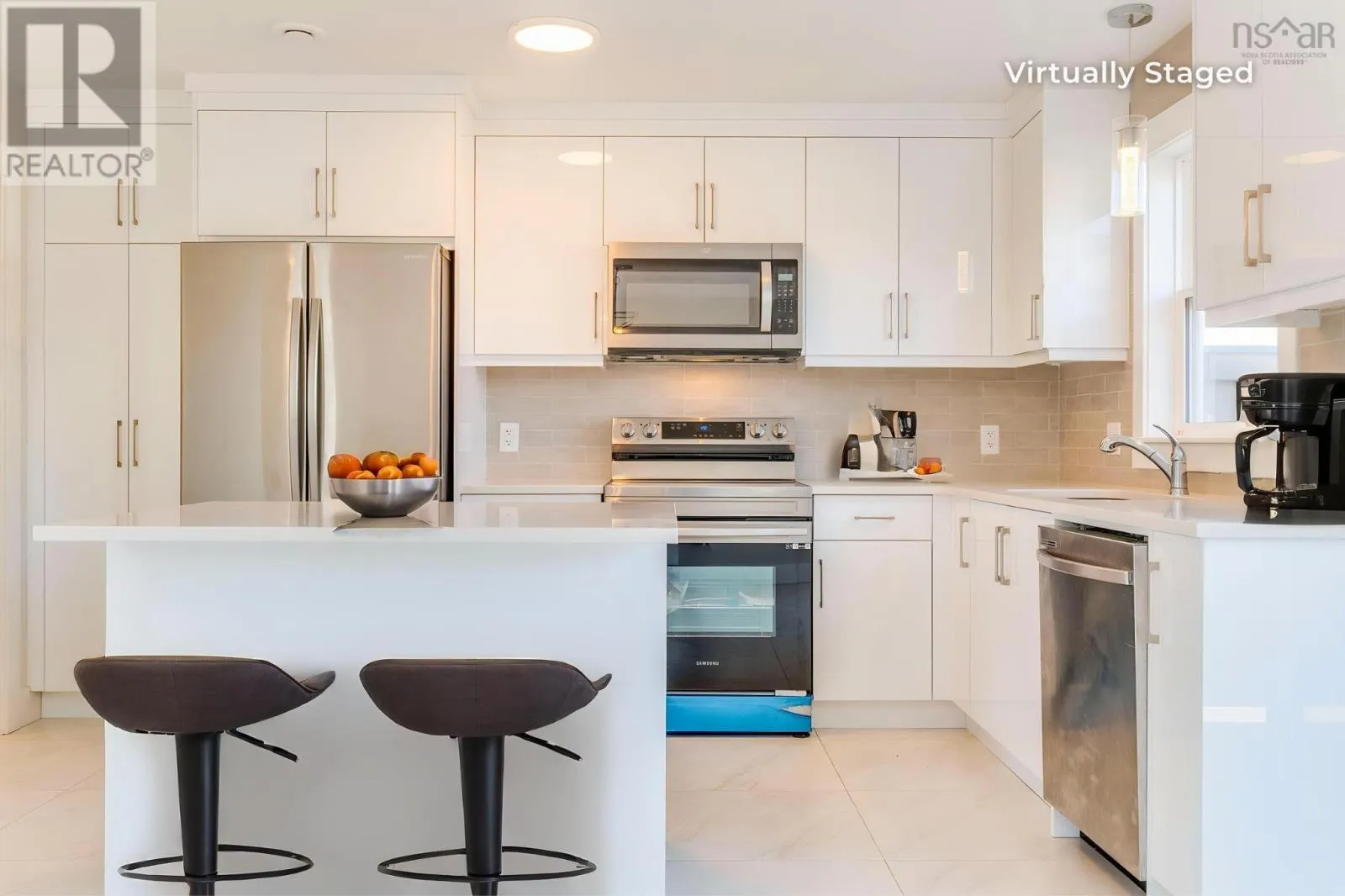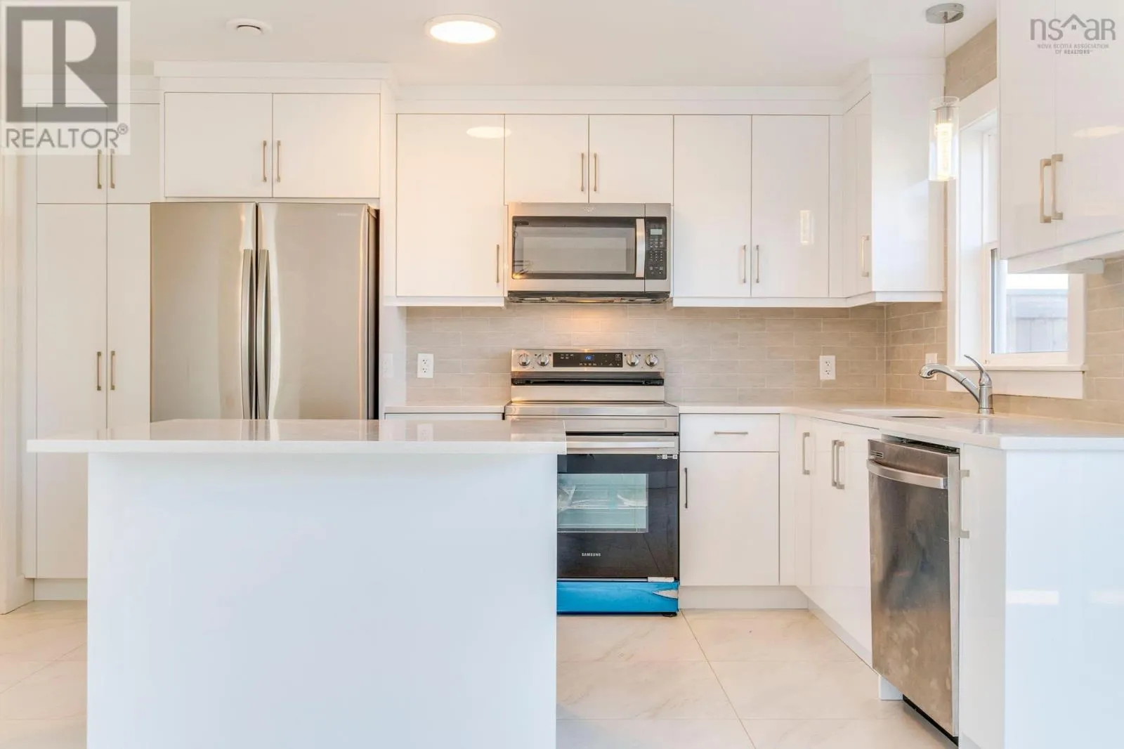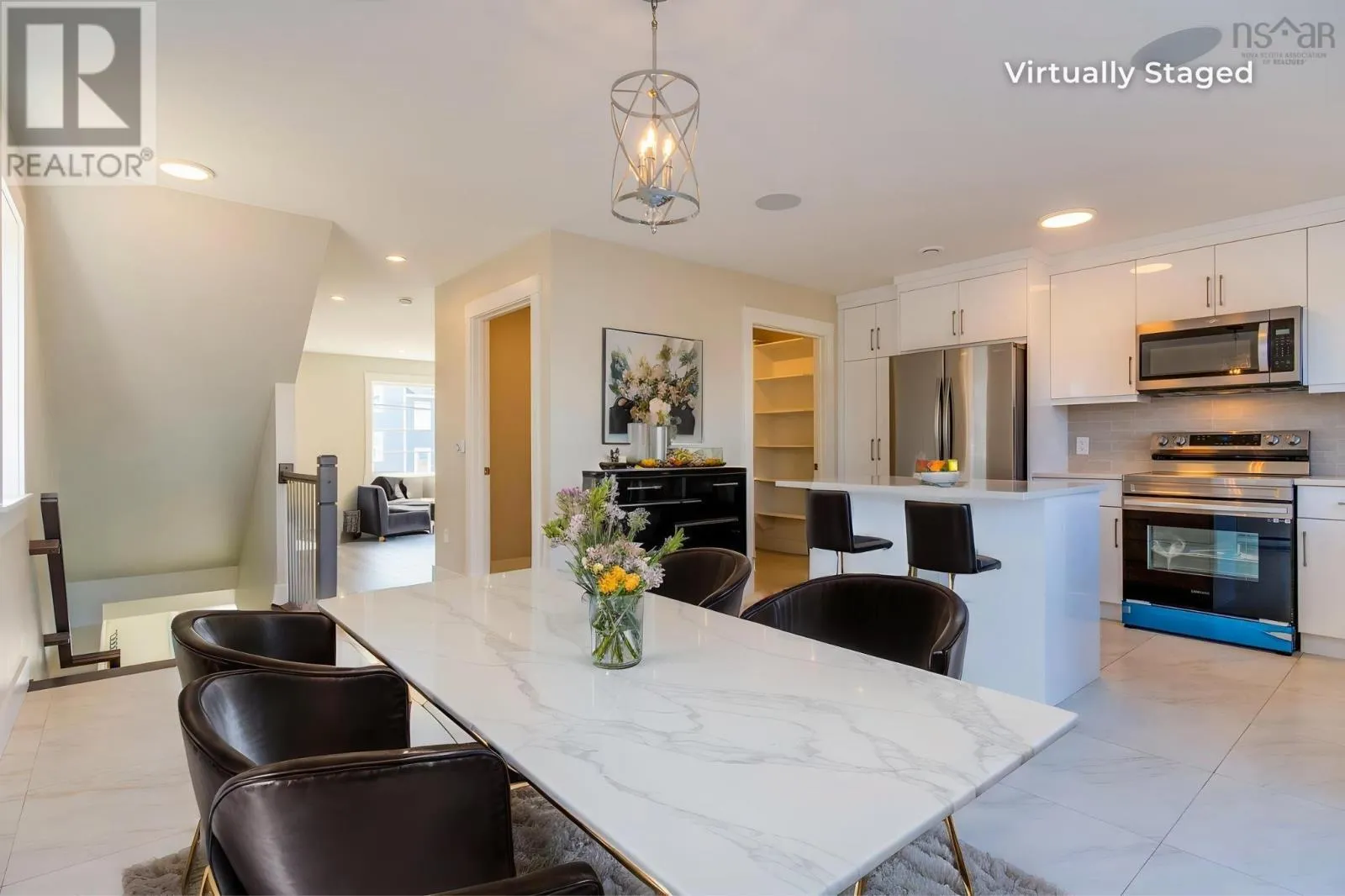 St. Margarets Bay Road to Higgins Drive to Grosse Street Welcome to 34 Grosse Street - a unique and distinctly modern and three-years-young executive townhome in the conveniently located and feverishly popular Lovett Lake Subdivision next to Bayer's Lake in Halifax. This exquisite 4-bedroom, 3.5 bathroom three-level floor plan offers a stylish and attractive main level with a street-facing living room with an electric fireplace and a backyard-facing kitchen/dining combo. With the sun entering the home from both front and back, entertain family and friends in your on-trend white kitchen with an abundance of cabinets, quartz counters, and stainless steel appliances, an enormous pantry, and a sit-up island. Lounge on your rear deck, right off the dining space, and perfect during BBQ season. Upstairs is home to a large primary bedroom with a walk-in closet, a stunning ensuite with a custom shower with a glass enclosure, and two more bedrooms for growing families. The downstairs, with its interior door separation, will not feel so "down" as the lower level is grade-entry and has a walkout basement to the backyard. A 4th bedroom/rec room, and a full bathroom complete a compelling lower level - ideal for those with family members looking for privacy and independence from the rest of the home. First-time and investment buyers alike will appreciate the many attributes of this exciting home: efficient electric heating with a ductless heat pump, high-end laminate floors on three levels, NO laminate counters, gorgeous modern fixtures and finishes, just minutes to downtown Halifax, close to walking trails, restaurants, shopping, ideal bus routes, you name it! We hope you fall in love, and you will! (id:27476)