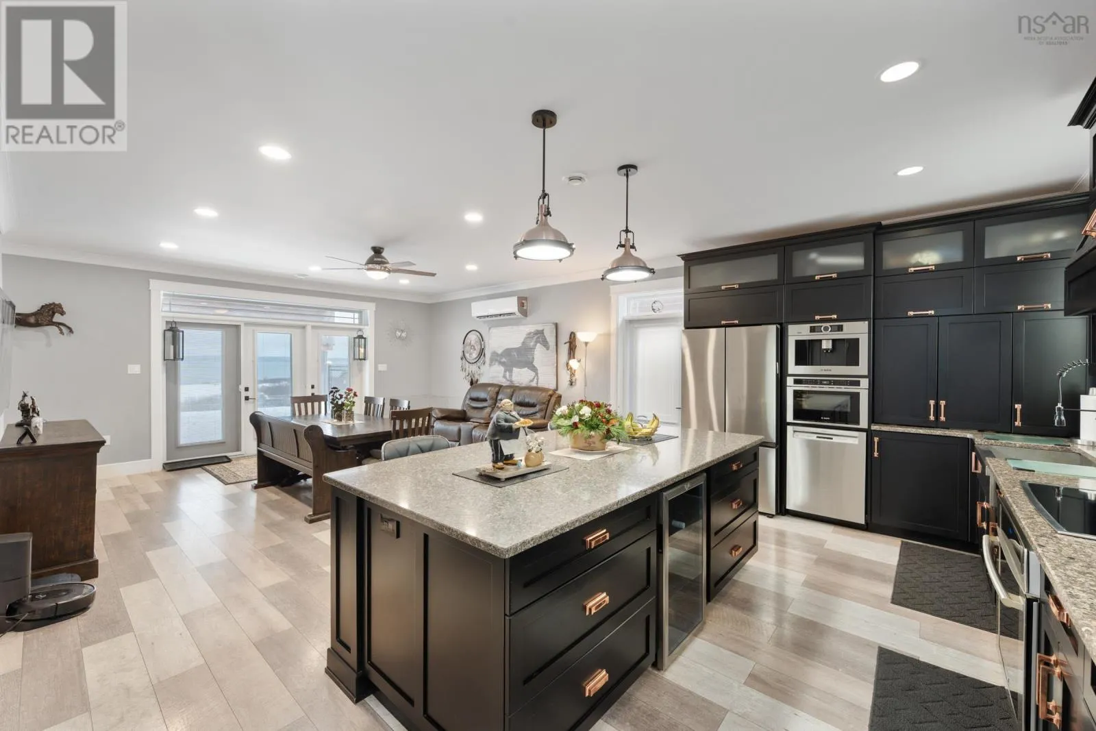 Highway 1 to Civic #3387 This oceanside custom home offers the very best of high-end quality finishes and efficiency on St. Mary's Bay in the historic Acadian community of Belliveaus Cove. The chef in you will love the large custom kitchen complete with an oversized quartz island, built-in wifi-enabled espresso machine, wine fridge, and more. Enjoy the majestic ocean view through the large windows across the open living room, perfect for entertaining visiting friends and family. The laundry and primary bedroom are also located on the main floor offering the ability for single floor living if desired. Upstairs you will find two over sized bedrooms, a large office, and expansive family room that would easily accommodate a pool table and home theatre and even includes a convenient wet bar. This home is ICF built, with heat pumps, in-floor radiant heating and Google Nest thermostats on both floors ensuring energy efficient heating and cooling keeping bills low. Outside, the low maintenance composite and concrete decks/patio offer commanding views of the ocean, amazing sunsets over the water and breathtaking views of the Milky Way. This large 3.06 acre property also offers a new fenced-in area perfect for horses and even its own road down to some of the highest tides in the world along the newly developed waterfront, which includes large stairs for easy ocean access for beachcombing and clamming at low tide, a large custom firepit, and a pond perfect for oceanside pond hockey in the winter. No detail has been overlooked, so don't miss this chance to come and enjoy the very best of this amazing Nova Scotia home today! (id:27476)