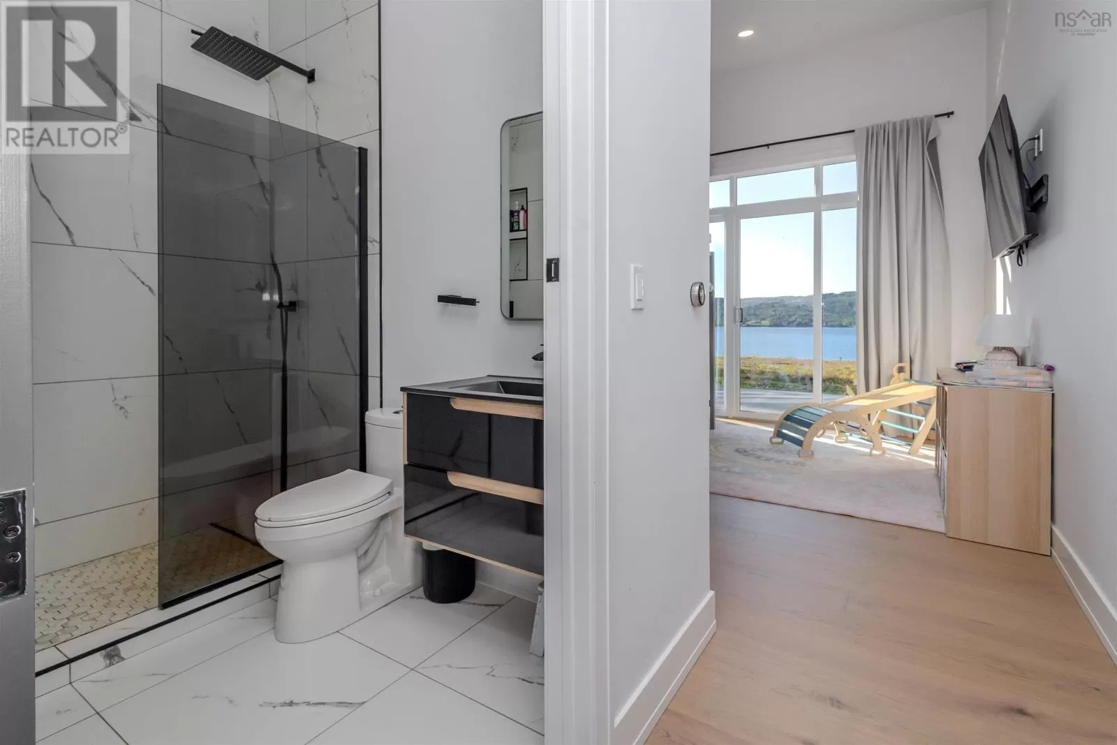 Go to address on route 4 Discover your dream home nestled in the heart of nature, perfectly positioned to offer spectacular water views of the world-famous Bras dOr Lakes. This newly built modern residence is a true masterpiece, combining luxury and comfort in an idyllic setting just minutes from Ben Eoin Marina, Ski Ben Eoin, and the Lakes Golf Club. Step inside to a spacious open-concept layout that invites natural light and panoramic views. The home features three generously sized bedrooms, each with its own ensuite bathroom, providing the ultimate in privacy and convenience. An additional half bathroom is perfect for guests. The high-end finishes throughout the home are nothing short of extraordinary. Enjoy cooking and entertaining in the gourmet kitchen, complete with granite countertops and frameless custom cabinetry that exudes elegance. The engineered hardwood floors add warmth and sophistication, while the 8 solid wood doors elevate the overall design. Stay comfortable year-round with central air conditioning and appreciate the thoughtful details, such as spray foam insulation and fully tiled showers that enhance both efficiency and style. A propane generator ensures peace of mind, providing reliable power when you need it. Outdoor living is equally impressive with a paved driveway and concrete walkways that lead you to your serene oasis. This modern home not only offers luxurious living spaces but also a lifestyle that embraces the beauty of the Bras dOr Lakes. Dont miss the opportunity to own this exceptional propertywhere modern luxury meets stunning natural beauty. Schedule your private showing today! (id:27476)