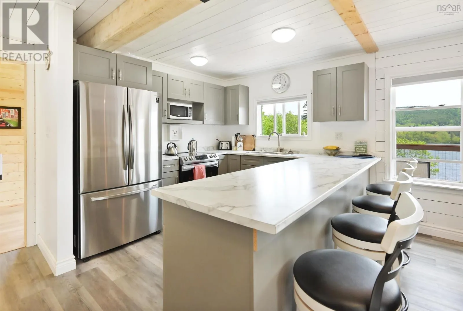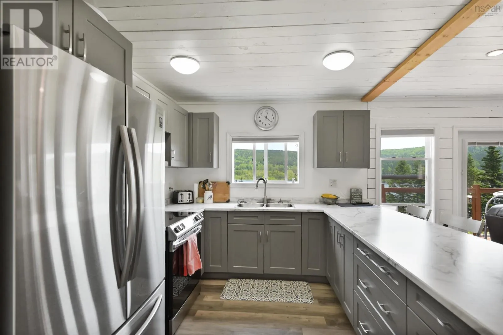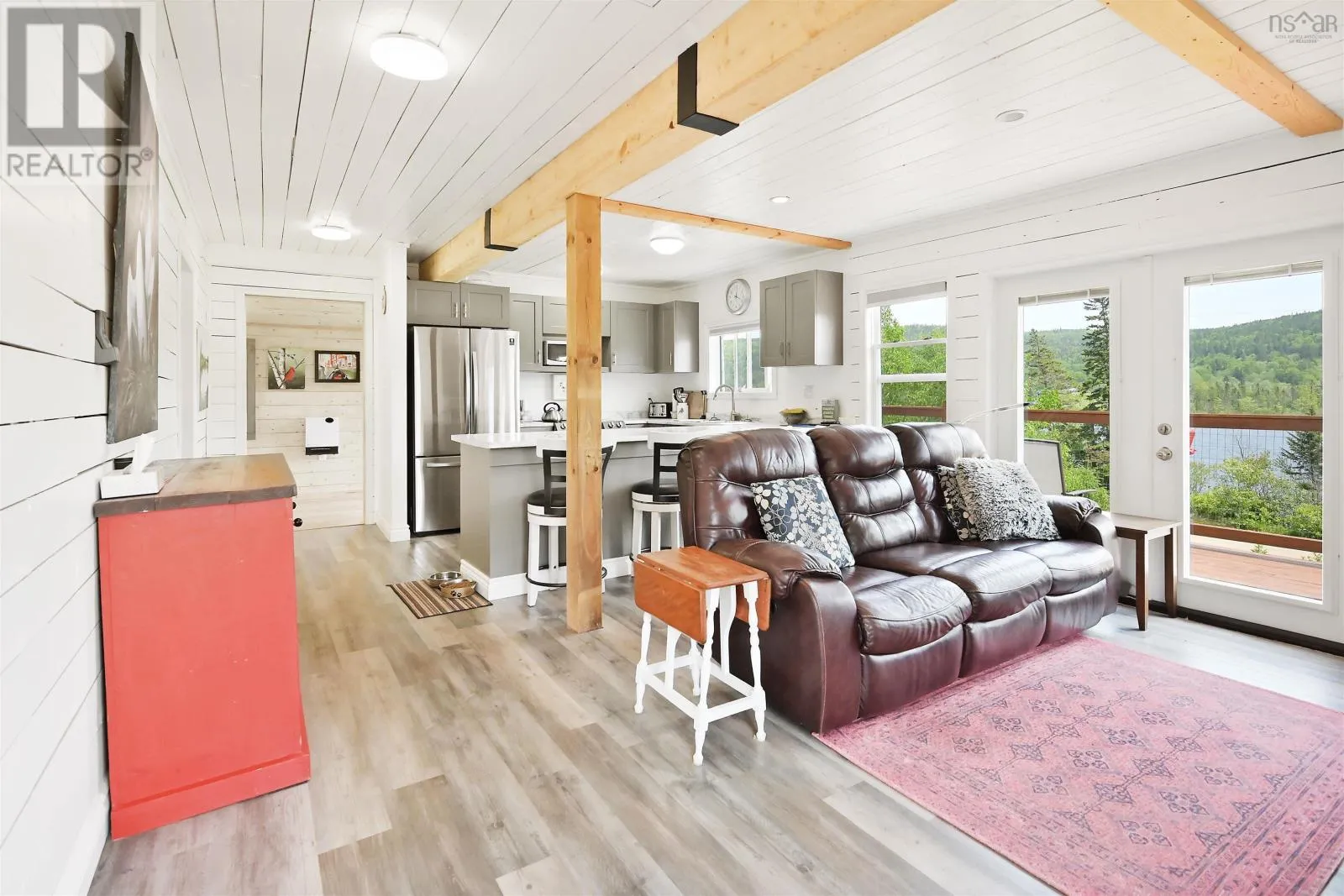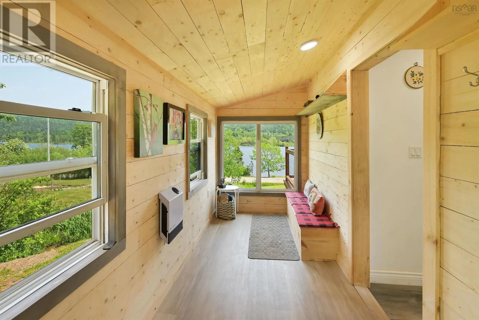 From Sydney River take Highway 216 South through Eskasoni. After proceeding down Castle Bay Road, you will see a left just over the bridge. Take this left onto Benacadie West Road. Property is about 1km down on the right side. Tucked away just outside the village of Iona, this extraordinary 63-acre property on the Bras dOr Lakes offers over 2,000 feet of pristine waterfront including a protected grassy beach with a boat launch and dramatic clay cliffs with panoramic lake views. With two standalone homes, a handcrafted log cabin, established gardens, and a private trail network, it feels like your own national park perfect as a family retreat, year-round home, or vacation rental opportunity. The main residence (24 x 24) was fully reimagined since 2021 essentially rebuilt with a new foundation, siding, roof, electrical, insulation, interior finishes, and a sunny new addition. The second cottage (16 x 22) is currently off-grid, powered by solar panels and four 12V batteries, with a propane stove and hot water heater. A nearby power pole offers easy access for future hookup. At the top of the property, a handcrafted 12 x 12 log cabin with a metal roof sits privately among the trees unfinished inside but full of charm and potential as a studio, retreat, or future guest cabin. The land is what truly sets this property apart. 63 acres of forest, gardens, and hiking trails wind through elevated lookouts and quiet woodland. A productive vegetable garden, fruit trees, and perennials reflect years of care. High-speed fibre-op internet is available, though cell signal can be inconsistent. Negotiable with the right offer is a package of well-maintained equipment to help manage the property: a John Deere ride-on mower, Yamaha generator and a Honda 4x4 side-by-side. Located just 45 minutes from Sydney (with airport and full services) and minutes from Iona, this is a rare Cape Breton offering with incredible natural beauty, privacy, and potential for expansion whether as a rental business, family compound, or peaceful lakeside lifestyle. (id:27476)
