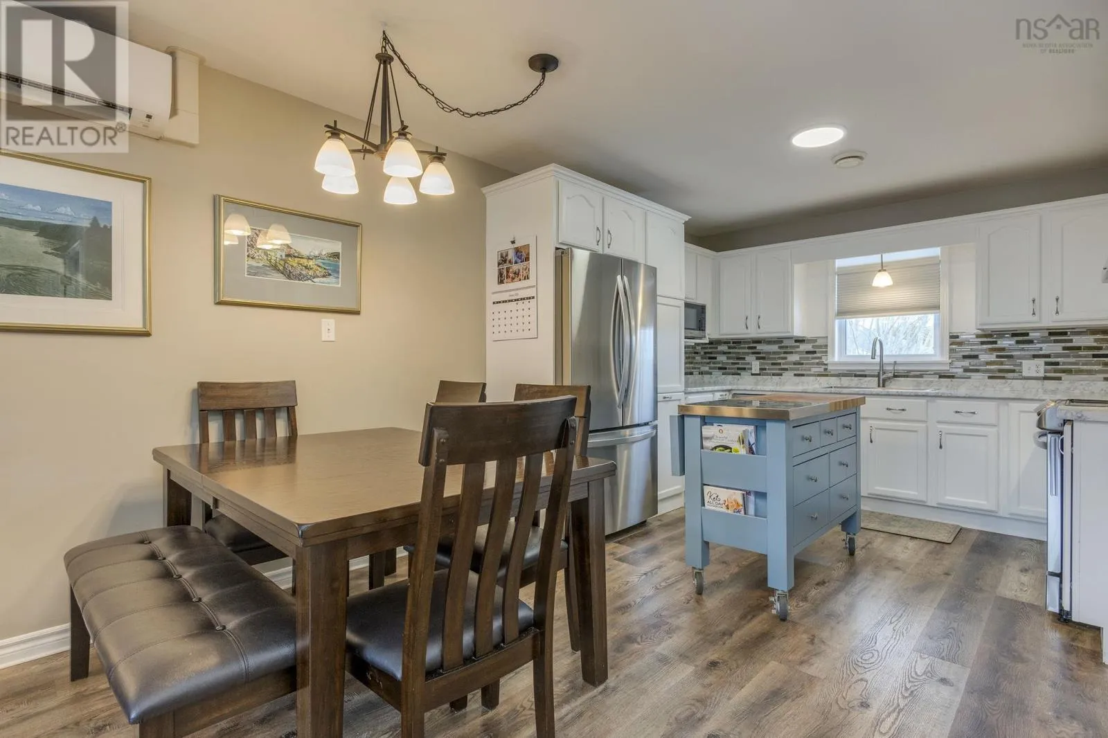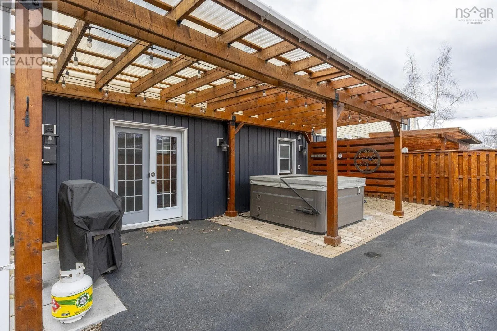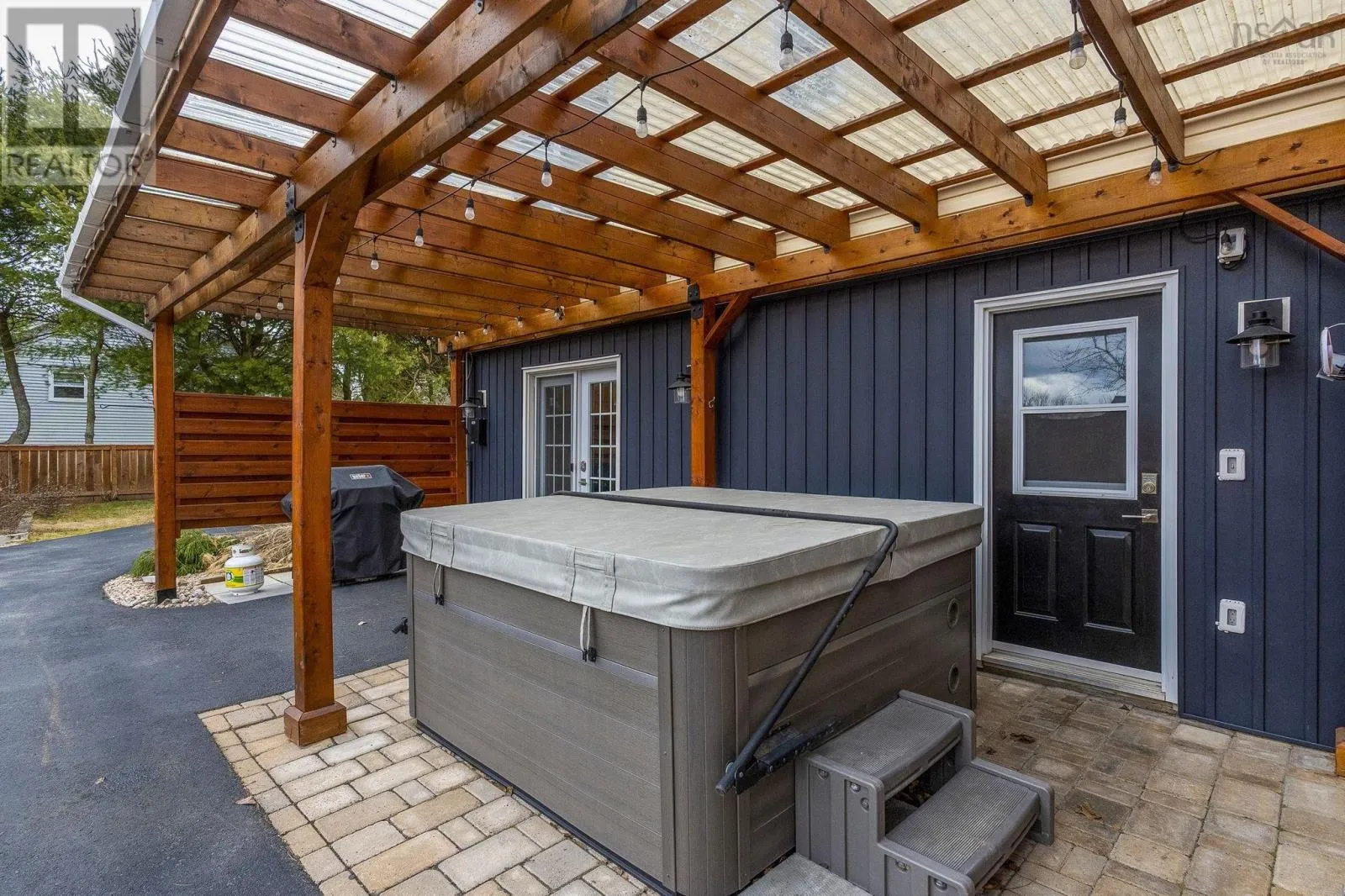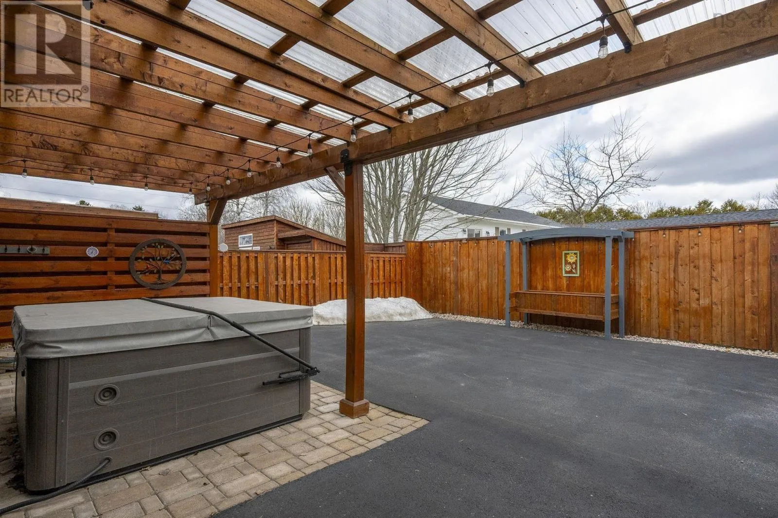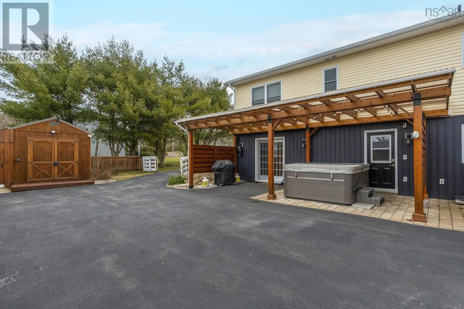 From Hwy 101, take #360 (Commercial Street) into Berwick. Turn right on Orchard street to civic on the right hand side. Welcome to this semi-detached in the Town of Berwick. With 2200 sq.ft. of finished living space, this home was built in 2004 and offers 3 bedrooms and 2.5 baths. Main floor features open concept living/dining/kitchen; upgraded kitchen cabinets and all new appliances in 2021 except range;4pc main bath(mirrror and lights replaced); Primary bedroom with 3pc ensuite; spacious second bedroom with sitting area and double closets; pantry and plenty of storage space. Charming front porch recently upgraded with metal railings and new steps and very convenient entryway. Stairs to lower level has a chair lift that will remain. Lower level is fully finished with bedroom (patio doors to back yard); media room, family room; fully finished laundry room; 2 pc bath/utility room; 2nd walkout exit to a peaceful and private, fully fenced backyard oasis with a new hot tub, 27 x 12 pergola, large wooden planter, 10 x 20 insulated shed and a sliding wooden fence to allow vehicle access to backyard. The drilled well and municipal sewer line is shared with 152A Orchard Street. A feature sheet with all upgrades since 2021 is available. A lovely well kept Gem! (id:27476)