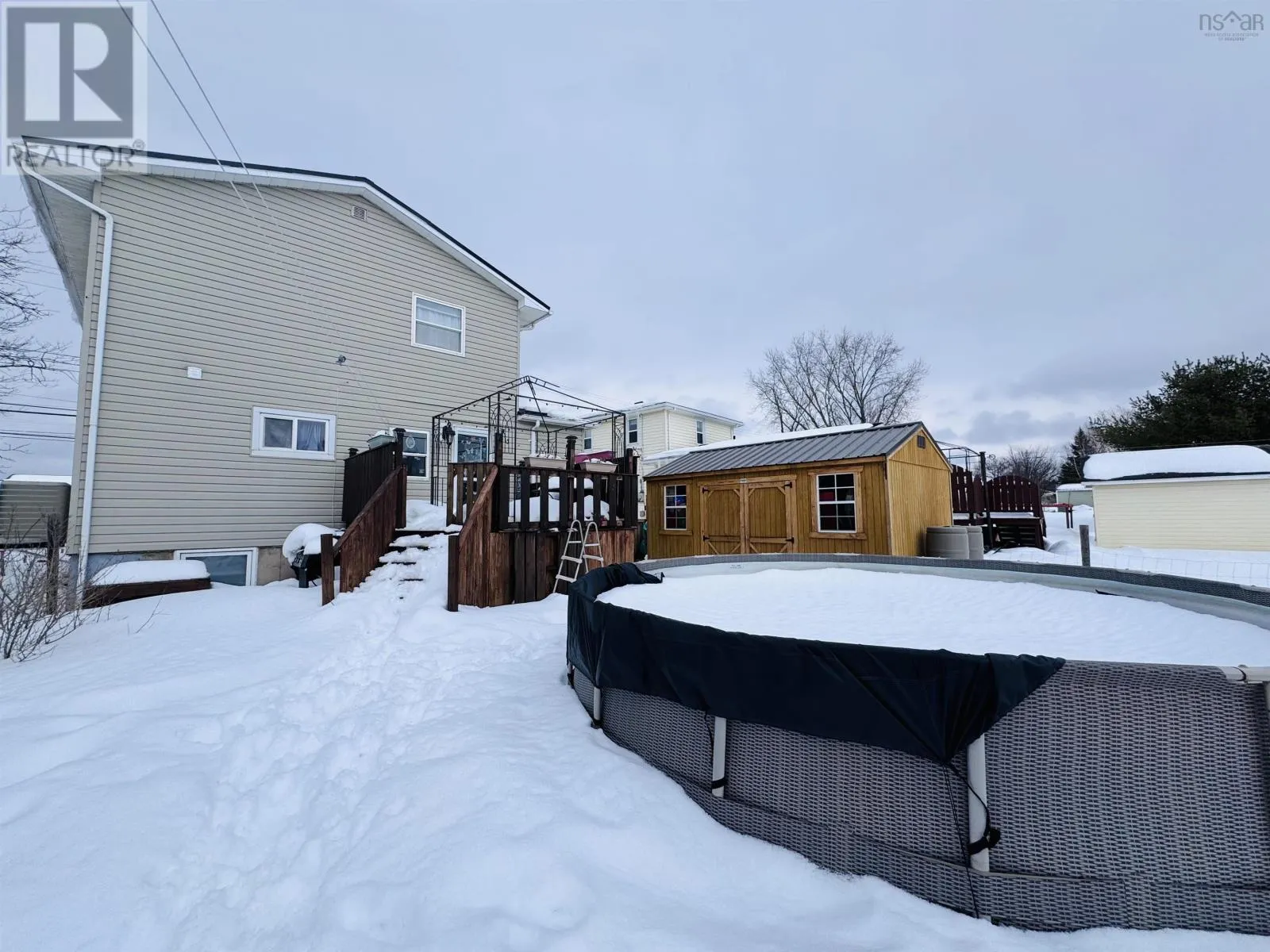 Main St to Pictou Rd - towards Valley/Bible Hill. House on right side before Village Line Ave. This 1,967 sqft home offers a practical layout with living space across three levels, providing flexibility for a variety of household needs. The main level includes an eat-in kitchen, living room, full bathroom and a spacious mudroom with access to both the basement and rear entrance. The upper level features three bedrooms and one full bathroom, with electric baseboard heat on this floor. The lower level includes one bedroom, a full bathroom, laundry area, storage and a separae living or rec room. A rear entrance provides direct access to the basement, creating a layout that may suit extended family or guests. The home is equipped with a ducted heat pump system. The deep, fully fenced lot is landscaped with garden beds and includes a 16-foot above-ground pool. Outbuildings include a 10x16 shed and a detached garage measuring approximately 16x15, currently suitable for storage (wooded floor). The property backs onto a green belt, offering additional privacy. Located in the community of Bible Hill, the home is close to local schools, shopping, and family-friendly amenities, including Scotia Pool and Bible Hill Recreation Park. A short drive to Truro provides access to additional services and amenities, with convenient access to Highway 102 for commuters. (id:27476)