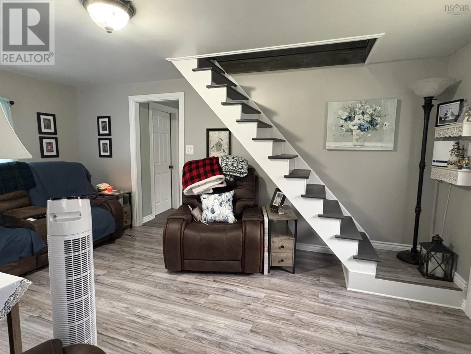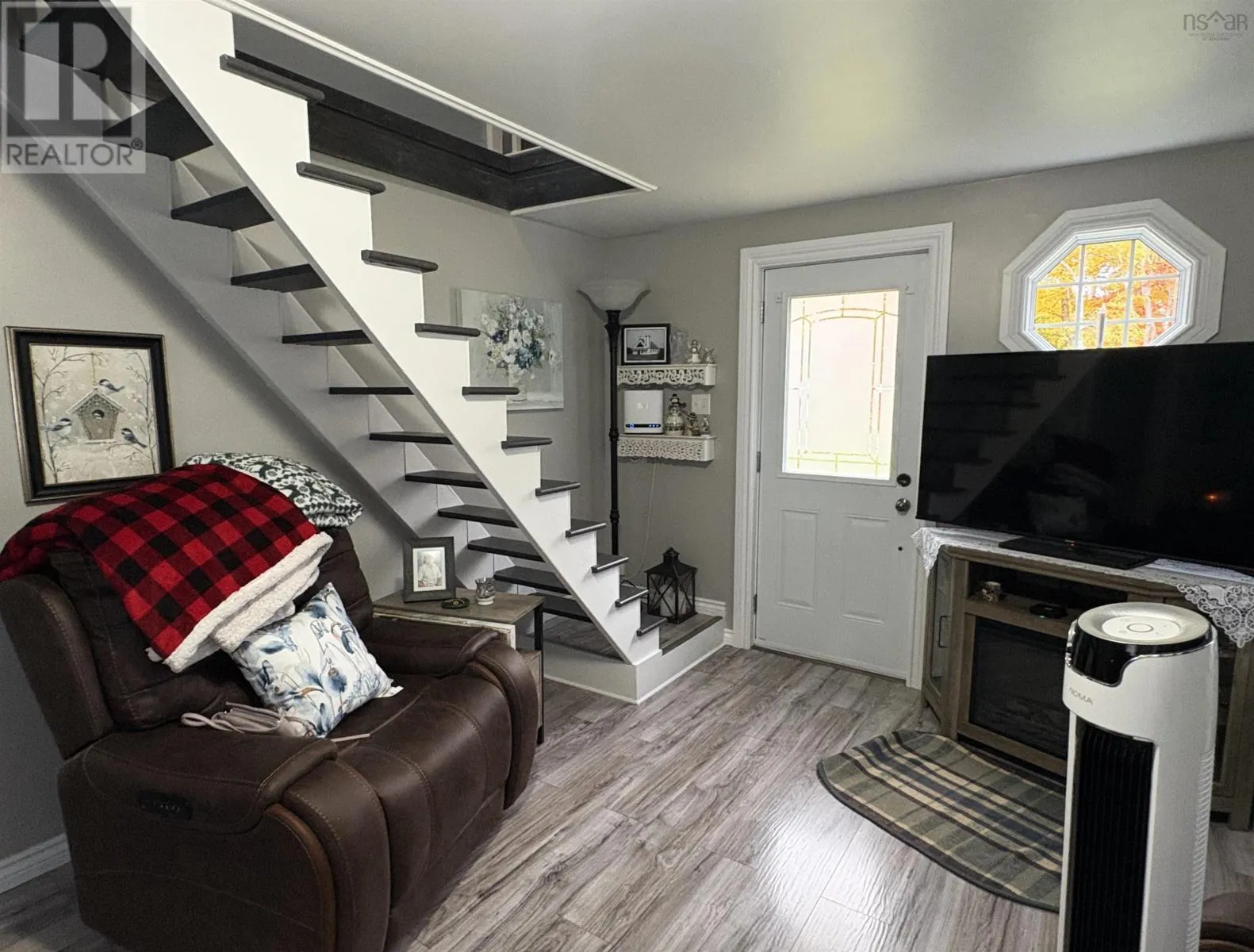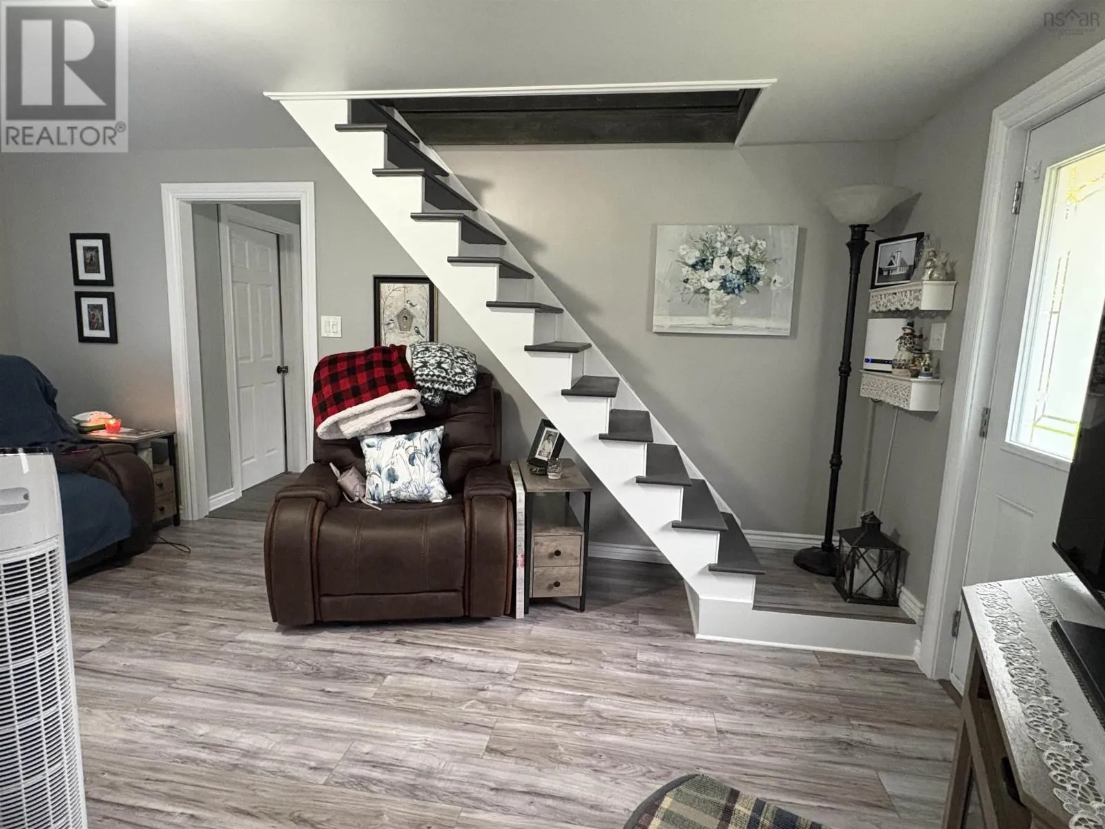 From the Trans Canada Highway, Take the exit toward Big Bras dOr / Boularderie Island. Once off the highway, continue on old route 5 for about 5 minutes and the house will be on your right. Nestled on 2 acres of private land, this charming, well-kept home is surrounded by mature trees, offering both privacy and a peaceful natural setting. Located just minutes from local gas stations and restaurants, and approximately a 1520 minute drive to North Sydney, this property provides the perfect balance between country living and convenience. Inside, the home features one bedroom upstairs along with an open loft area ideal for a home office, TV room, or extra storage. The main floor includes a porch, kitchen, bathroom, and living room. Over the years, the home has seen numerous upgrades, making it comfortable and move-in ready while maintaining its cozy, rural charm. (id:27476)