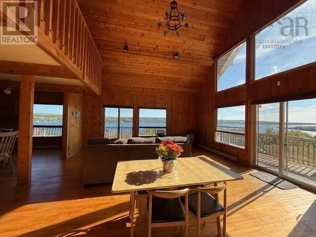 935 Big Harbour Road This grand property features a fabulous south-facing 3-BR chalet with attached garage nestled on 175 acres (+-) of rolling forest, with a beautiful beach, and an absolutely beautiful panoramic view overlooking the Bras d'Or Lakes! The main floor features an open-concept LR, DR (cathedral ceiling) and lovely modern country kitchen, a bathroom, bedroom, utility/laundry room and breezeway between the house and the garage. Upstairs there are two bedrooms and a bathroom. The property is located in Big Harbour, and is ideally situated away from highway noise, yet is only a 15-minute drive to amenities in the Village of Baddeck, and half an hour to those in the town of North Sydney. This is a wonderfully quiet neighborhood! Large private, peaceful acreage (mixed forest), accessible beachfront, and beautiful views! (id:27476)