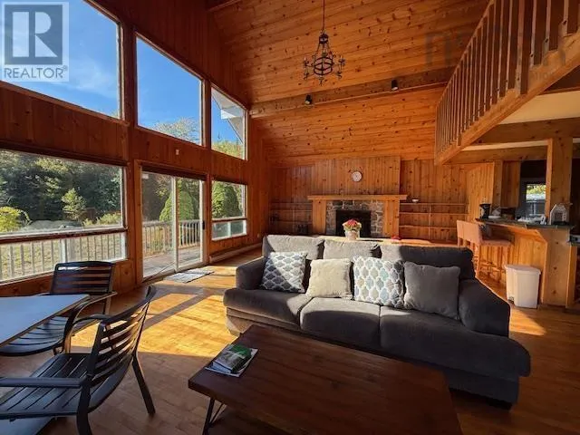 935 Big Harbour Road This grand property features a fabulous south-facing 3-BR chalet with attached garage nestled on 175 acres (+-) of rolling forest, with a beautiful beach, and an absolutely beautiful panoramic view overlooking the Bras d'Or Lakes! The main floor features an open-concept LR, DR (cathedral ceiling) and lovely modern country kitchen, a bathroom, bedroom, utility/laundry room and breezeway between the house and the garage. Upstairs there are two bedrooms and a bathroom. The property is located in Big Harbour, and is ideally situated away from highway noise, yet is only a 15-minute drive to amenities in the Village of Baddeck, and half an hour to those in the town of North Sydney. This is a wonderfully quiet neighborhood! Large private, peaceful acreage (mixed forest), accessible beachfront, and beautiful views! (id:27476)
