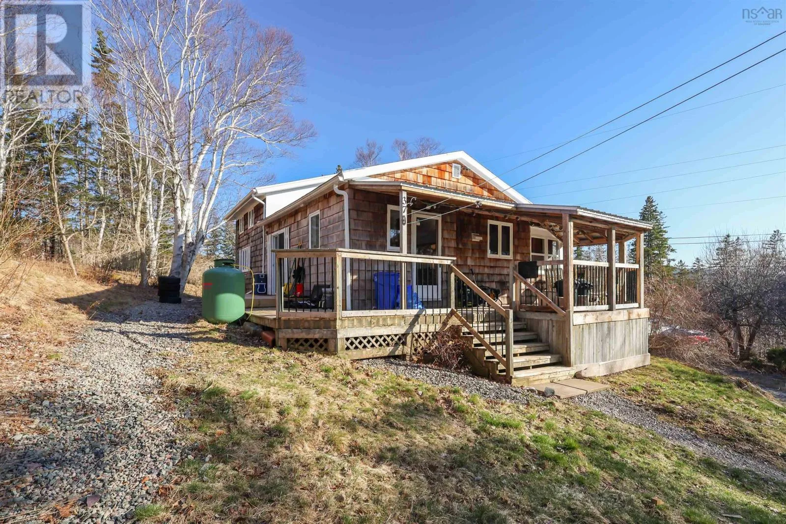 From Sydney, take the second exit right to Glen Albert Drive in Big Pond, follow the signs, take the first left onto Claymore, and there a sign on the left. Nestled on a quiet dead-end street with breathtaking year-round views of the Bras dOr Lake, this charming 2-bedroom, 1-bath home (easily converted into 3 bedrooms) offers the perfect blend of comfort and scenic beauty. The spacious sunlit interior features a delightful sunporch with sliding patio doors, a cozy reading nook, and a breakfast area. The open-concept layout seamlessly connects the kitchen, dining space, and large living room. This home has been maintained with modern updates and thoughtful renovations. A brand-new Roth stainless steel oil tank, heat pump and generator panel with exterior port offer efficiency and reliability. The updated kitchen, bathroom, and flooring throughout enhance its contemporary appeal. Exterior improvements include a new steel roof on the porch, fresh vinyl soffit & fascia, and newly installed cedar shakes on the front for a refined, durable finish. Structural upgrades like new sills and rim joists to reinforce the homes integrity, ensuring lasting quality. Beyond aesthetics, the property is designed for convenience and functionality. A gravel driveway accommodating four vehicles, reliable internet, newly built & reinforced exterior wrap around deck and an outside detached shed make daily living seamless. The propane stove and oven, coupled with ample kitchen counter space, make cooking an enjoyable experience. Set just off the highway, the road is ploughed after each storm, providing easy year-round access. With stunning views, thoughtful upgrades, and modern conveniences, this gem is the perfect retreat for those seeking peace, beauty, and practicality. Whether you're looking for a cozy escape or a forever home, this property offers a harmonious blend of nature, comfort, and contemporary living. Dont miss the opportunity to make it yours! (id:27476)