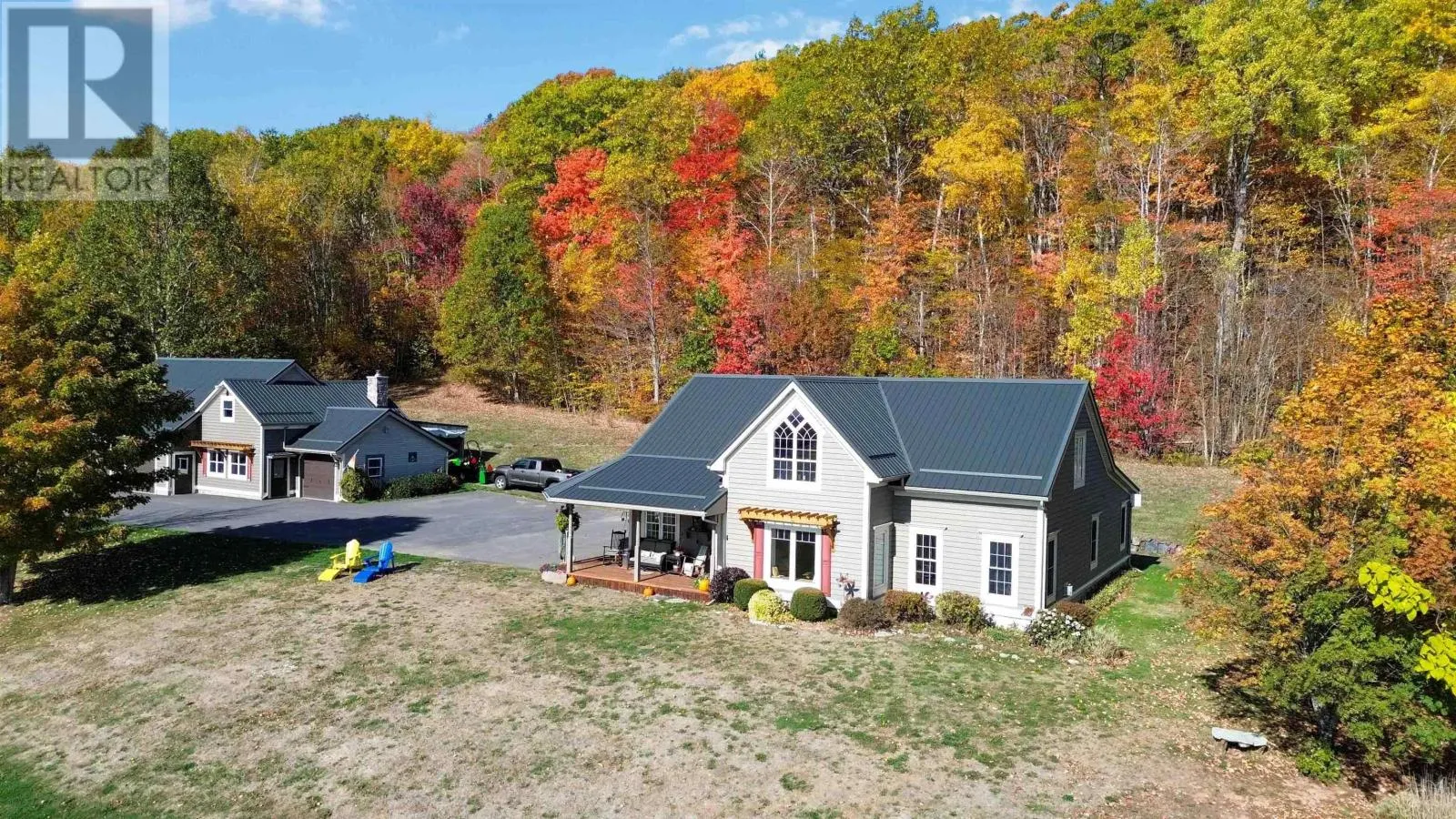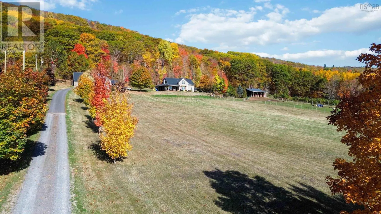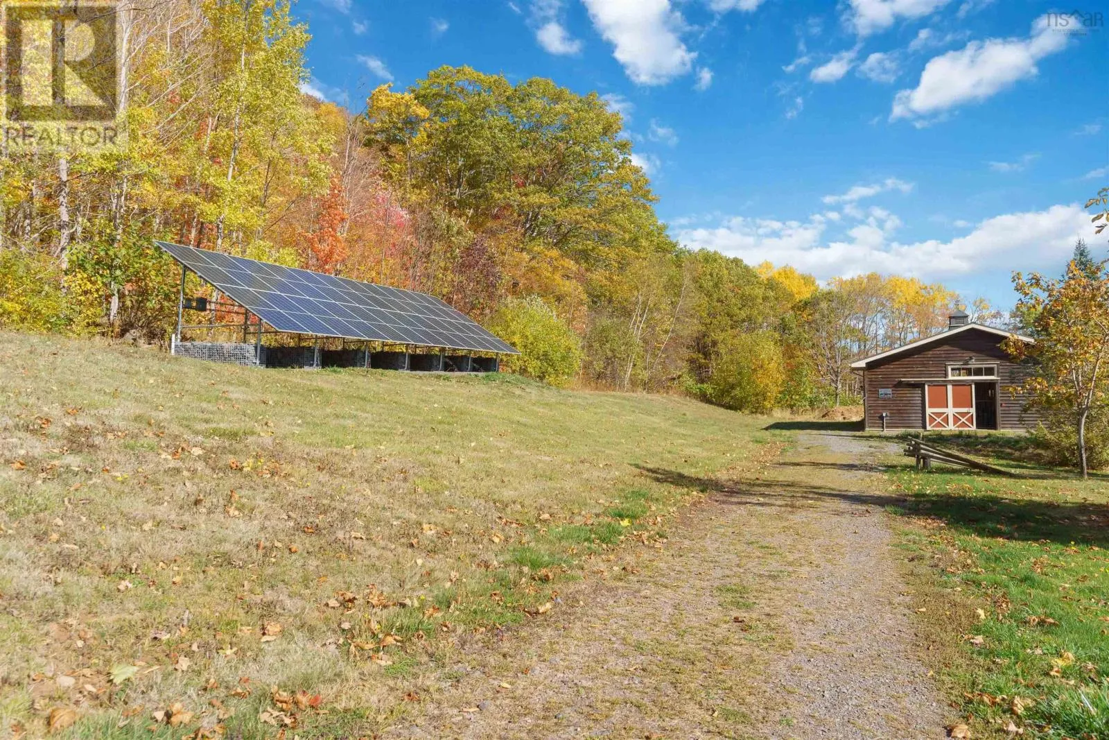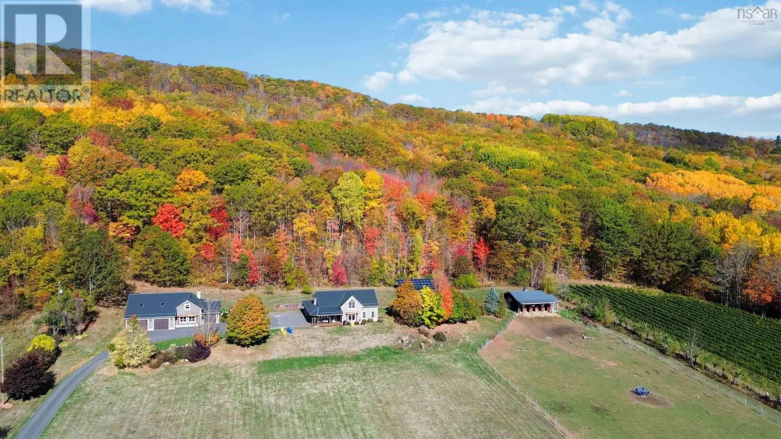 From Kentville, take Hwy 359 North to Hwy 221. West on Hwy 221 to Steadman Rd. North on Steadman Rd to Thorpe Rd. west on Thorpe Rd to civic on RHS You would be hard pressed to find a more spectacular panoramic view of the Annapolis Valley, without driving up the mountain. This 12.5-acre property is a short 12 minute drive to Valley Regional Hospital. On the main level you'll find the open concept kitchen, dining and living room, featuring wood countertops, modern appliances with a timeless, vintage aesthetic, beadboard ceilings, and designed to enjoy the expansive Valley view. A comfortable sitting room with a propane stove and stone fireplace is the ideal spot for unwinding or cozy conversation. The main floor bedroom (skylight and full bath), laundry room (custom concrete sink), half-bath and walk in storage/pantry complete this level. Upstairs, a family room with a cathedral tin ceiling and an arched south-facing window continues the sense of space and light. Two generous bedrooms and another full bath complete this level. The 4-car (approx. 2000 sq ft) garage opens up a world of possibilities for vehicles, equipment, or creative projects. A portion of the second floor is insulated and drywalled and could easily be a private space for guests to stay. The newer barn features 5 run-out box stalls, wired for heated water buckets, and an insulated tack room. The smart design allows for excellent air flow. Currently, the ideal move-in ready setup for miniature equine and goats, but could be reconfigured for full size horses or other animals. Hay storage room holds 200+ square bales, and the 2+ acre fenced pasture adds to the appeal (Electric fencing & fencer excluded.) Constructed with ICF for efficiency and durability, the home is kept cozy through propane-fired, in-floor radiant heat, while central AC ensures comfort through the warmer months. The fully owned 24-panel, 9kW solar system keeps operating costs low. Whether your dream is hobby farming or simply to wake up every day to one of the most breathtaking Valley views around, while being close to all amenities, this is a home that offers it all. (id:27476)